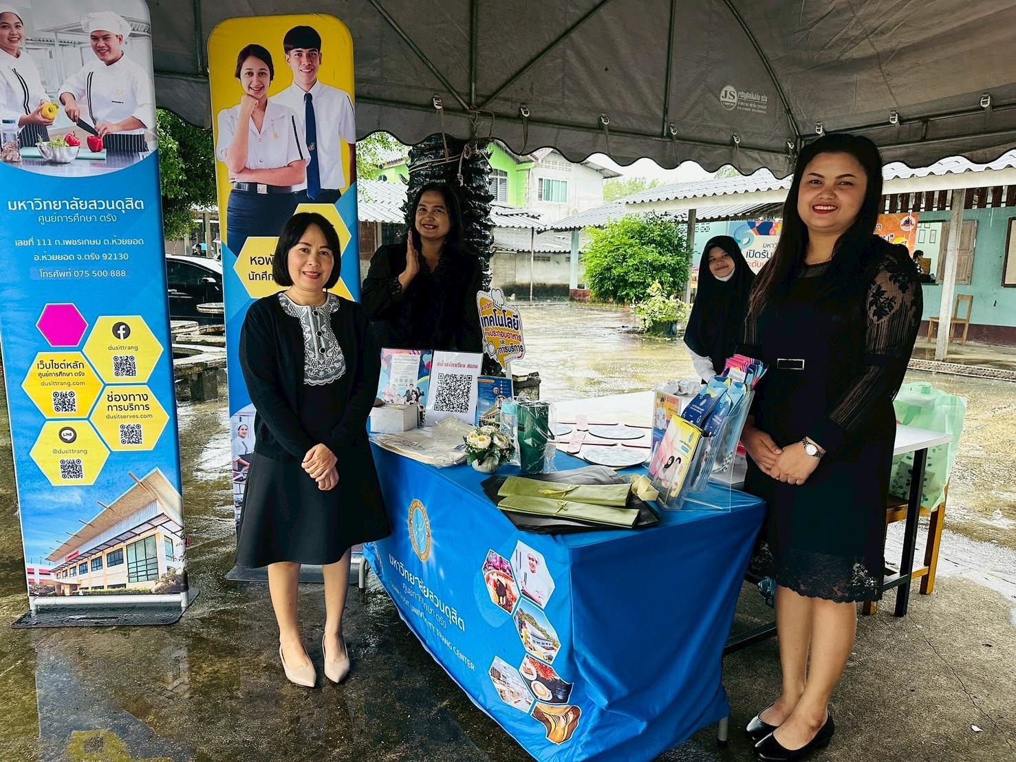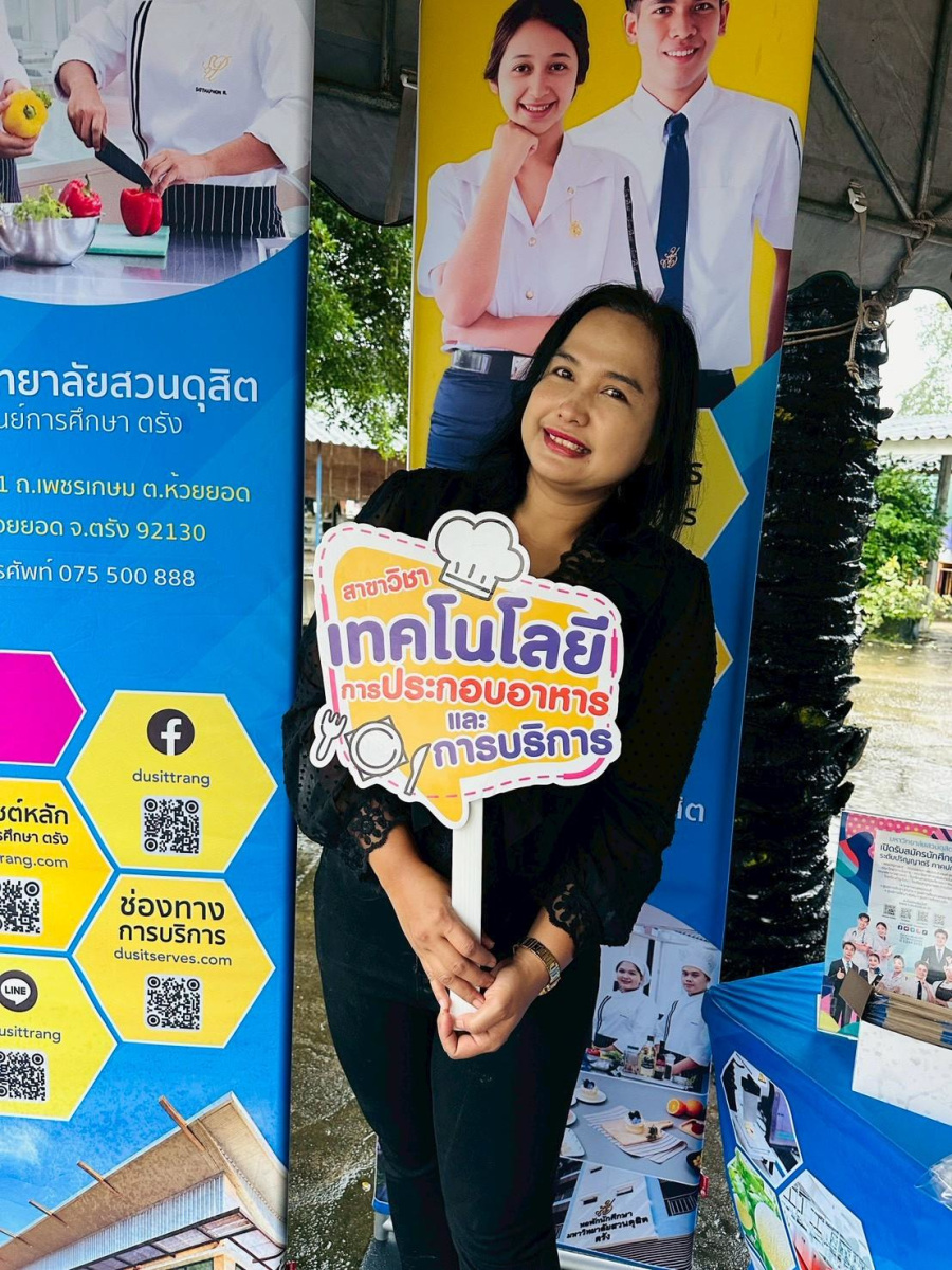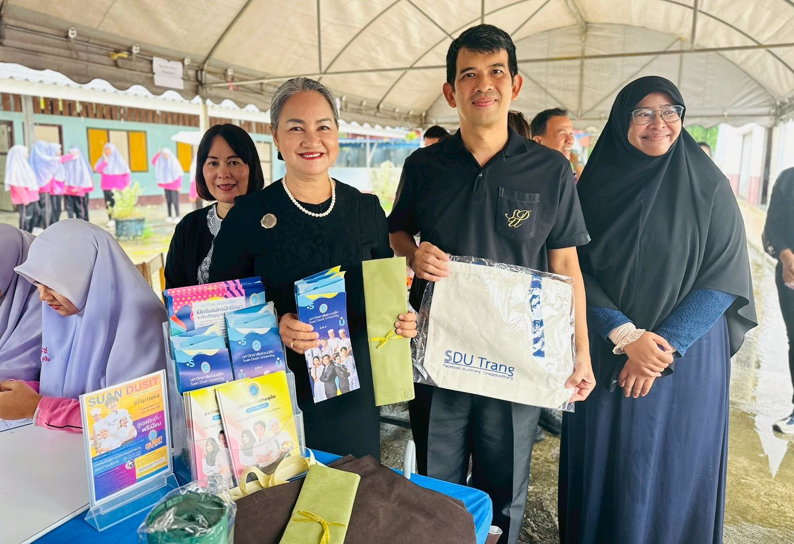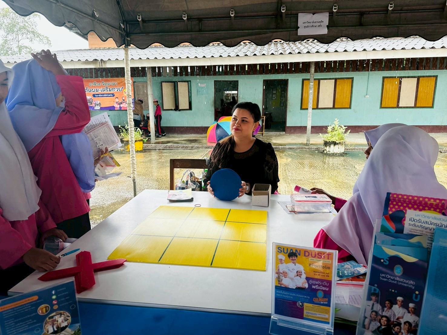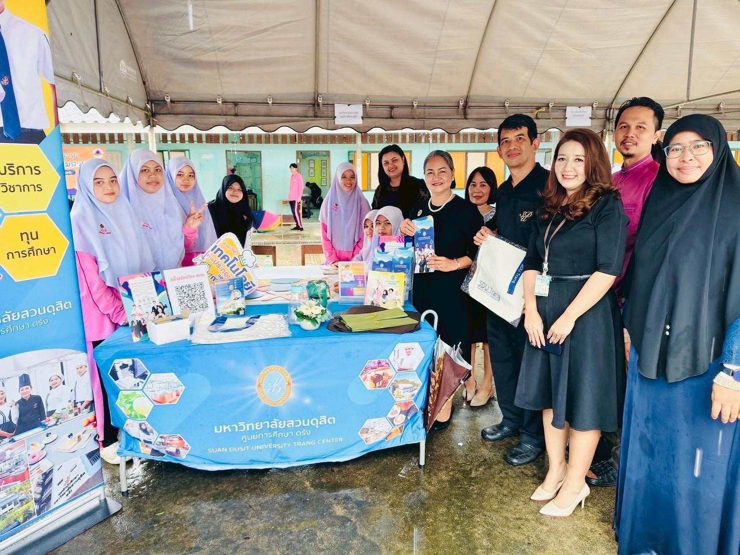 วันพฤหัสบดีที่ 20 พฤศจิกายน 2568 ดร.ธีรเดช รักไทย รองผู้อำนวยการมหาวิทยาลัยสวนดุสิต ศูนย์การศึกษา ตรัง พร้อมด้วยบุคลากรฝ่ายประชาสัมพันธ์ ร่วมจัดนิทรรศการโครงการเตรียมความพร้อมแก่กลุ่มเป้าหมายก่อนเข้าสู่ตลาดแรงงาน จัดโดยสำนักงานจัดหางานจังหวัดตรัง และมหาวิทยาลัยสวนดุสิต ศูนย์การศึกษา ตรัง ได้ประชาสัมพันธ์กิจกรรมการรับสมัครนักศึกษาใหม่ หลักสูตรอบรมระยะสั้นๆ และโครงการบริการวิชาการของศูนย์การศึกษา ตรัง และจัดกิจกรรมเล่นเกมส์ มอบรางวัล แก่นักเรียน ณ โรงเรียนนูรุลอิงซานมูลนิธิ ตำบลควนปริง อำเภอเมืองตรัง จังหวัดตรัง โดยกิจกรรมในวันนี้ได้รับความสนใจจากนักเรียนเป็นจำนวนมาก สำหรับผู้สนใจศึกษาต่อ รอบ Portfolio สาขาวิชาเทคโนโลยีการประกอบอาหารและการบริการ เปิดรับสมัครแล้วถึง 15 มกราคม 2569 สมัครทาง https://tcas.dusit.ac.th สอบถามเพิ่มเติม ฝ่ายประชาสัมพันธ์ โทร 082 4152813
