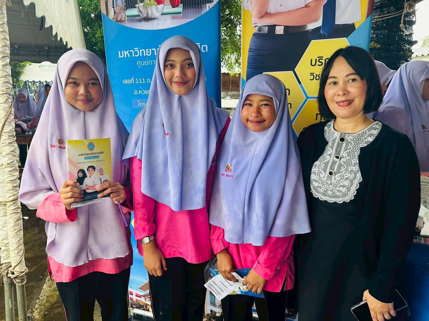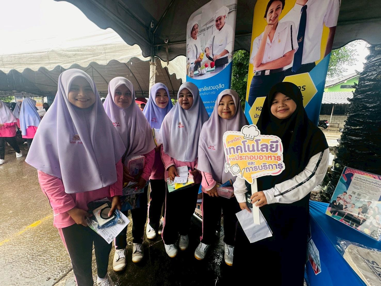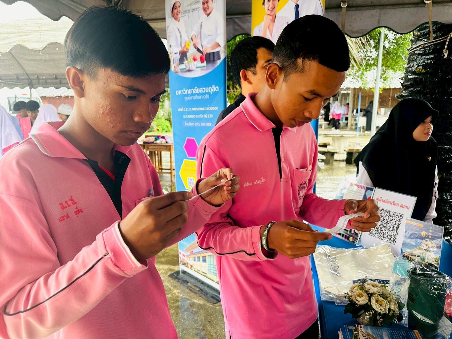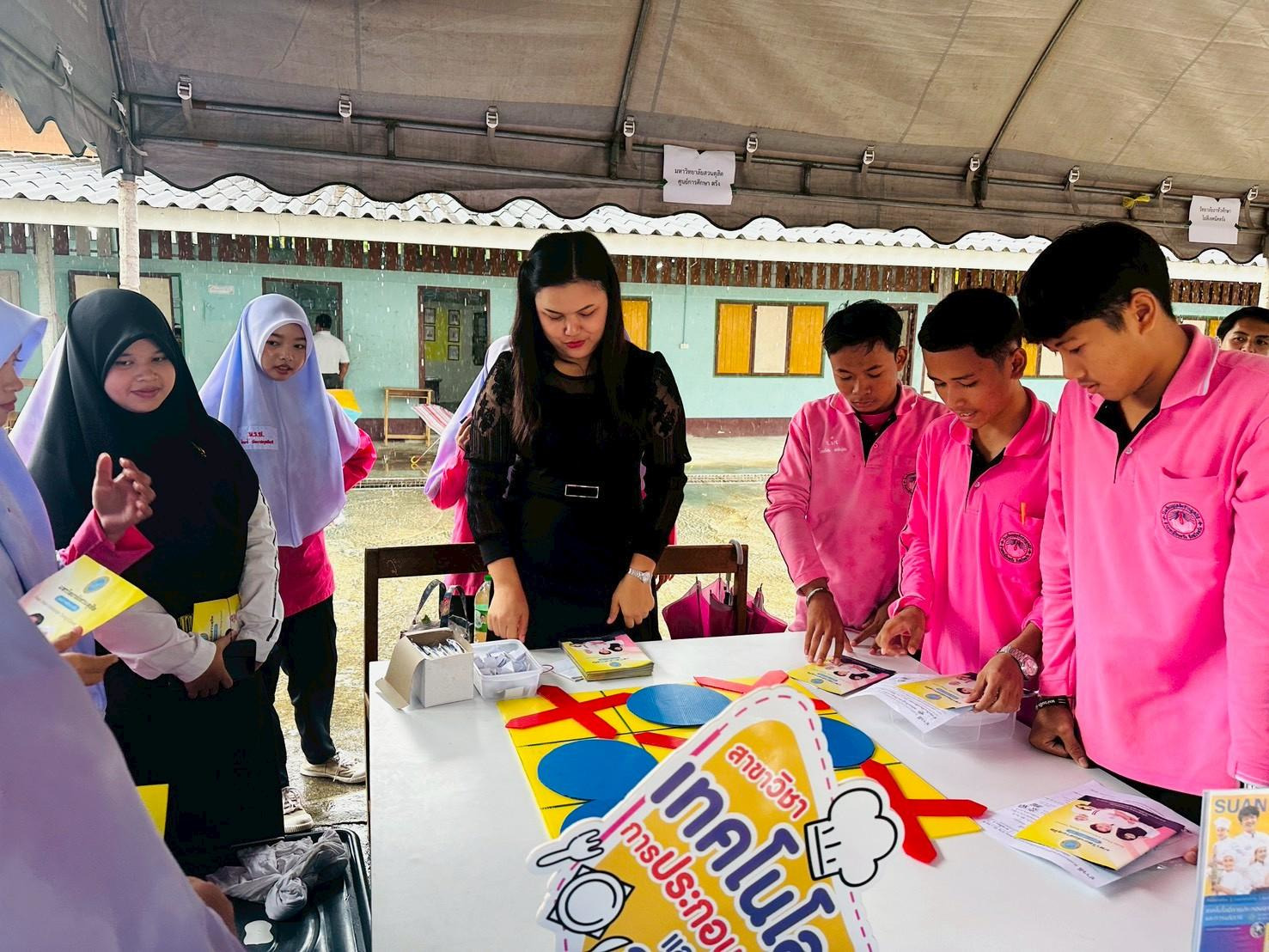 วันพฤหัสบดีที่ 20 พฤศจิกายน 2568 ดร.ธีรเดช รักไทย รองผู้อำนวยการมหาวิทยาลัยสวนดุสิต ศูนย์การศึกษา ตรัง พร้อมด้วยบุคลากรฝ่ายประชาสัมพันธ์ ร่วมจัดนิทรรศการโครงการเตรียมความพร้อมแก่กลุ่มเป้าหมายก่อนเข้าสู่ตลาดแรงงาน จัดโดยสำนักงานจัดหางานจังหวัดตรัง และมหาวิทยาลัยสวนดุสิต ศูนย์การศึกษา ตรัง ได้ประชาสัมพันธ์กิจกรรมการรับสมัครนักศึกษาใหม่ หลักสูตรอบรมระยะสั้นๆ และโครงการบริการวิชาการของศูนย์การศึกษา ตรัง และจัดกิจกรรมเล่นเกมส์ มอบรางวัล แก่นักเรียน ณ โรงเรียนนูรุลอิงซานมูลนิธิ ตำบลควนปริง อำเภอเมืองตรัง จังหวัดตรัง โดยกิจกรรมในวันนี้ได้รับความสนใจจากนักเรียนเป็นจำนวนมาก สำหรับผู้สนใจศึกษาต่อ รอบ Portfolio สาขาวิชาเทคโนโลยีการประกอบอาหารและการบริการ เปิดรับสมัครแล้วถึง 15 มกราคม 2569 สมัครทาง https://tcas.dusit.ac.th สอบถามเพิ่มเติม ฝ่ายประชาสัมพันธ์ โทร 082 4152813
