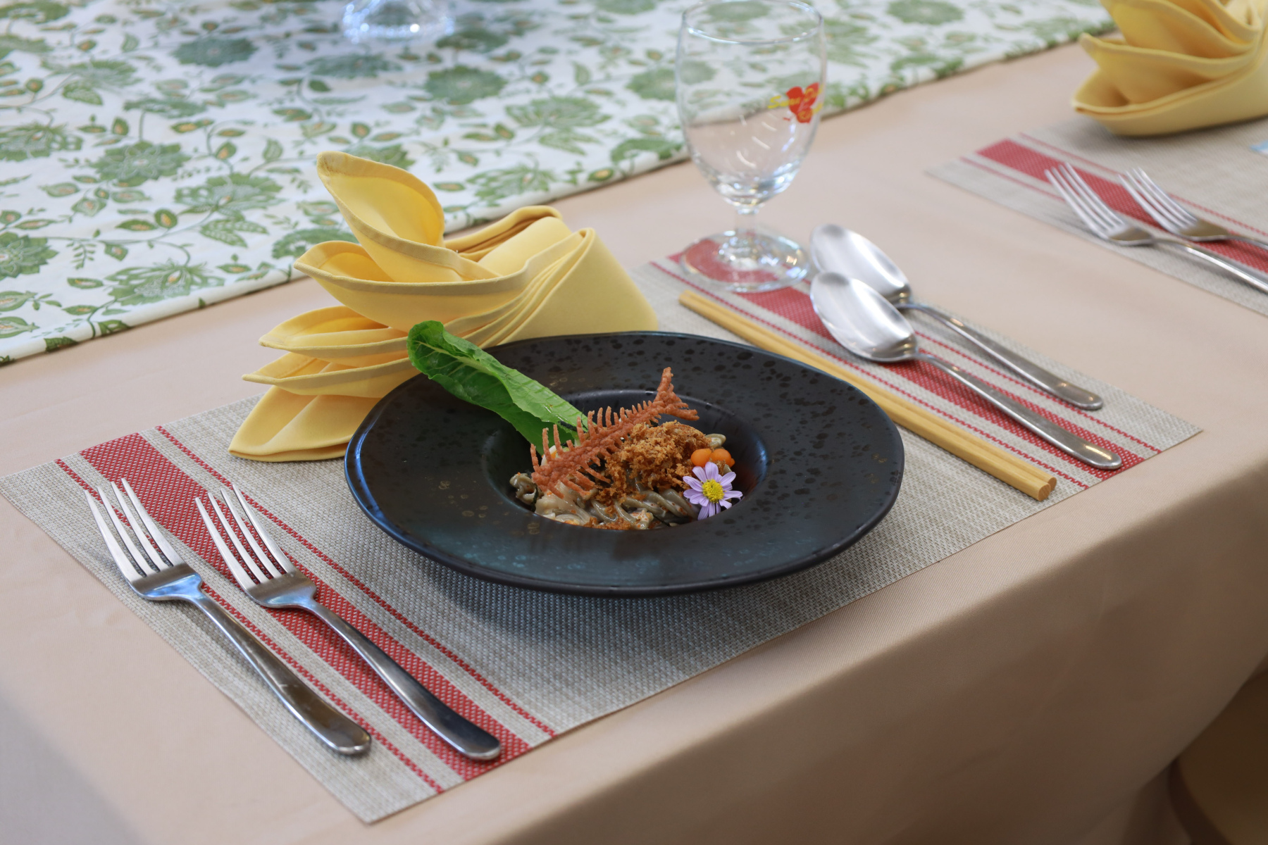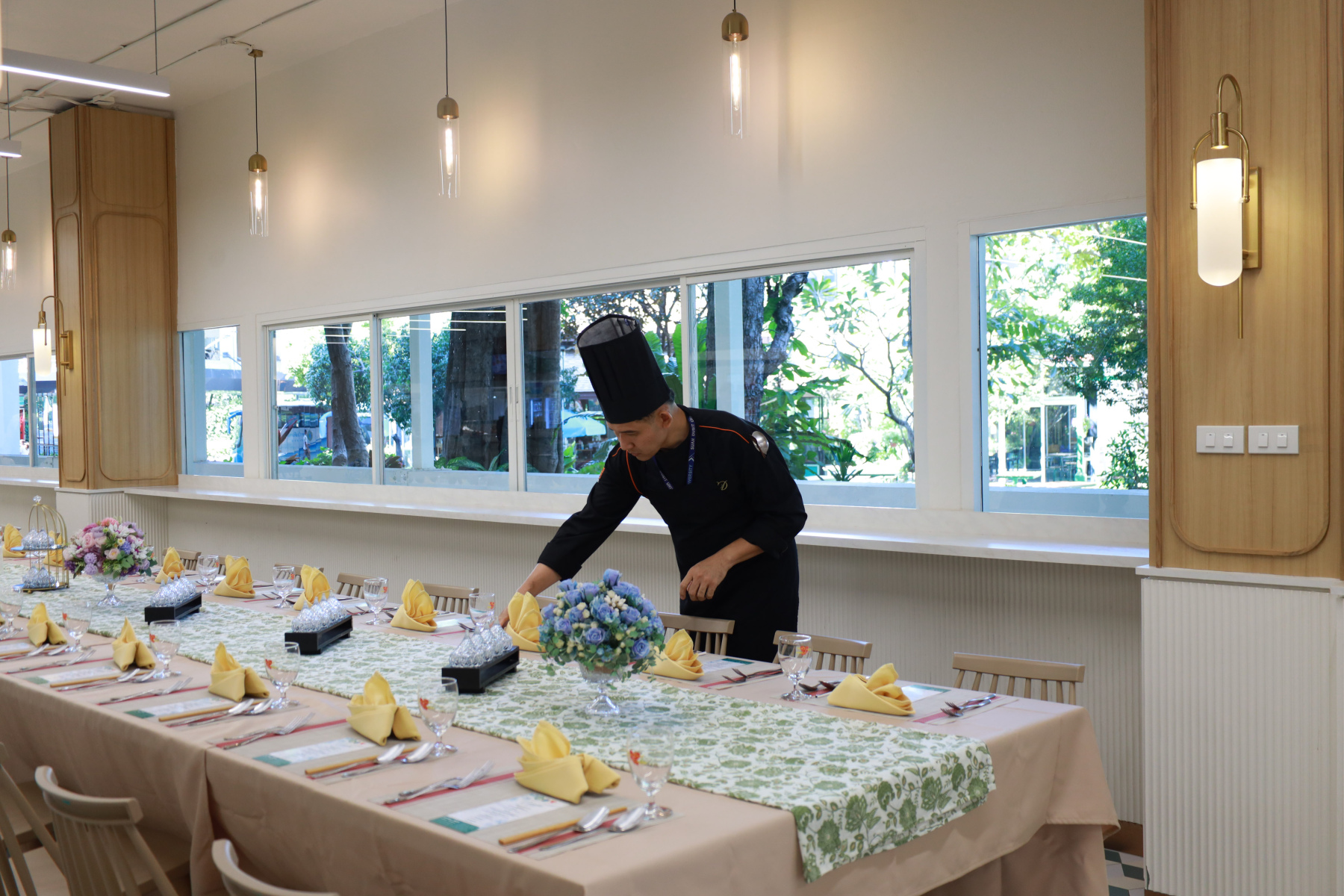 โครงการอาหารกลางวัน 1 (ครัวสวนดุสิต) สำนักกิจการพิเศษ มหาวิทยาลัยสวนดุสิต จัด “Chef’s Table for Eat Meet & Match : Business Matching” สนับสนุนผู้ประกอบการนวัตกรรมอาหารสู่ตลาดสากล โดยสำนักงานนวัตกรรมแห่งชาติ (NIA) ร่วมกับมหาวิทยาลัยแม่โจ้ ณ ครัวสวนดุสิต มหาวิทยาลัยสวนดุสิต เมื่อวันที่ 22 พฤศจิกายน 2568 ภายในงานประกอบด้วยการนำเสนอเมนูอาหารเชิงสร้างสรรค์จากวัตถุดิบของผู้ประกอบการนวัตกรรมอาหาร อาทิ พาสต้าจากข้าวไทย นมถั่วลายเสือ เส้นอกไก่ Plant-Based น้ำมะนาว เต้าหู้โซมะบอลล์ ผ่านการรังสรรค์เมนูโดย เชฟพอล อาจารย์พงษ์อนันต์ ศิริแสงไพรวัลย์ ร่วมกับ โครงการอาหารกลางวัน 1 (ครัวสวนดุสิต) ถ่ายทอดอัตลักษณ์วัตถุดิบท้องถิ่นผ่าน storytelling ผสานความดั้งเดิมกับความร่วมสมัย สู่เมนูสไตล์ Authentic &Thai Twist