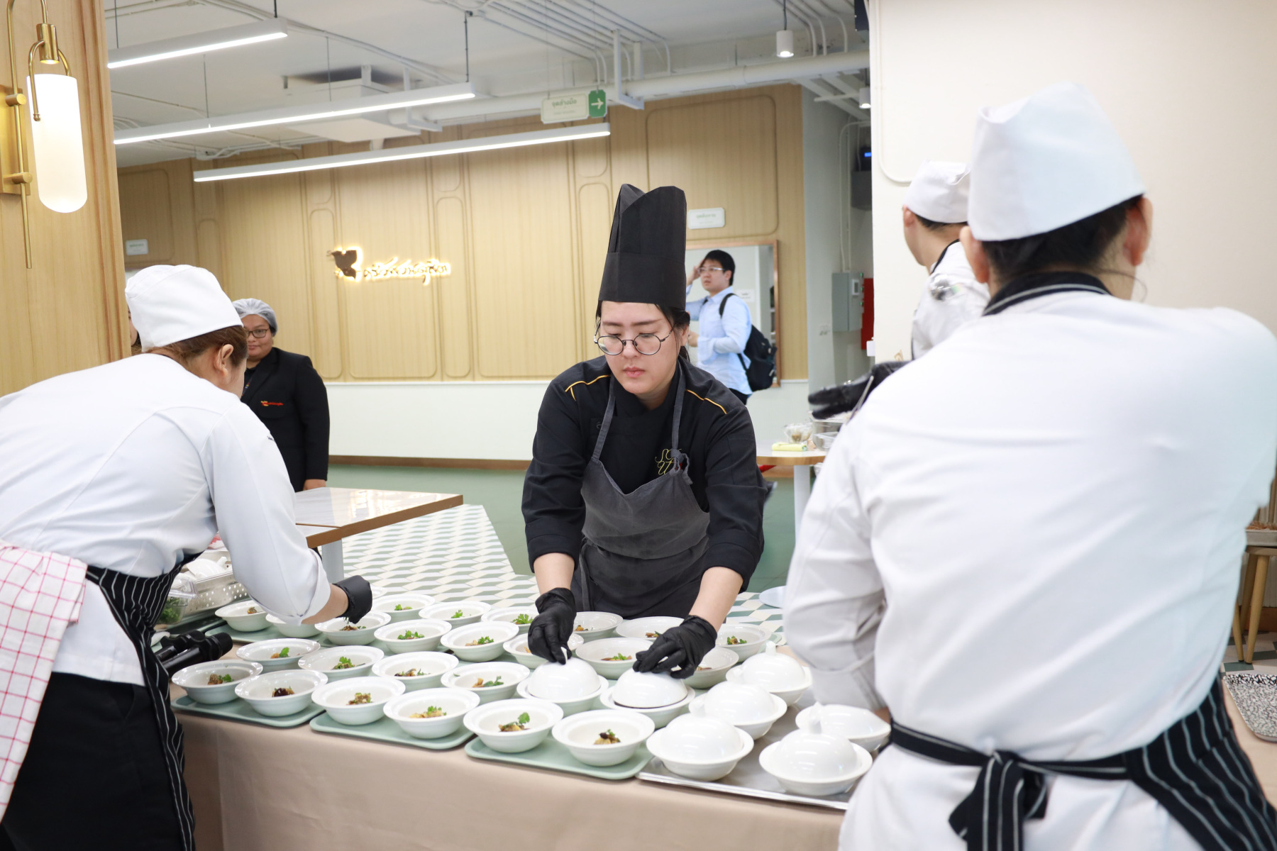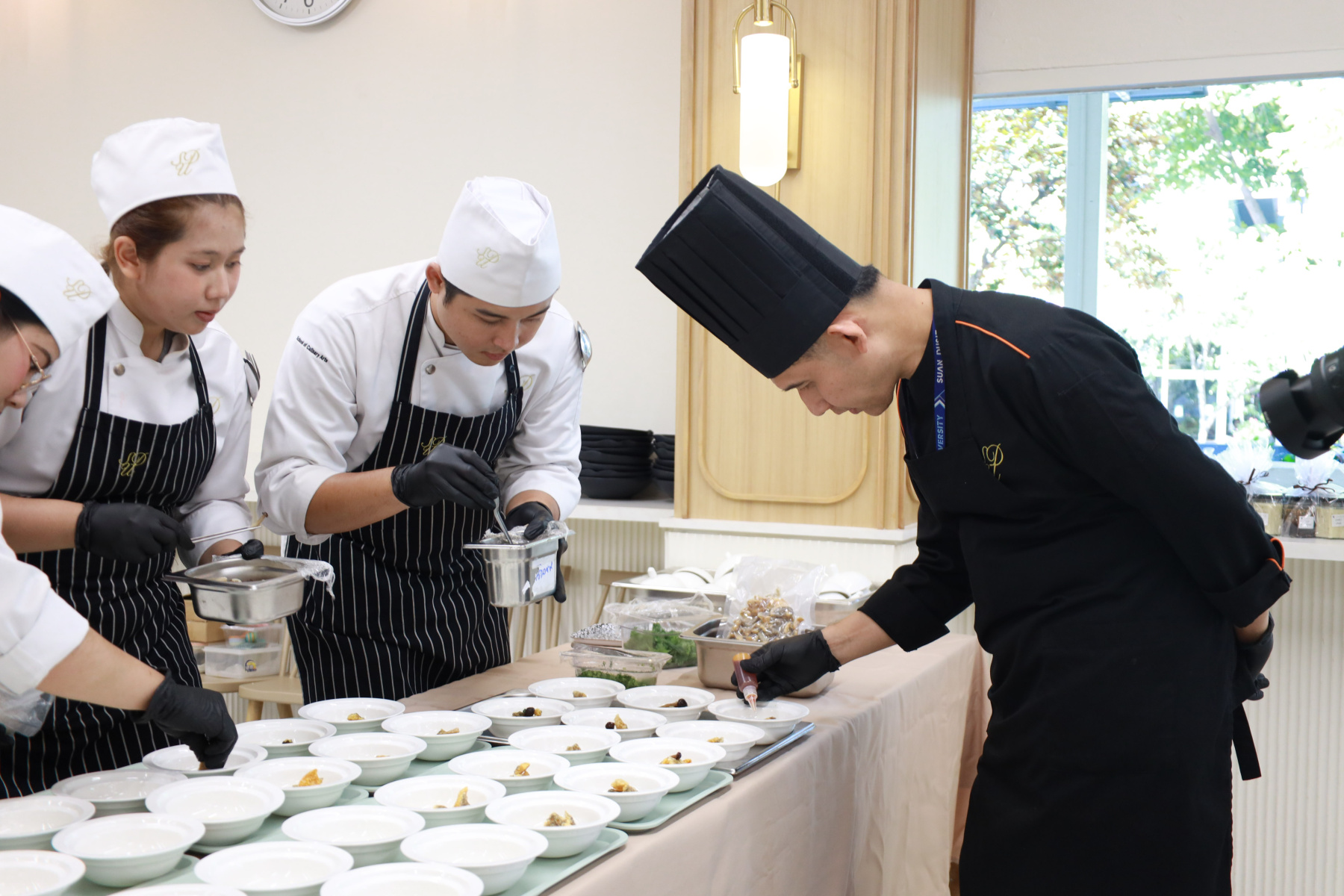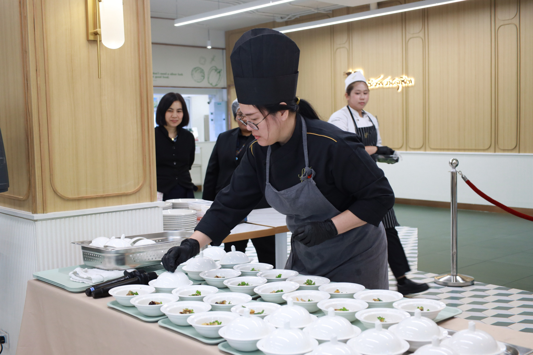 โครงการอาหารกลางวัน 1 (ครัวสวนดุสิต) สำนักกิจการพิเศษ มหาวิทยาลัยสวนดุสิต จัด “Chef’s Table for Eat Meet & Match : Business Matching” สนับสนุนผู้ประกอบการนวัตกรรมอาหารสู่ตลาดสากล โดยสำนักงานนวัตกรรมแห่งชาติ (NIA) ร่วมกับมหาวิทยาลัยแม่โจ้ ณ ครัวสวนดุสิต มหาวิทยาลัยสวนดุสิต เมื่อวันที่ 22 พฤศจิกายน 2568 ภายในงานประกอบด้วยการนำเสนอเมนูอาหารเชิงสร้างสรรค์จากวัตถุดิบของผู้ประกอบการนวัตกรรมอาหาร อาทิ พาสต้าจากข้าวไทย นมถั่วลายเสือ เส้นอกไก่ Plant-Based น้ำมะนาว เต้าหู้โซมะบอลล์ ผ่านการรังสรรค์เมนูโดย เชฟพอล อาจารย์พงษ์อนันต์ ศิริแสงไพรวัลย์ ร่วมกับ โครงการอาหารกลางวัน 1 (ครัวสวนดุสิต) ถ่ายทอดอัตลักษณ์วัตถุดิบท้องถิ่นผ่าน storytelling ผสานความดั้งเดิมกับความร่วมสมัย สู่เมนูสไตล์ Authentic &Thai Twist