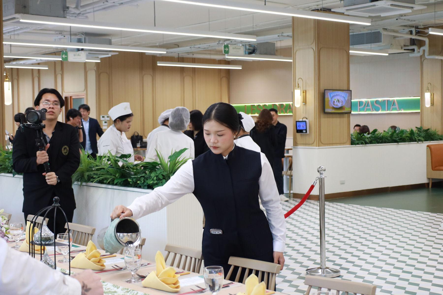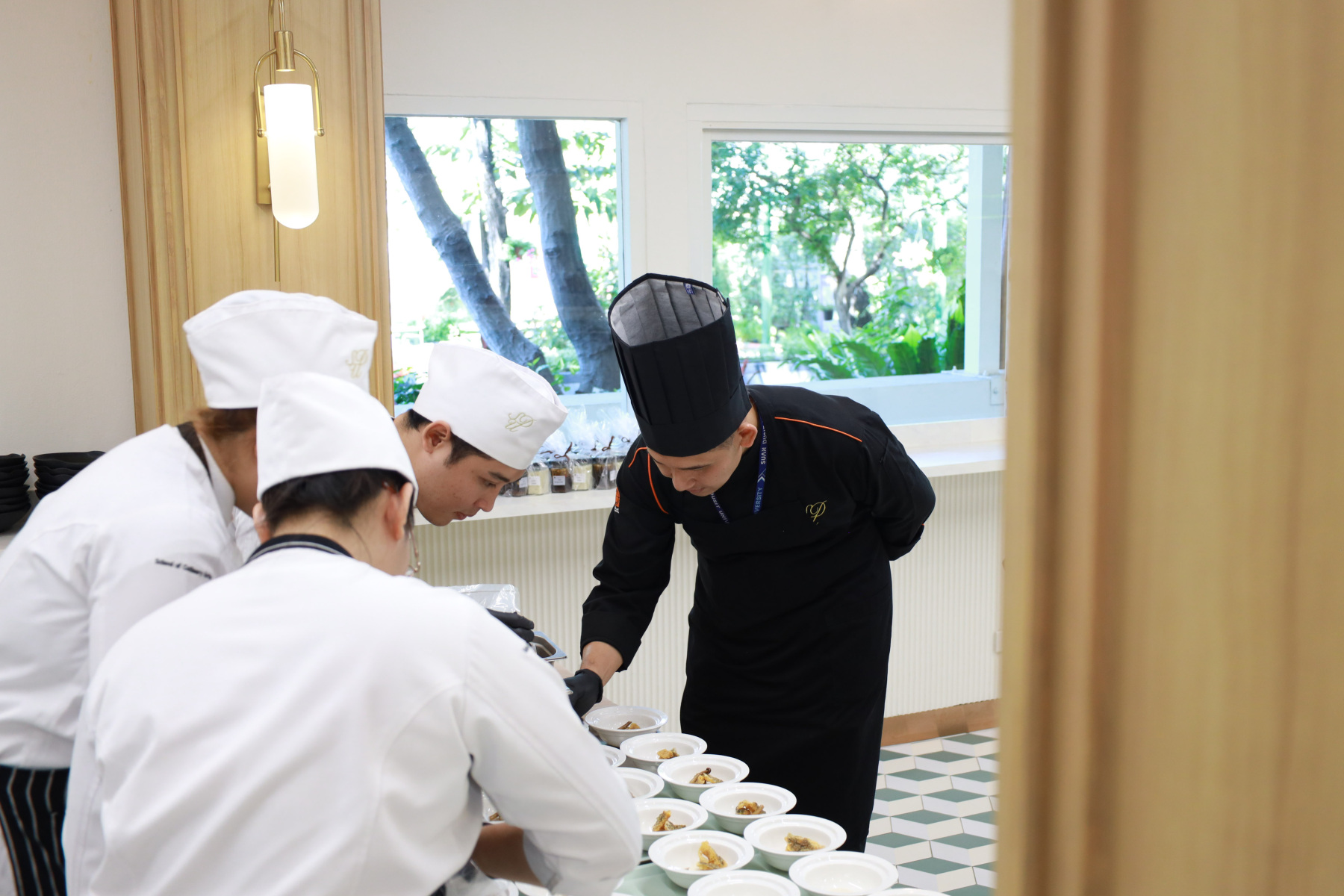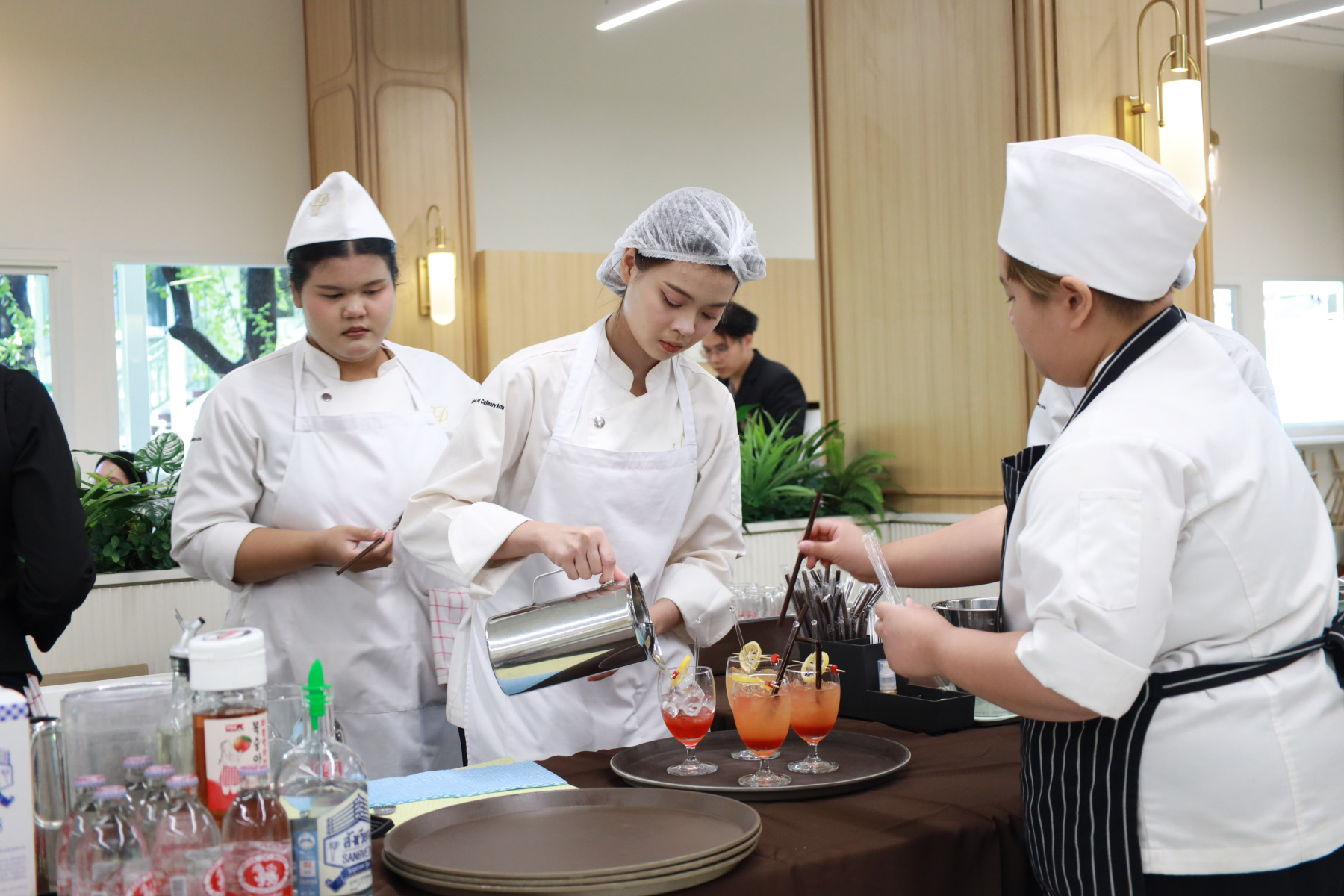 โครงการอาหารกลางวัน 1 (ครัวสวนดุสิต) สำนักกิจการพิเศษ มหาวิทยาลัยสวนดุสิต จัด “Chef’s Table for Eat Meet & Match : Business Matching” สนับสนุนผู้ประกอบการนวัตกรรมอาหารสู่ตลาดสากล โดยสำนักงานนวัตกรรมแห่งชาติ (NIA) ร่วมกับมหาวิทยาลัยแม่โจ้ ณ ครัวสวนดุสิต มหาวิทยาลัยสวนดุสิต เมื่อวันที่ 22 พฤศจิกายน 2568 ภายในงานประกอบด้วยการนำเสนอเมนูอาหารเชิงสร้างสรรค์จากวัตถุดิบของผู้ประกอบการนวัตกรรมอาหาร อาทิ พาสต้าจากข้าวไทย นมถั่วลายเสือ เส้นอกไก่ Plant-Based น้ำมะนาว เต้าหู้โซมะบอลล์ ผ่านการรังสรรค์เมนูโดย เชฟพอล อาจารย์พงษ์อนันต์ ศิริแสงไพรวัลย์ ร่วมกับ โครงการอาหารกลางวัน 1 (ครัวสวนดุสิต) ถ่ายทอดอัตลักษณ์วัตถุดิบท้องถิ่นผ่าน storytelling ผสานความดั้งเดิมกับความร่วมสมัย สู่เมนูสไตล์ Authentic &Thai Twist