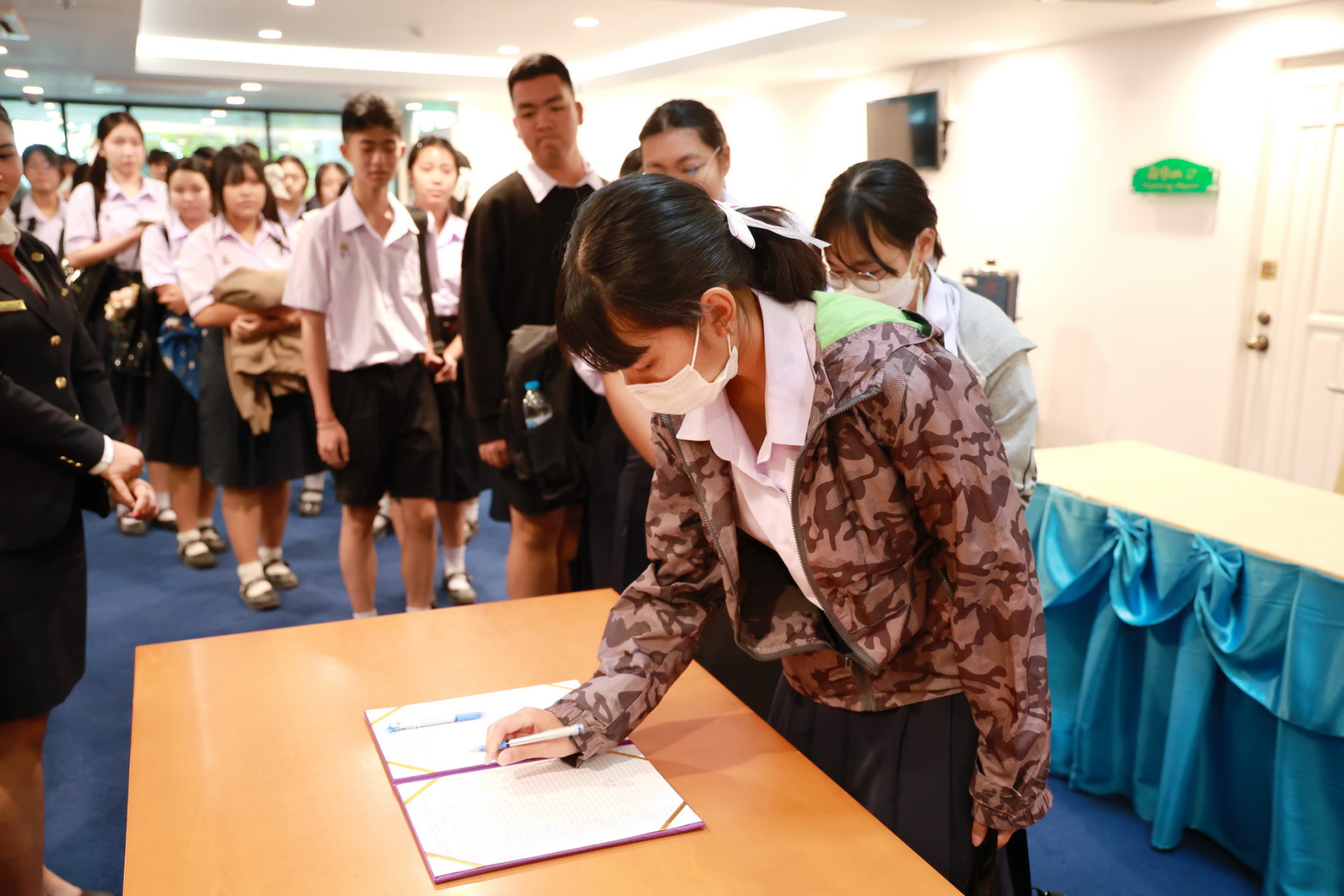 ดร.สุชาดา อภิรัตน์ รองคณบดีโรงเรียนการท่องเที่ยวและการบริการ กล่าวต้อนรับคณะศึกษาดูงานจากโรงเรียนนวมินทราชินูทิศ สตรีวิทยา พุทธมณฑล และได้มีการจัดกิจกรรมการบรรยายพิเศษ เส้นทางสู่ความเป็นเลิศด้านการบริการ และเบื้องหลังความสำเร็จของการบริการโรงแรมมืออาชีพ, กิจกรรม Workshop ศิลปะแห่งการรับประทานอาหารแบบสากล (Table Manner) พร้อมรับประทานอาหารกลางวัน และกิจกรรมศาสตร์แห่งศิลป์การผสมเครื่องดื่ม (Mocktail Creation)