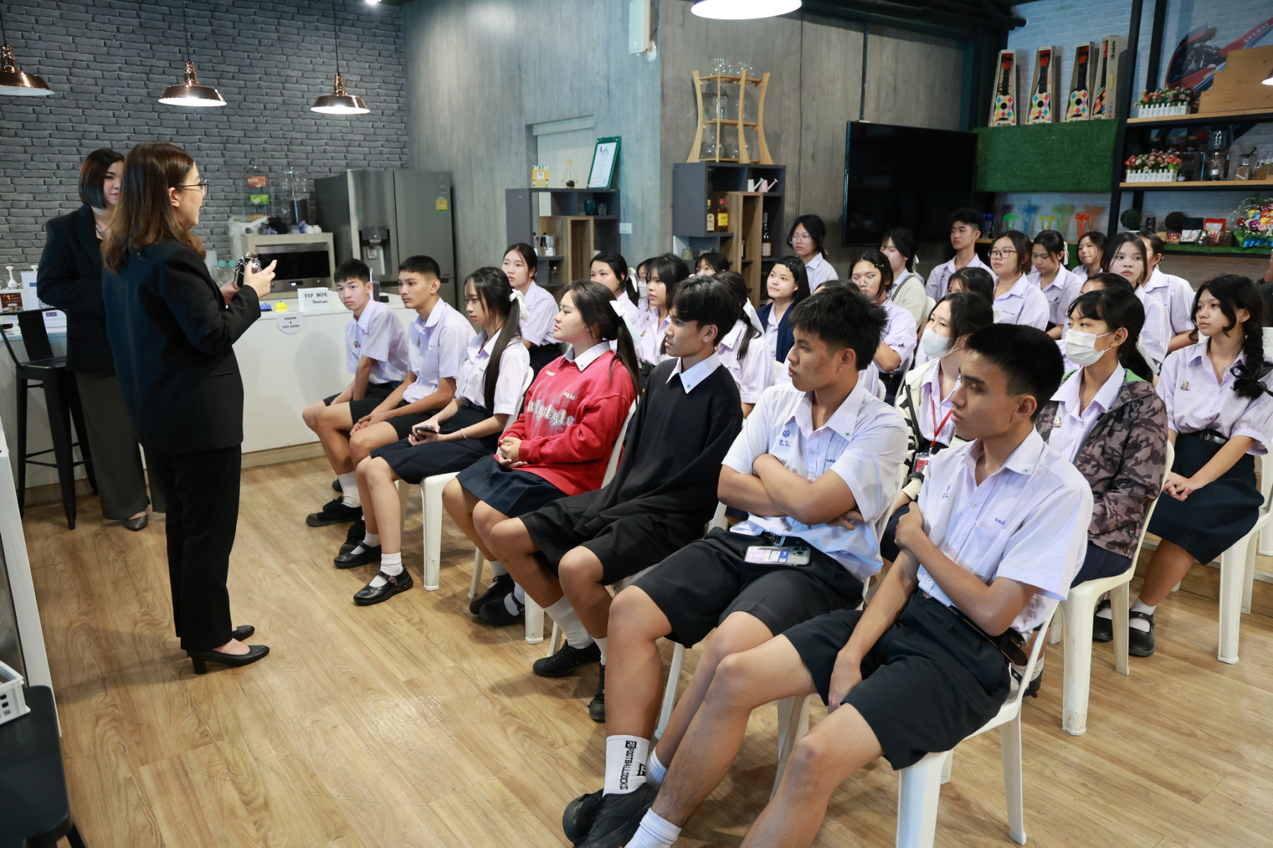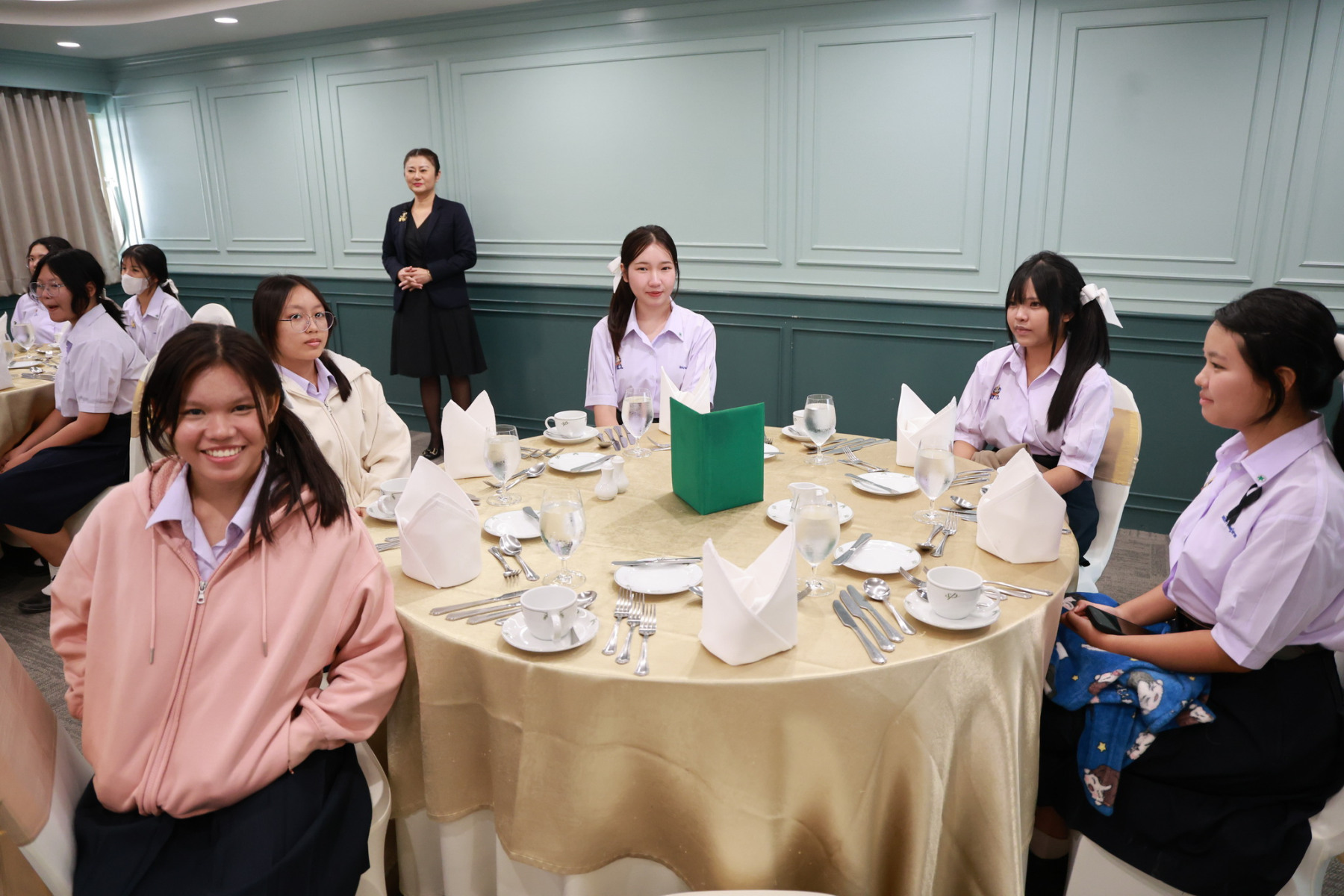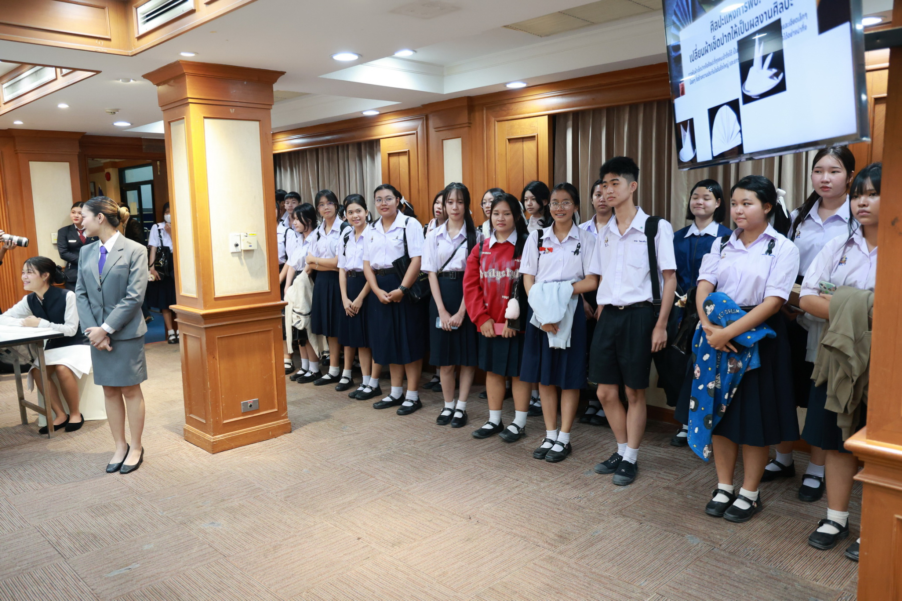 ดร.สุชาดา อภิรัตน์ รองคณบดีโรงเรียนการท่องเที่ยวและการบริการ กล่าวต้อนรับคณะศึกษาดูงานจากโรงเรียนนวมินทราชินูทิศ สตรีวิทยา พุทธมณฑล และได้มีการจัดกิจกรรมการบรรยายพิเศษ เส้นทางสู่ความเป็นเลิศด้านการบริการ และเบื้องหลังความสำเร็จของการบริการโรงแรมมืออาชีพ, กิจกรรม Workshop ศิลปะแห่งการรับประทานอาหารแบบสากล (Table Manner) พร้อมรับประทานอาหารกลางวัน และกิจกรรมศาสตร์แห่งศิลป์การผสมเครื่องดื่ม (Mocktail Creation)
