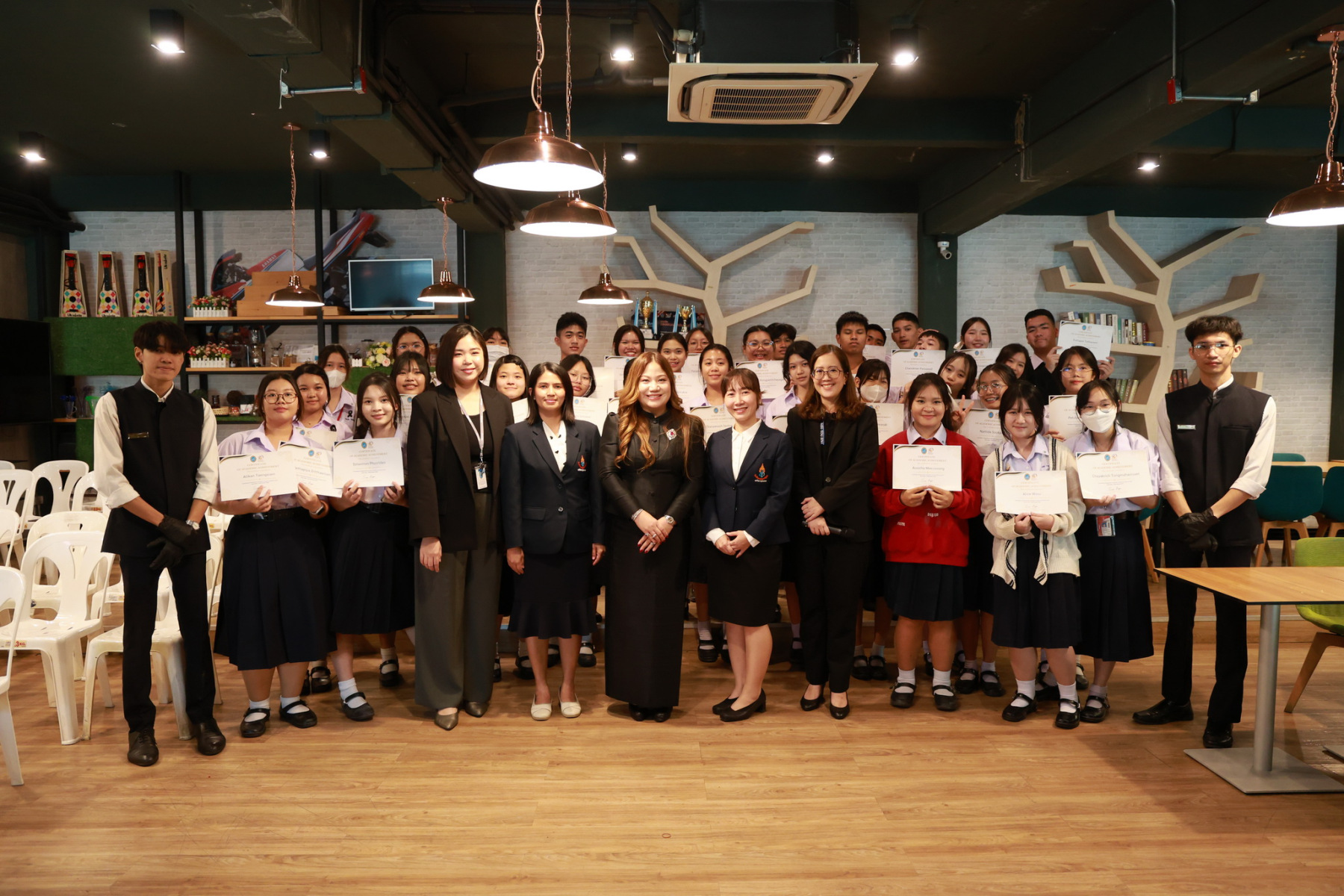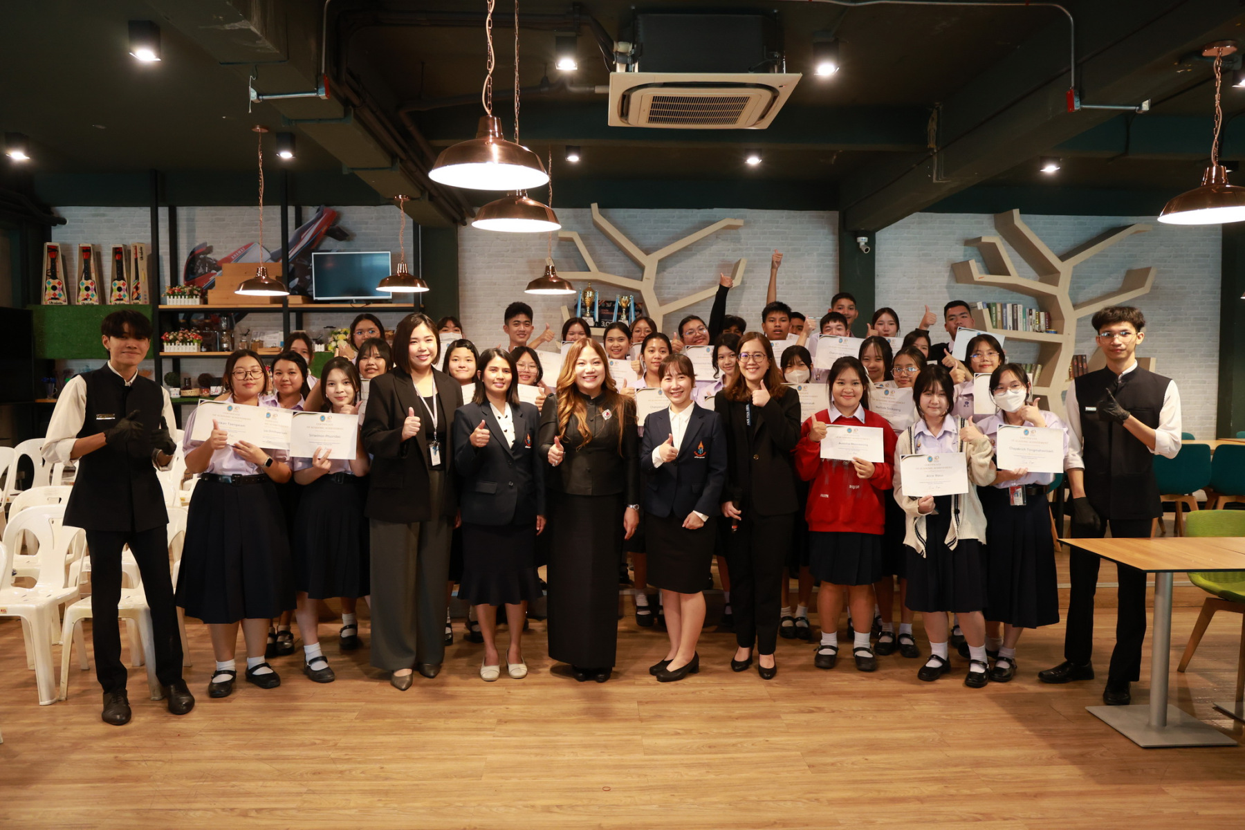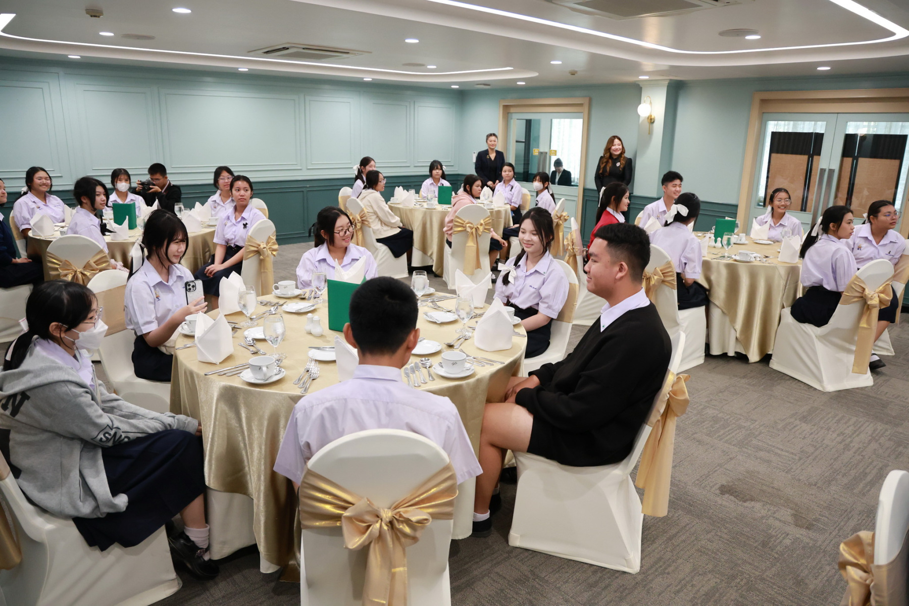 ดร.สุชาดา อภิรัตน์ รองคณบดีโรงเรียนการท่องเที่ยวและการบริการ กล่าวต้อนรับคณะศึกษาดูงานจากโรงเรียนนวมินทราชินูทิศ สตรีวิทยา พุทธมณฑล และได้มีการจัดกิจกรรมการบรรยายพิเศษ เส้นทางสู่ความเป็นเลิศด้านการบริการ และเบื้องหลังความสำเร็จของการบริการโรงแรมมืออาชีพ, กิจกรรม Workshop ศิลปะแห่งการรับประทานอาหารแบบสากล (Table Manner) พร้อมรับประทานอาหารกลางวัน และกิจกรรมศาสตร์แห่งศิลป์การผสมเครื่องดื่ม (Mocktail Creation)