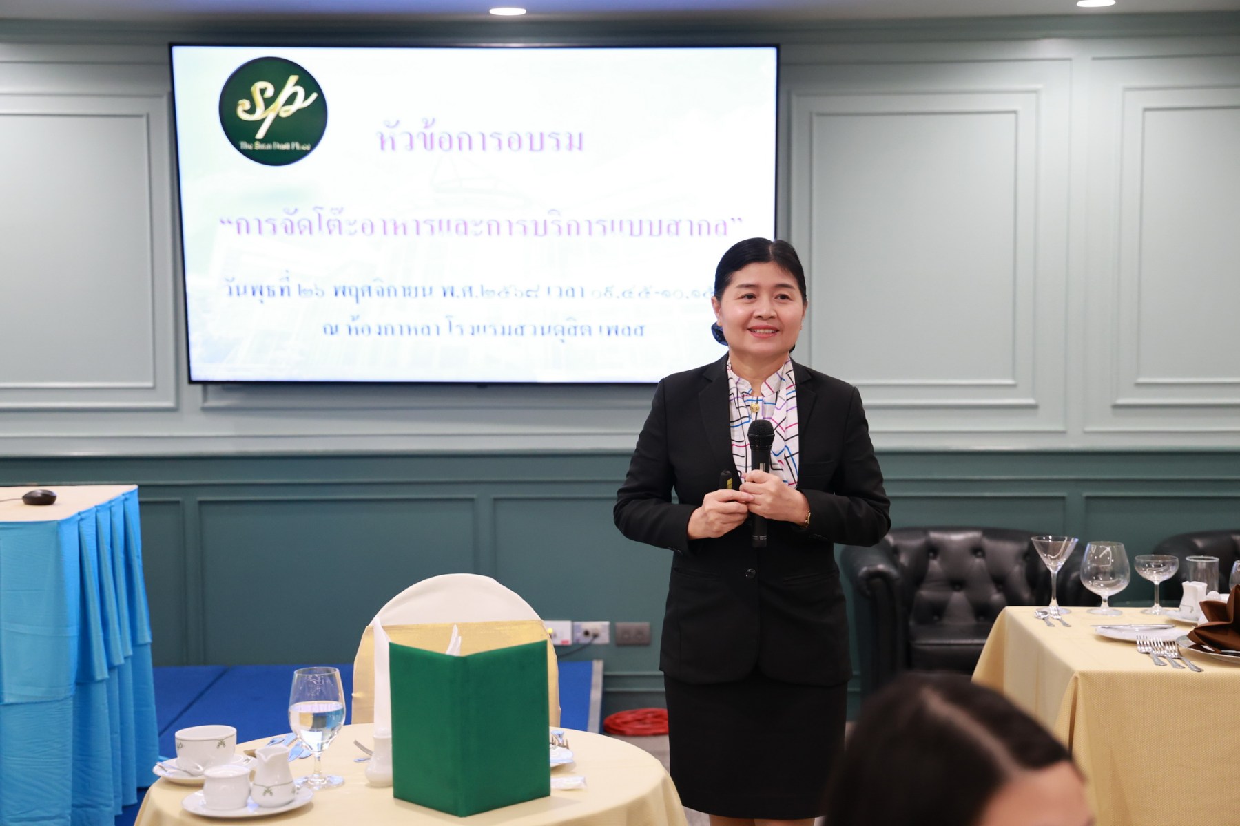 บรรยายเรื่องการจัดโต๊ะอาหารและการบริการแบบสากล