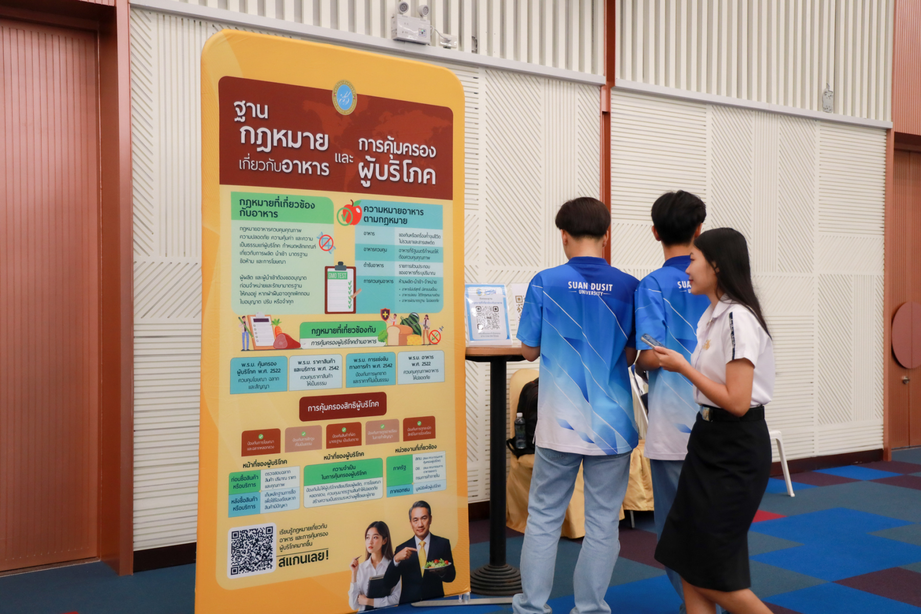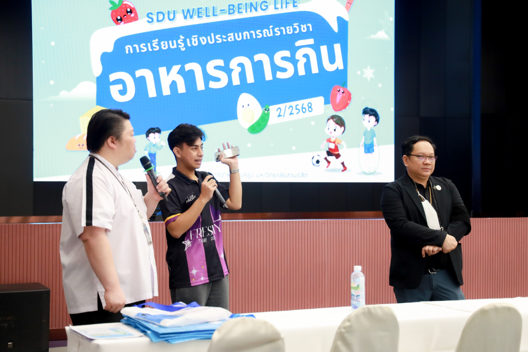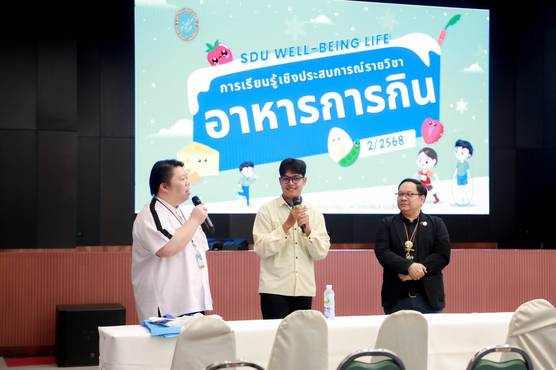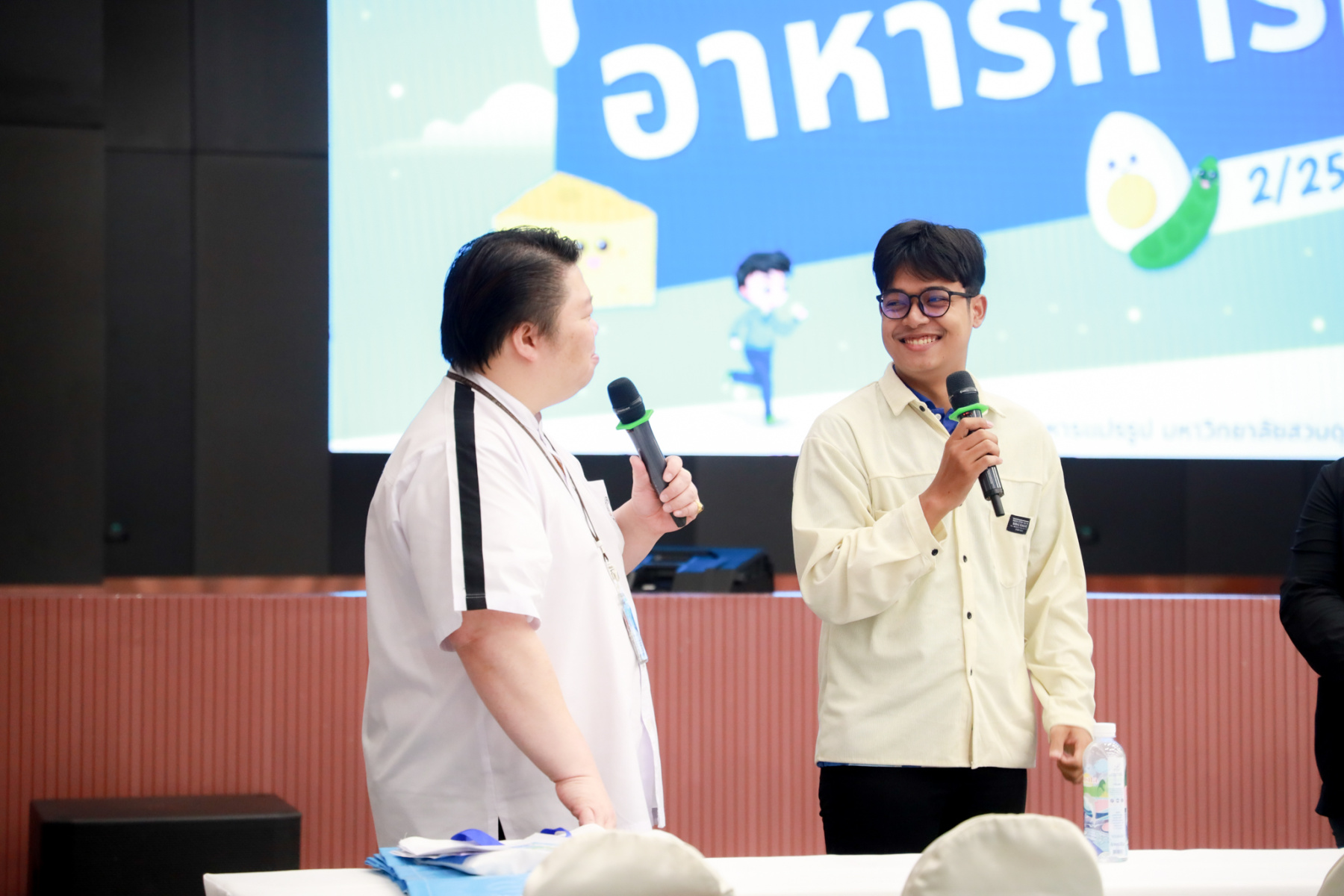 โครงการปฏิบัติการอาหารแปรรูป จัดโครงการจัดการเรียนการสอนเชิงประสบการณ์ รายวิชาอาหารการกิน ประจำภาคเรียนที่ 2/2568 โดยจัดกิจกรรมฐานการเรียนรู้ ได้แก่ ฐานอาหารฮาลาล ฐาน อย. กับฉลากอาหาร ฐานกฎหมายเกี่ยวกับอาหารและการคุ้มครองผู้บริโภค ฐานการเลือกซื้อและการเก็บอาหาร และการบรรยายพิเศษ วิทยากรโดย ดร.นราธิป อ่ำเที่ยงตรง ประธานกรรมการ บริษัท ฮาบิ32 จำกัด ในหัวข้อ Food Lifestyles in Modern Society เมื่อวันที่ 27 พฤศจิกายน 2568 ณ ชั้น 1 หอประชุมรักตะกนิษฐ มหาวิทยาลัยสวนดุสิต