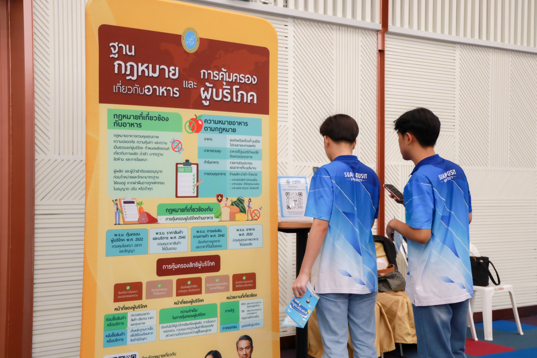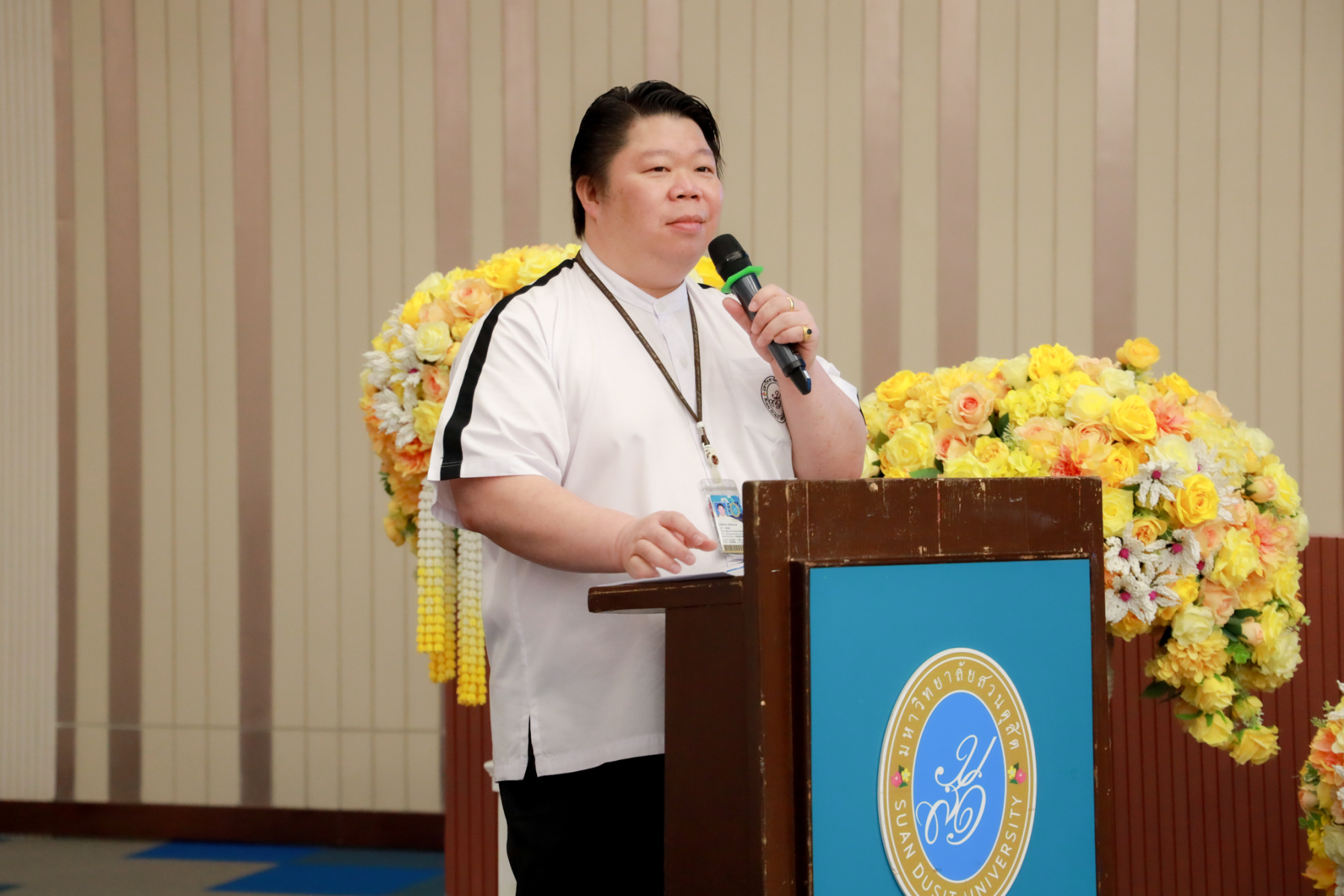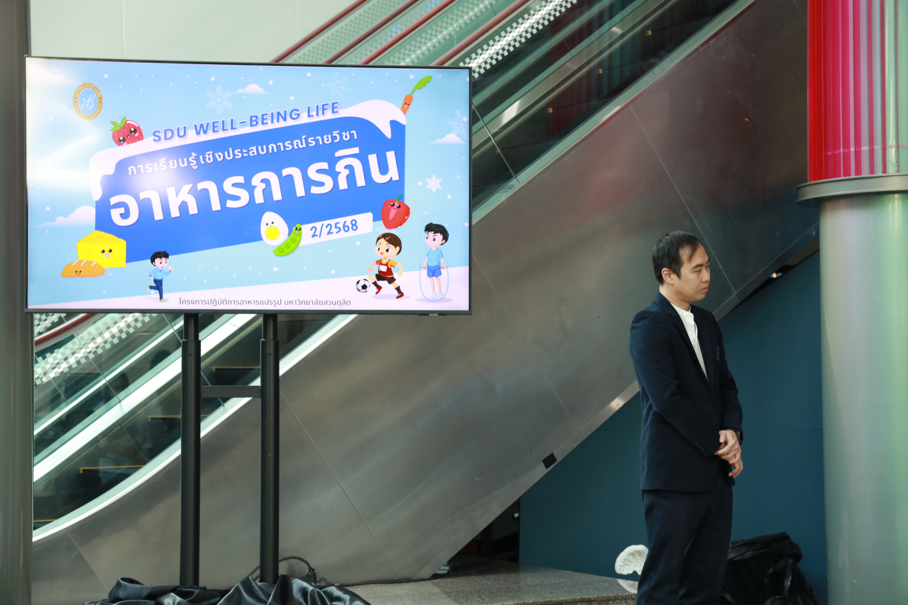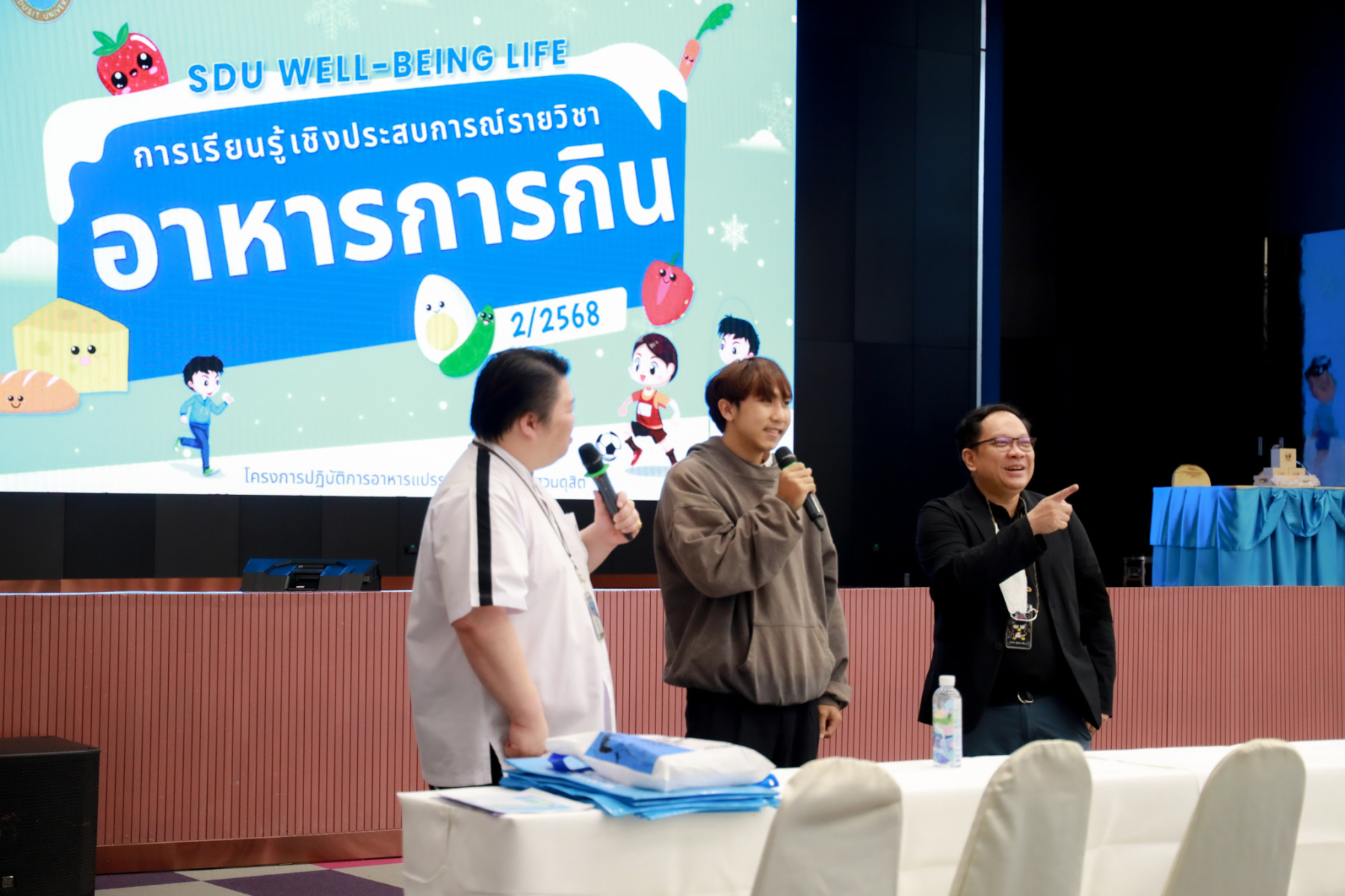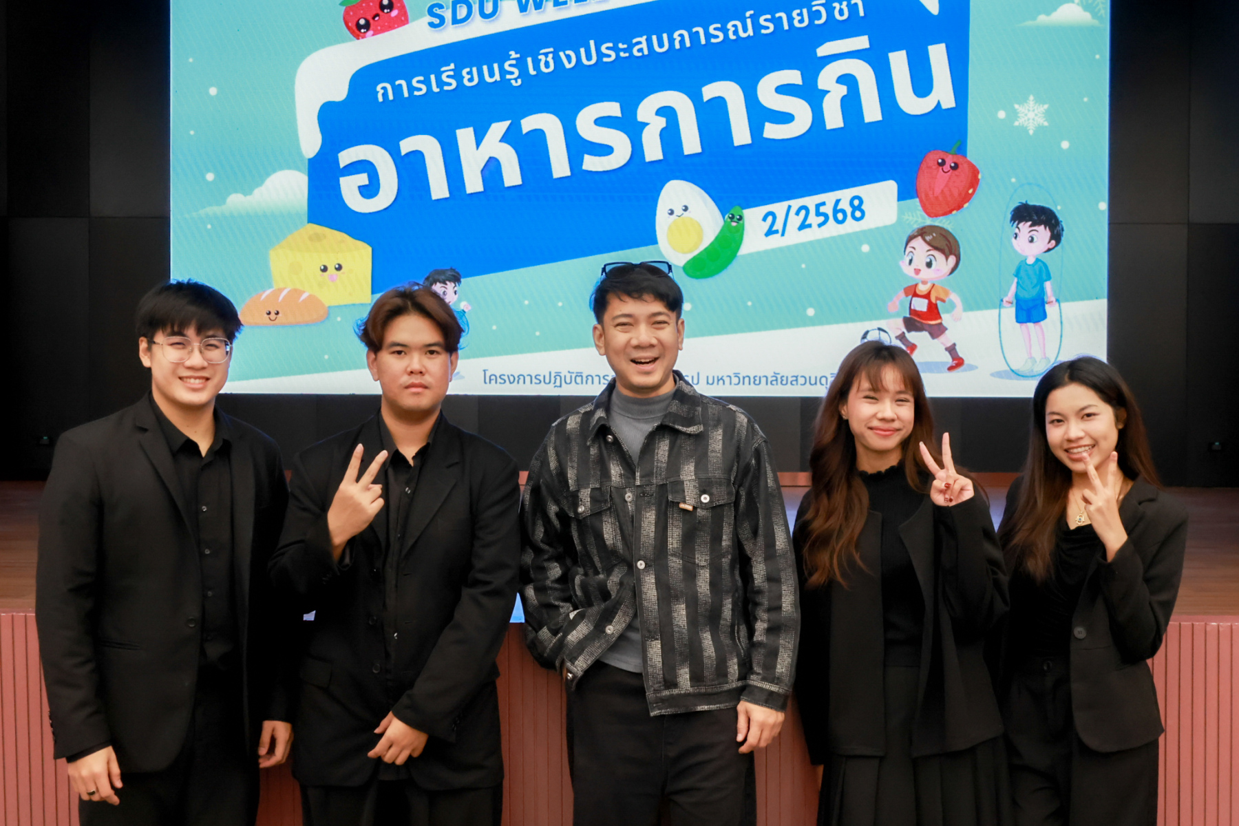 โครงการปฏิบัติการอาหารแปรรูป จัดโครงการจัดการเรียนการสอนเชิงประสบการณ์ รายวิชาอาหารการกิน ประจำภาคเรียนที่ 2/2568 โดยจัดกิจกรรมฐานการเรียนรู้ ได้แก่ ฐานอาหารฮาลาล ฐาน อย. กับฉลากอาหาร ฐานกฎหมายเกี่ยวกับอาหารและการคุ้มครองผู้บริโภค ฐานการเลือกซื้อและการเก็บอาหาร และการบรรยายพิเศษ วิทยากรโดย ดร.นราธิป อ่ำเที่ยงตรง ประธานกรรมการ บริษัท ฮาบิ32 จำกัด ในหัวข้อ Food Lifestyles in Modern Society เมื่อวันที่ 27 พฤศจิกายน 2568 ณ ชั้น 1 หอประชุมรักตะกนิษฐ มหาวิทยาลัยสวนดุสิต