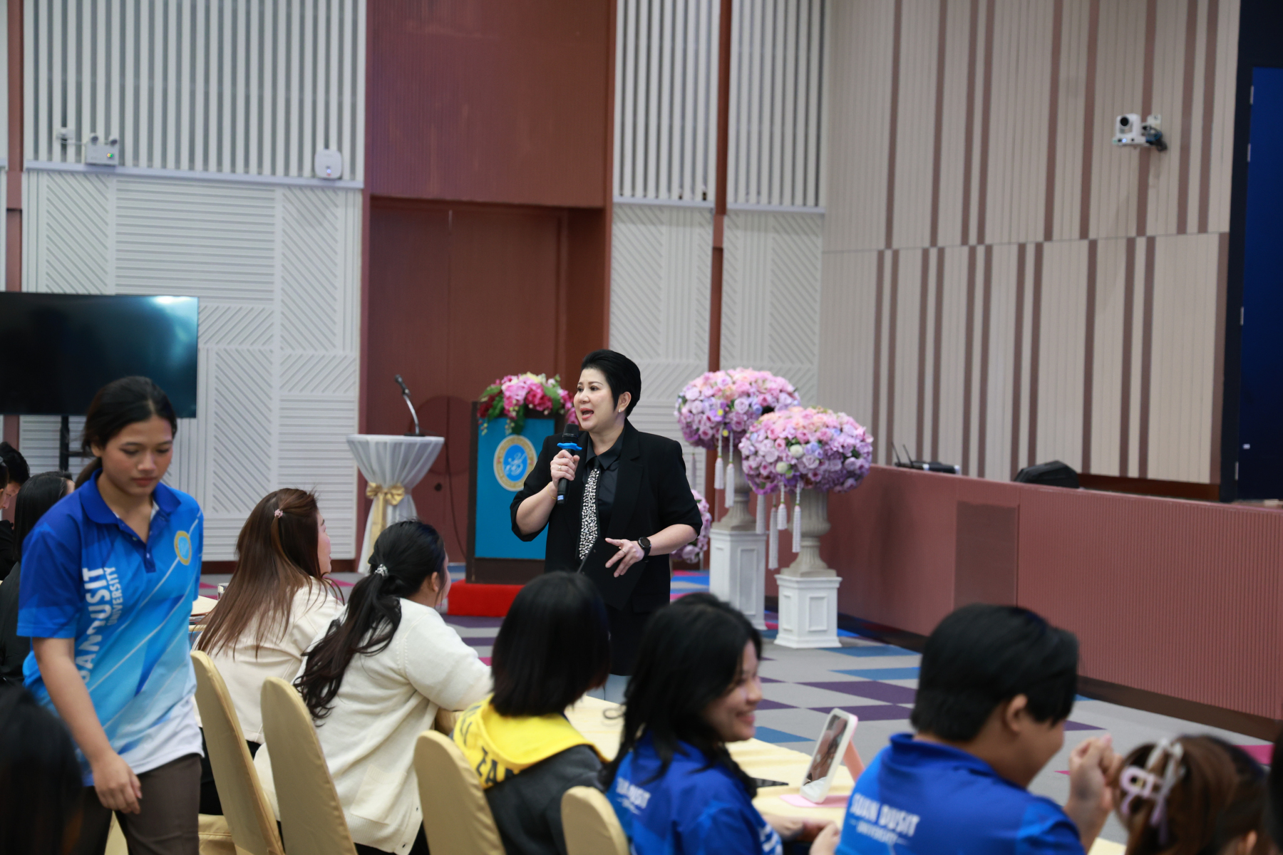 ศูนย์พัฒนาทุนมนุษย์ ร่วมกับ สำนักส่งเสริมวิชาการและงานทะเบียน จัดการเรียนการสอนเชิงประสบการณ์ รายวิชาคุณค่าของความสุข พบกับการบรรยายในหัวข้อ ฮีลใจง่าย ๆ สไตล์ หลงลี และฟีโน่ เมื่อวันศุกร์ที่ 28 พฤศจิกายน 2568 ณ หอประชุมรักตะกนิษฐ ชั้น 2