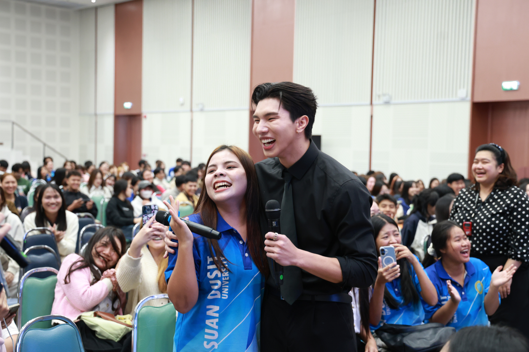 ศูนย์พัฒนาทุนมนุษย์ ร่วมกับ สำนักส่งเสริมวิชาการและงานทะเบียน จัดการเรียนการสอนเชิงประสบการณ์ รายวิชาคุณค่าของความสุข พบกับการบรรยายในหัวข้อ ฮีลใจง่าย ๆ สไตล์ หลงลี และฟีโน่ เมื่อวันศุกร์ที่ 28 พฤศจิกายน 2568 ณ หอประชุมรักตะกนิษฐ ชั้น 2