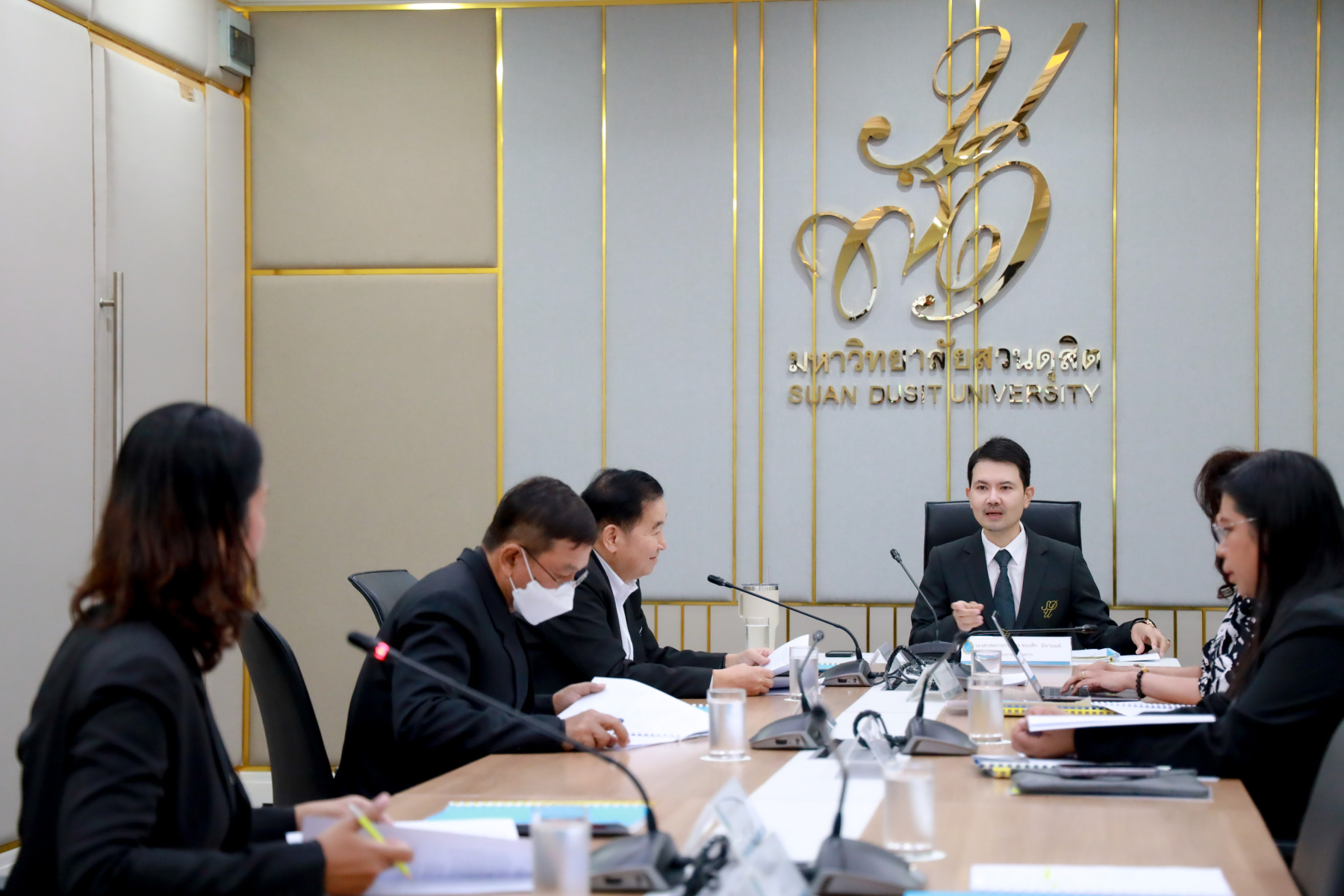 รองศาสตราจารย์ ดร.ชนะศึก นิชานนท์ รองอธิการบดีฝ่ายบริหาร วิจัย และนวัตกรรม เป็นประธานการประชุมคณะกรรมการประเมินเพื่อแต่งตั้งพนักงานมหาวิทยาลัยให้ดำรงตำแหน่งสูงขึ้น ครั้งที่ 6/2568 โดยมีวาระการประชุม เรื่อง การพิจารณากลั่นกรองผลการประเมิน และพิจารณาการขอแต่งตั้งให้ดำรงตำแหน่งสูงขึ้น ระดับชำนาญการ จำนวน 1 ราย และเรื่อง การพิจารณารายชื่อผู้เชี่ยวชาญเพื่อประเมิณผลงานพนักงานมหาวิทยาลัยให้ดำรงตำแหน่งสูงขึ้น ระดับชำนาญการ จำนวน 1 ราย ซึ่งการประชุมดังกล่าว จัดขึ้นเมื่อวันที่ 1 ธันวาคม 2568 ณ ห้องประชุมลำพอง 3 มหาวิทยาลัยสวนดุสิต