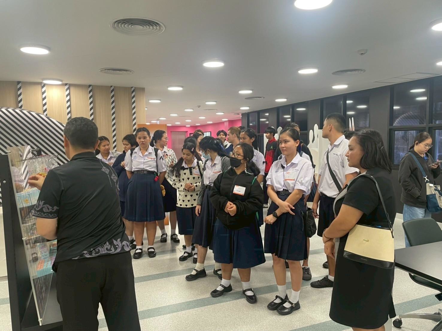 เมื่อวันที่ 26 พฤศจิกายน 2568 One World Library มหาวิทยาลัยสวนดุสิต ให้การต้อนรับอาจารย์และนักศึกษาโรงเรียนโสตศึกษา จ.ชลบุรี  จำนวน 20 ท่าน เยี่ยมชมพื้นที่การเรียนรู้ One World Library โดยมี Floor Supervisor One World Library ให้การต้อนรับและแนะนำบริการต่าง ช่น แหล่งทรัพยากรสารสนเทศเพื่อการเรียนรู้ พื้นที่ AI Station ซึ่งเป็นเครื่องมือช่วยค้นคว้า สร้างสื่อและออกแบบงานต่าง ๆ การบริการห้องสมุดในยุคดิจิทัล ซึ่งนำ AI ให้บริการในห้องสมุด เพื่อเพิ่มประสิทธิภาพในการสืบค้นข้อมูล แนะนำทรัพยากร และพัฒนาประสบการณ์การใช้งานของนักศึกษาและผู้ใช้บริการ ณ อาคาร One World Library และ ห้องออนไลน์ 19 – 20 มหาวิทยาลัยสวนดุสิต
