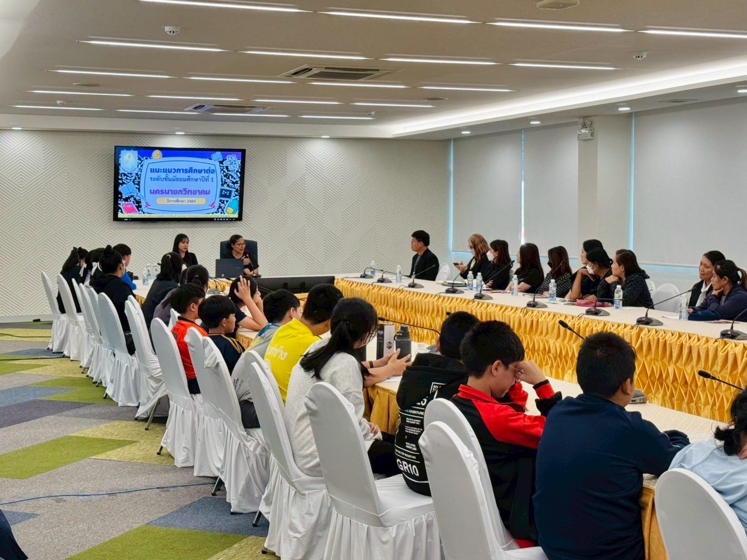 นอกจากนี้ โรงเรียนยังได้เชิญผู้ปกครองร่วมรับฟังการบรรยาย เพื่อเสริมสร้างความเข้าใจร่วมกันในการเตรียมความพร้อมด้านการศึกษาต่อของนักเรียน เพื่อเป็นแนวทางในการสนับสนุนและแนะนำบุตรหลานได้อย่างถูกต้องเหมาะสม กิจกรรมครั้งนี้ช่วยให้ทั้งนักเรียนและผู้ปกครองมีมุมมองที่ชัดเจนยิ่งขึ้นเกี่ยวกับเส้นทางการศึกษาที่สอดคล้องกับศักยภาพและความถนัด ส่งผลให้การวางแผนอนาคตทางการศึกษามีความมั่นใจและมีประสิทธิภาพมากยิ่งขึ้น.