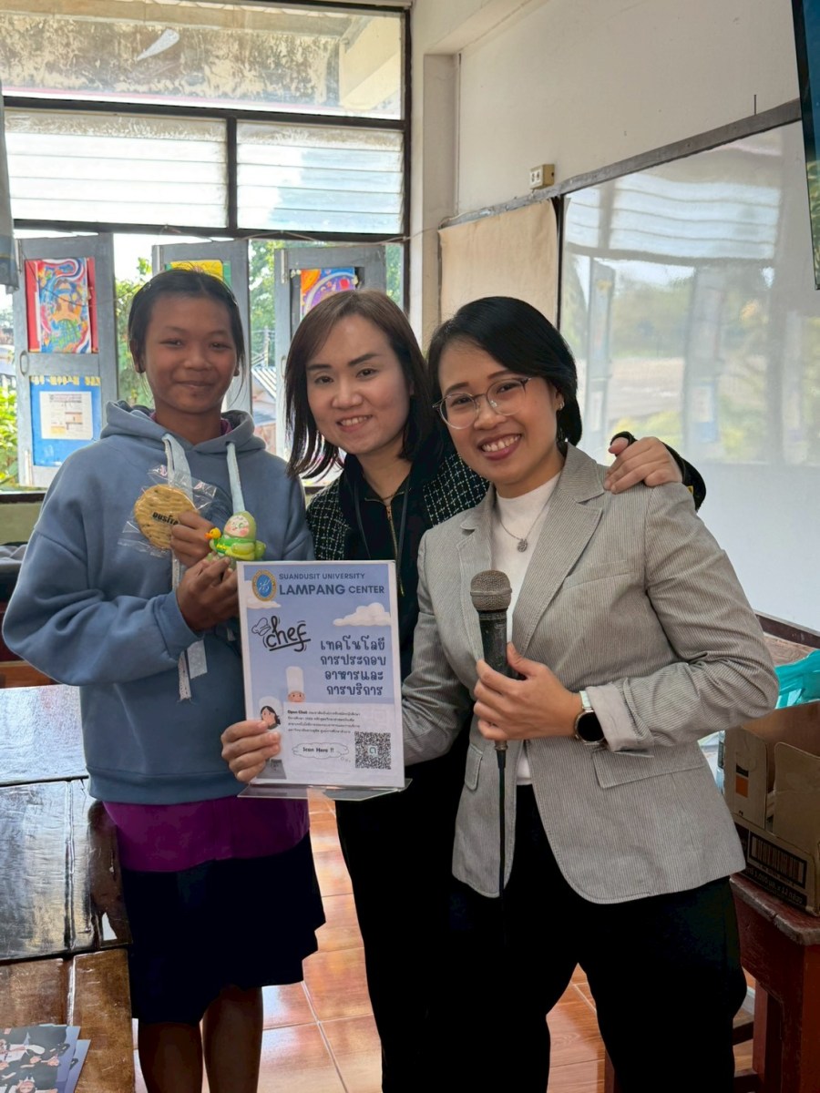 มหาวิทยาลัยสวนดุสิต ศูนย์การศึกษา ลำปาง ลงพื้นที่จัดกิจกรรมแนะแนวการศึกษาที่โรงเรียนตรอนตรีสินธุ์ จังหวัดอุตรดิตถ์ โดยให้ข้อมูลเกี่ยวกับหลักสูตรที่เปิดสอน ทุนการศึกษา กระบวนการรับสมัคร และเส้นทางอาชีพในอนาคต เพื่อให้นักเรียนได้เตรียมความพร้อมและวางแผนการศึกษาต่ออย่างมั่นใจ พร้อมทั้งเปิดโอกาสให้นักเรียนสอบถามข้อสงสัยและรับคำแนะนำอย่างใกล้ชิด บรรยากาศเป็นกันเองและได้รับความสนใจจากนักเรียนเป็นอย่างดี