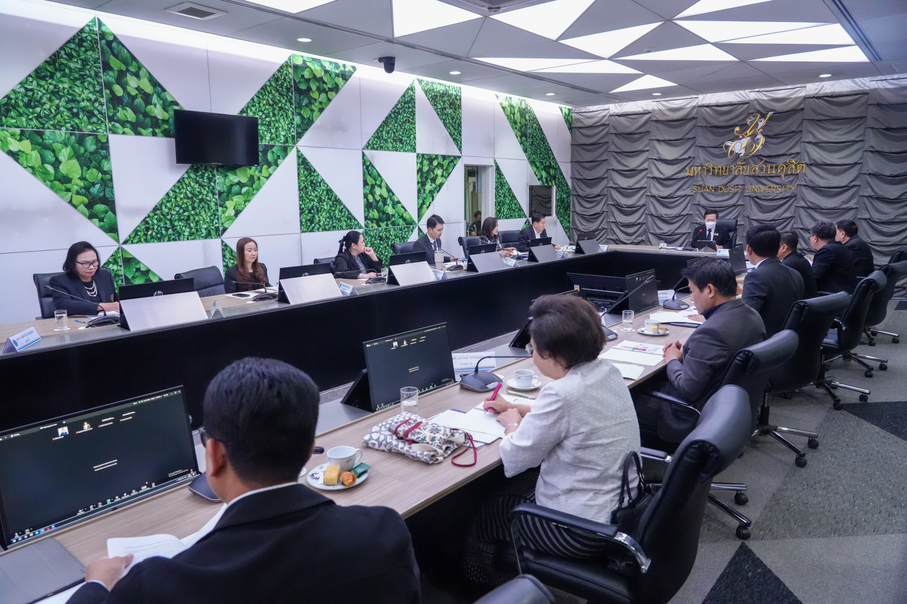 ผศ.ดร.พิทักษ์ จันทร์เจริญ อธิการบดีมหาวิทยาลัยสวนดุสิต เป็นประธานการประชุมคณะกรรมการประจำบัณฑิตวิทยาลัย มหาวิทยาลัยสวนดุสิต ครั้งที่ 5/2568 โดยมีวาระเพื่อพิจารณาเรื่อง การพิจารณา (ร่าง) หลักสูตรปรัชญาดุษฎีบัณฑิต สาขาวิชากฎหมายการเมือง ณ ห้องประชุมศาลาชื่นอารมณ์ มหาวิทยาลัยสวนดุสิต เมื่อวันที่ 1 ธันวาคม 2568 โอกาสนี้ คณะกรรมการประจำบัณฑิตวิทยาลัย ร่วมแสดงยินดีกับคณะกรรมการ 4 ท่าน ดังนี้
