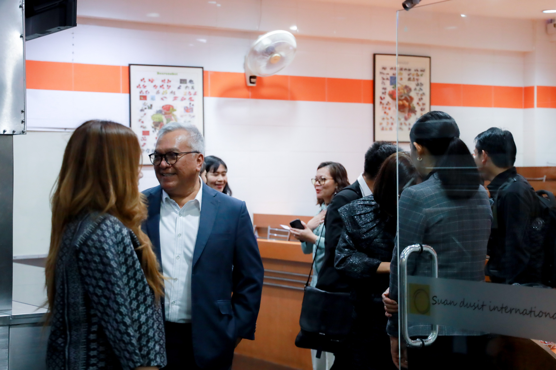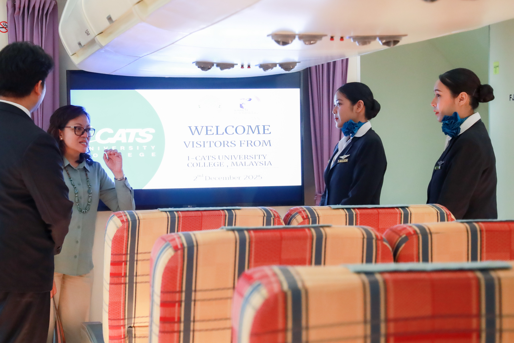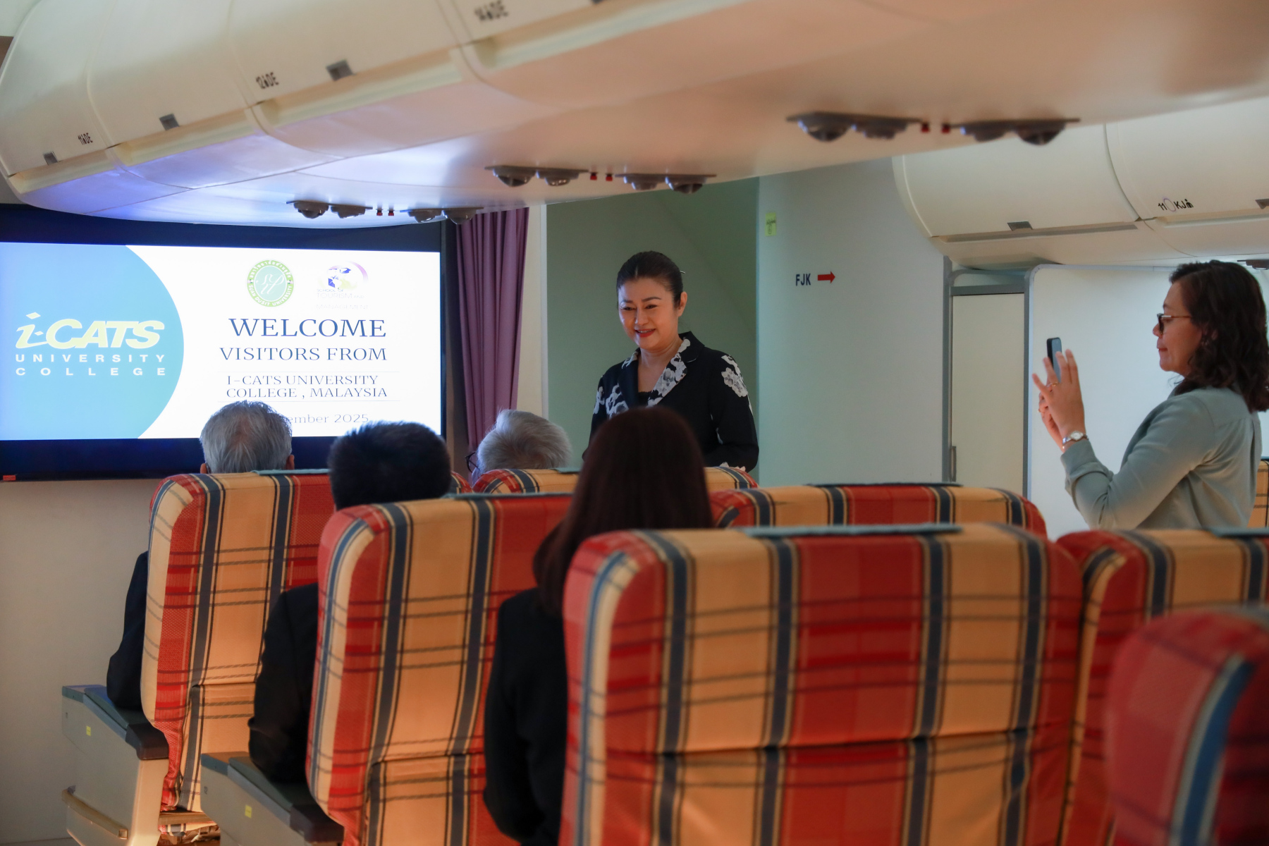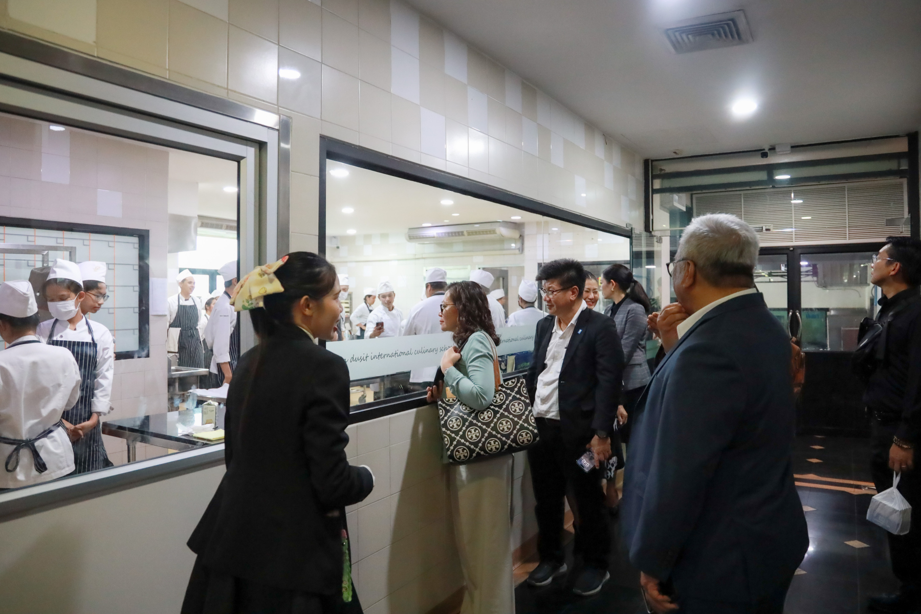 ผู้ช่วยศาสตราจารย์ ดร.พิมพ์มาดา วิชาศิลป์ คณบดีโรงเรียนการท่องเที่ยวและการบริการ กล่าวต้อนรับคณะศึกษาดูงานจาก I-CATS University College ประเทศมาเลเซีย โดยมีวัตถุประสงค์เพื่อพูดคุยและหารือข้อตกลงทางวิชาการ ณ ห้องประชุมลำพอง 2 ทั้งนี้ มีการเยี่ยมชมโรงแรมสวนดุสิต เพลส ห้องปฏิบัติการจำลองบนเครื่องบิน (Mock – up) ศูนย์ฝึกปฏิบัติการอาหารนานาชาติ (Suan Dusit International Culinary Center) และ Home Bakery มหาวิทยาลัยสวนดุสิต ในวันที่ 2 ธันวาคม 2568