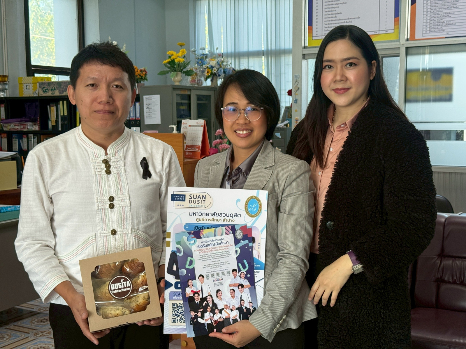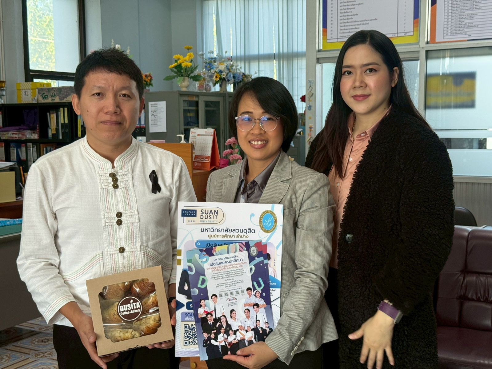 มหาวิทยาลัยสวนดุสิต ศูนย์การศึกษาลำปาง ได้จัดกิจกรรมแนะแนวการศึกษาต่อให้แก่นักเรียนระดับชั้นมัธยมศึกษาตอนปลาย ณ โรงเรียนแม่ทาวิทยาคม จังหวัดลำพูน เพื่อให้ข้อมูลการศึกษาต่อในระดับอุดมศึกษา ประจำปีการศึกษา 2569 คณาจารย์และทีมงานประชาสัมพันธ์ได้ให้ข้อมูลเกี่ยวกับหลักสูตรที่เปิดรับสมัครของมหาวิทยาลัย เช่น สาขาวิชาเทคโนโลยีการประกอบอาหารและการบริการ, สาขาวิชาธุรกิจการบิน และสาขาวิชาการศึกษาปฐมวัย และสาขาวิชาการประถมศึกษา พร้อมแนะนำเส้นทางอาชีพในอนาคต โอกาสในการฝึกประสบการณ์วิชาชีพ และแนวทางการเตรียม Portfolio สำหรับรอบการคัดเลือกต่าง ๆ