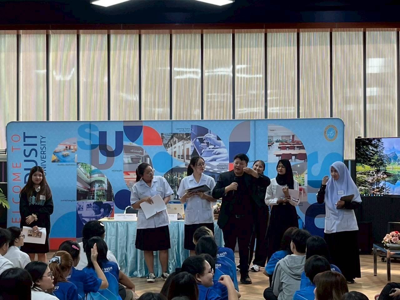 คณะมนุษยศาสตร์และสังคมศาสตร์ สาขาจิตวิทยาอุตสาหกรรมและองค์การ จัดกิจกรรมสัมมนา ในหัวข้อ “Speakless Heartful (สัมผัสใจ ไร้เสียง)” ซึ่งเป็นส่วนหนึ่งของรายวิชา การสัมมนาและศึกษาดูงานจิตวิทยาอุตสาหกรมและองค์การ รหัสวิชา 2519301 ตอนเรียน A1 อาจารย์ผู้สอน คือ ผศ.พัศรินท์ ก่อเลิศวรพงศ์ เป็นกิจกรรมที่ช่วยฝึกทักษะในการจัดสัมมนาของนักศึกษา อีกทั้งเพื่อเป็นแนวทางการเตรียมความพร้อมให้คำปรึกษาก่อนเข้าสู่โลกของการฝึกงาน ซึ่งงานสัมมนาครั้งนี้จัดขึ้นในวันอังคารที่ 2 ธันวาคม 2568 ตั้งแต่ 13:30 – 15.00 น. แบบออนไซต์ ณ ห้อง Activity Space อาคาร 1 ชั้น 2 มหาวิทยาลัยสวนดุสิต โอกาสนี้รับเกียรติจาก ผศ.พัศรินท์ ก่อเลิศวรพงศ์ เป็นประธานกล่าวเปิด – ปิดงานสัมมนา อีกทั้งท่านวิทยากรผู้มีเกียรติทั้ง 2 ท่าน ได้แก่ คุณกาญจนา ผิวงาม และ คุณอภิชญา สกุลหอม จากคณะครุศาสตร์ และผู้ช่วยวิทยากรทั้ง 13 ท่าน