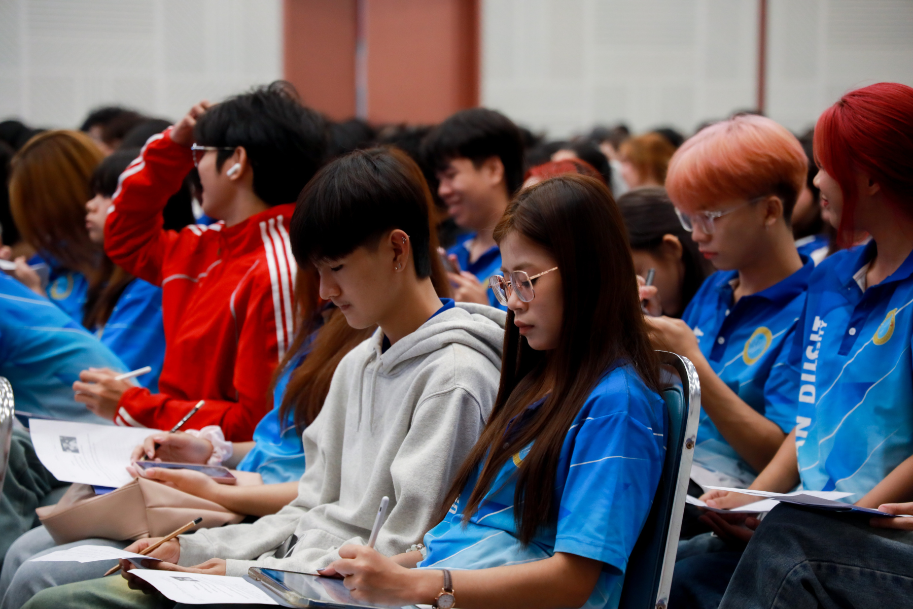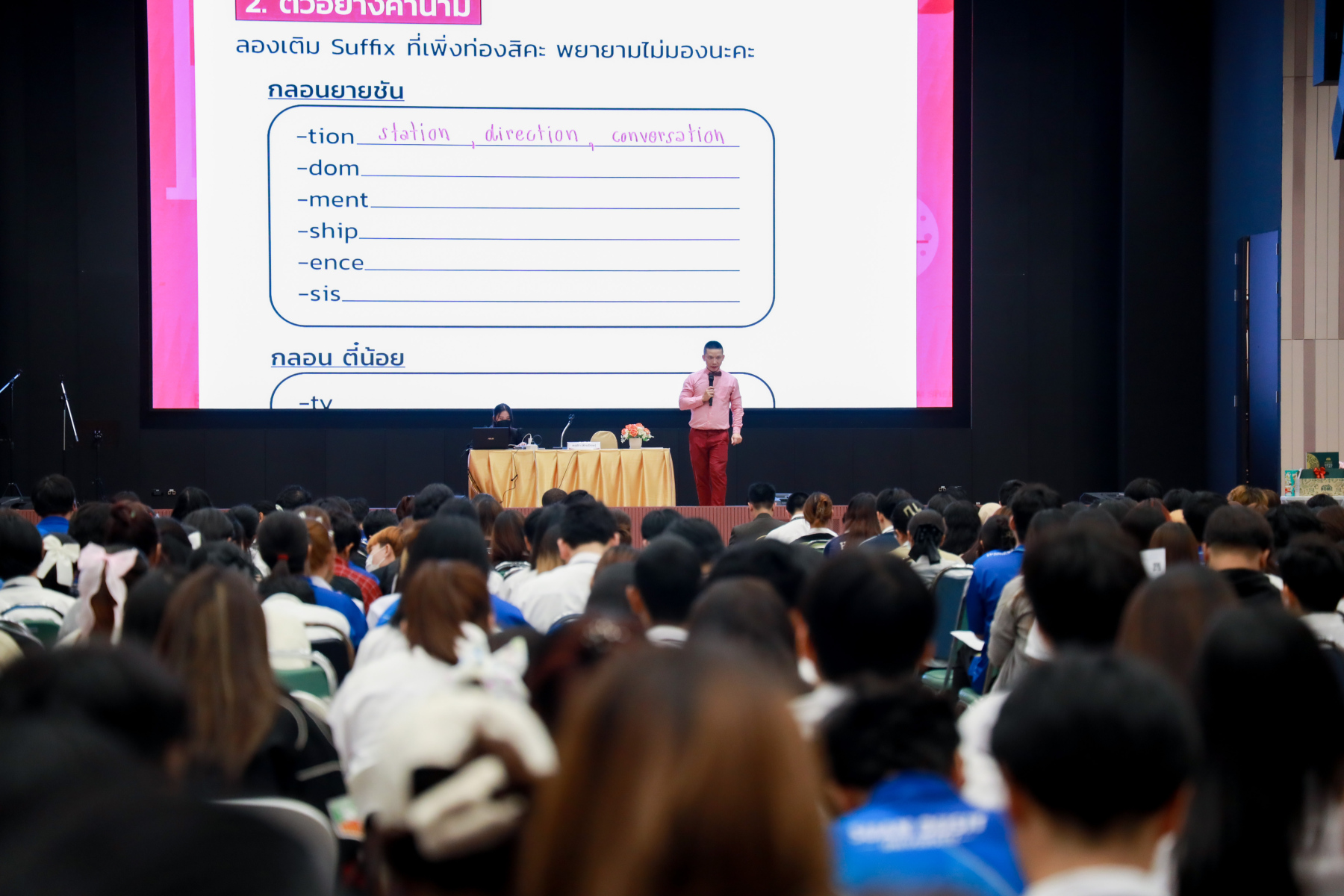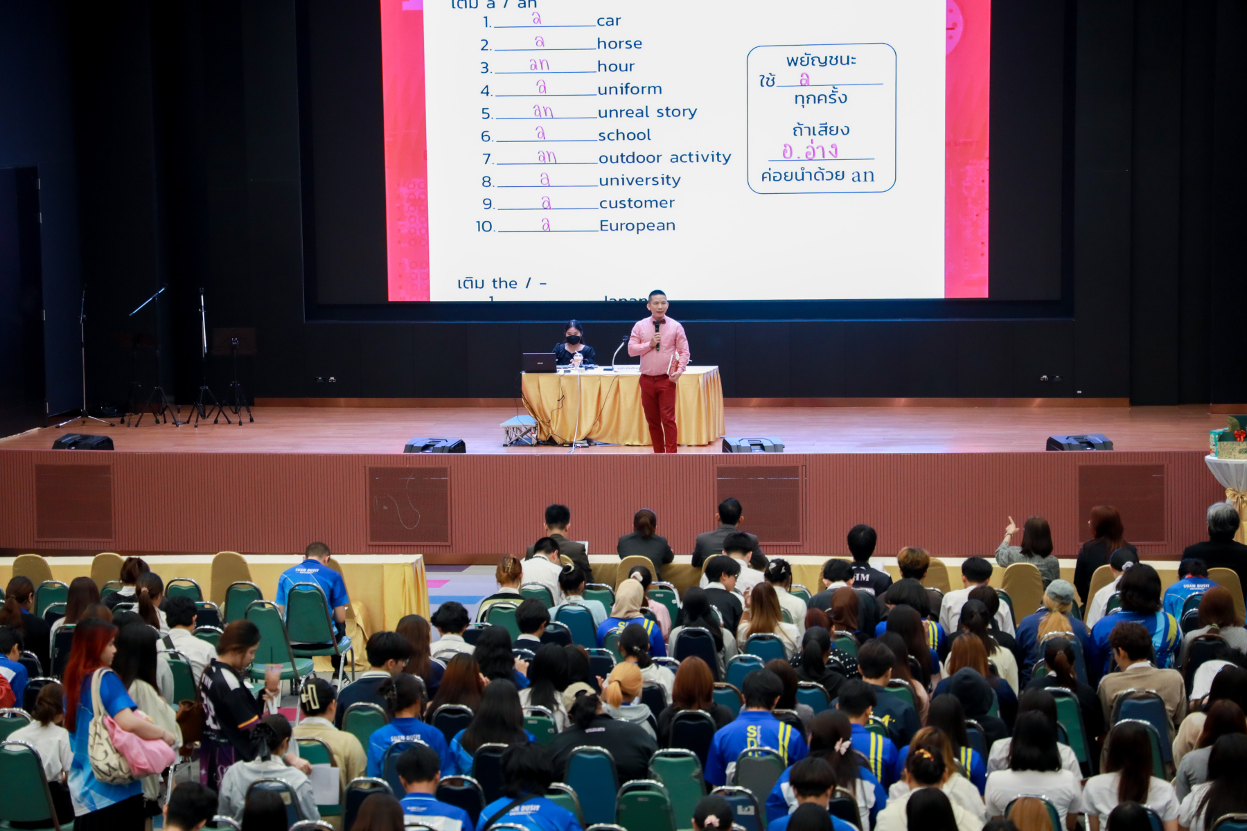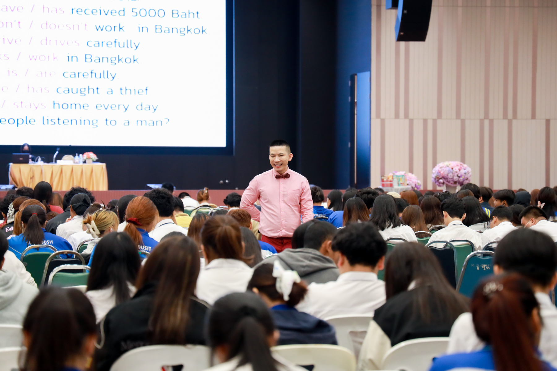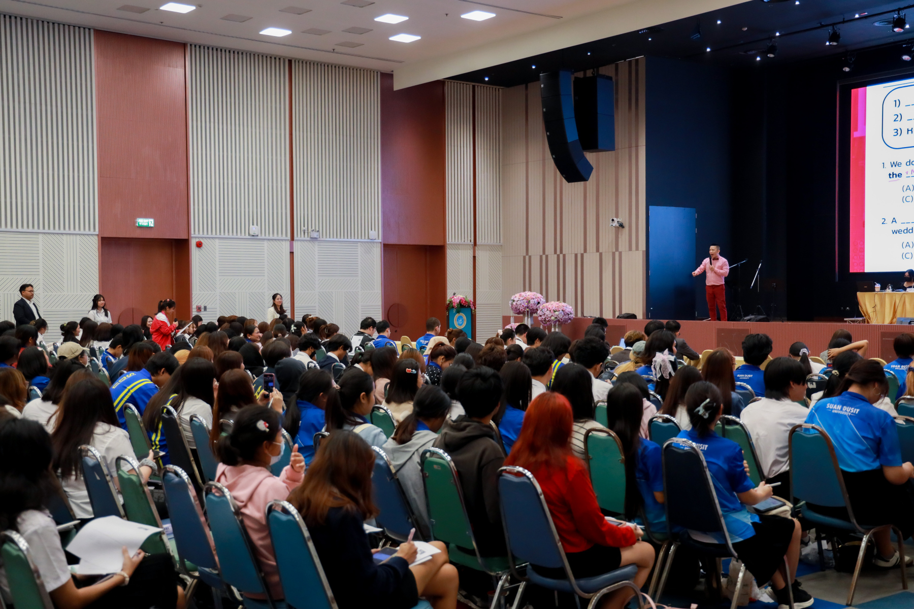 ผู้ช่วยศาสตราจารย์ ดร.ขจีนุช เชาวนปรีชา ผู้อำนวยการสถาบันภาษา ศิลปะและวัฒนธรรม กล่าวเปิดกิจกรรม English Boost with Kru Dew โดยได้รับเกียรติจาก คุณชัยธวัธ มโนชัยเจริญกุล (ครูดิว) ติวเตอร์มืออาชีพทางด้านการสอนภาษาอังกฤษ จาก Opendurian.com เป็นวิทยากรติวสอบ TOEIC ซึ่งมีนักศึกษา อาจารย์ และบุคลากร เข้าร่วมกิจกรรมฯ ในวันที่ 3 ธันวาคม 2568 ณ หอประชุมรักตะกนิษฐ ชั้น2 มหาวิทยาลัยสวนดุสิต