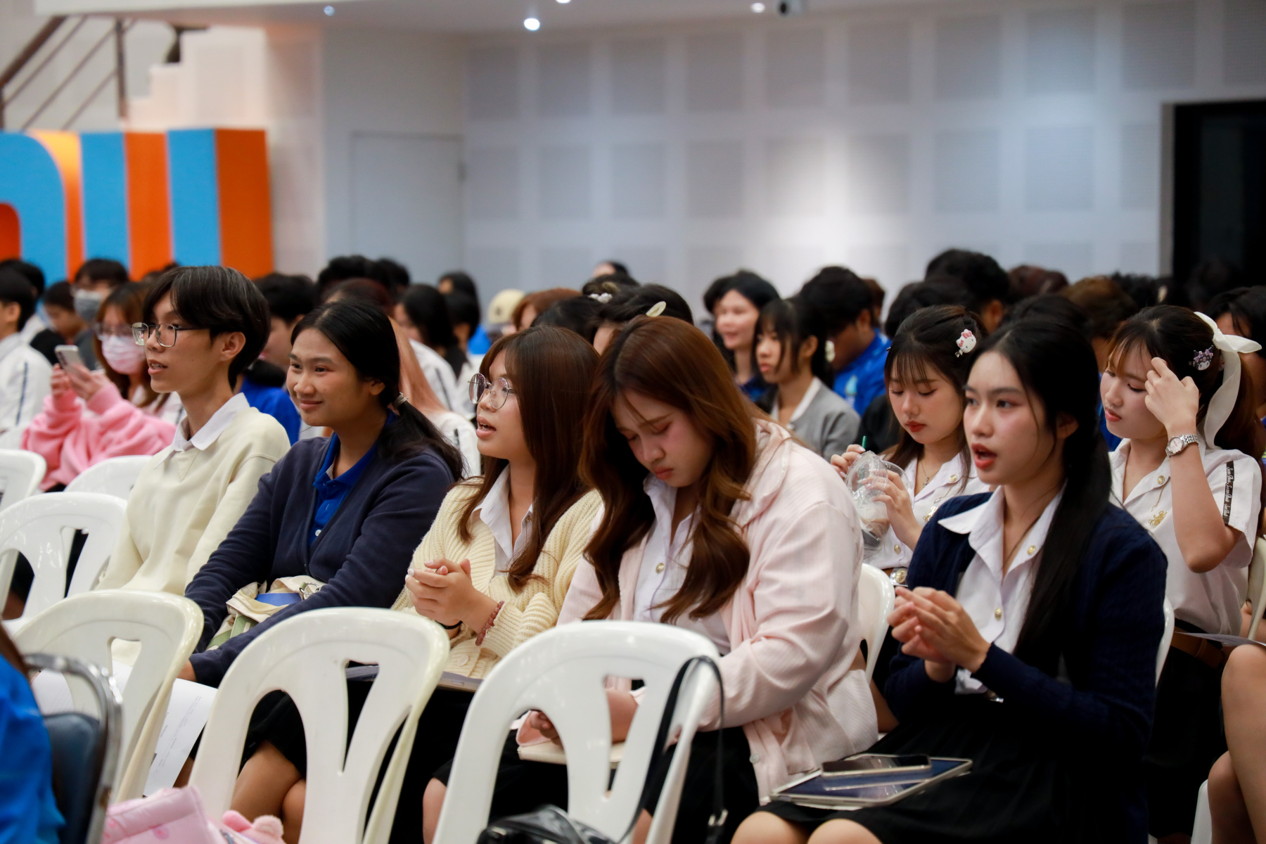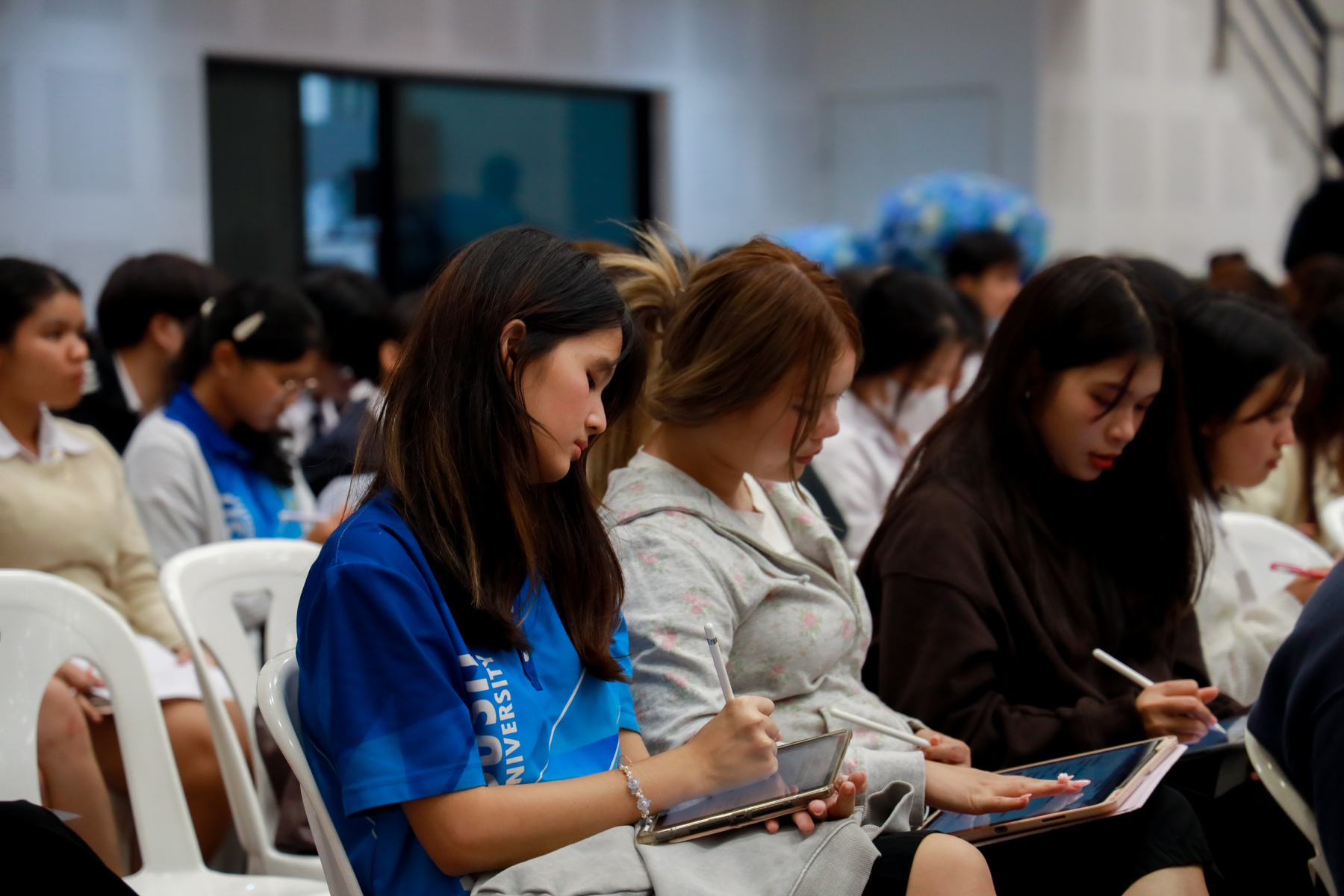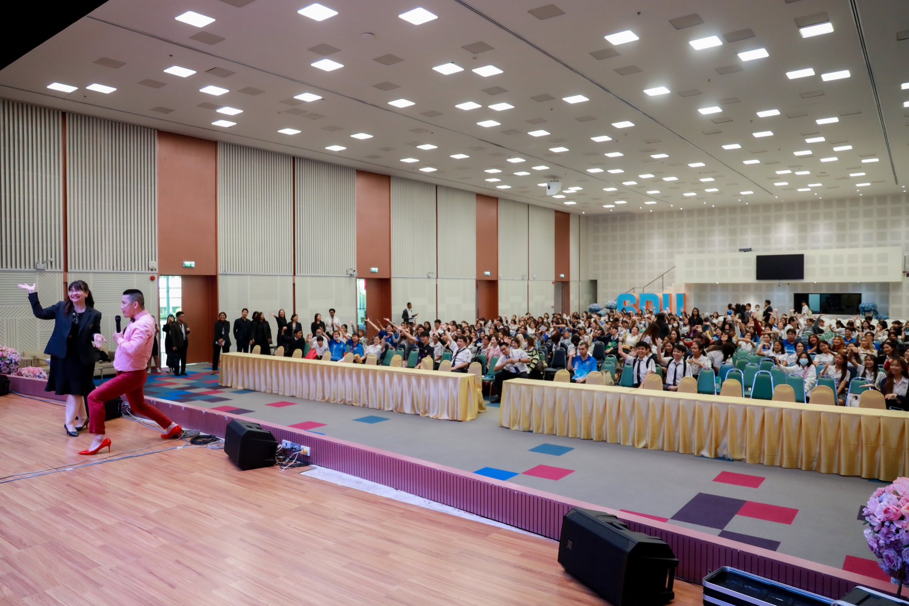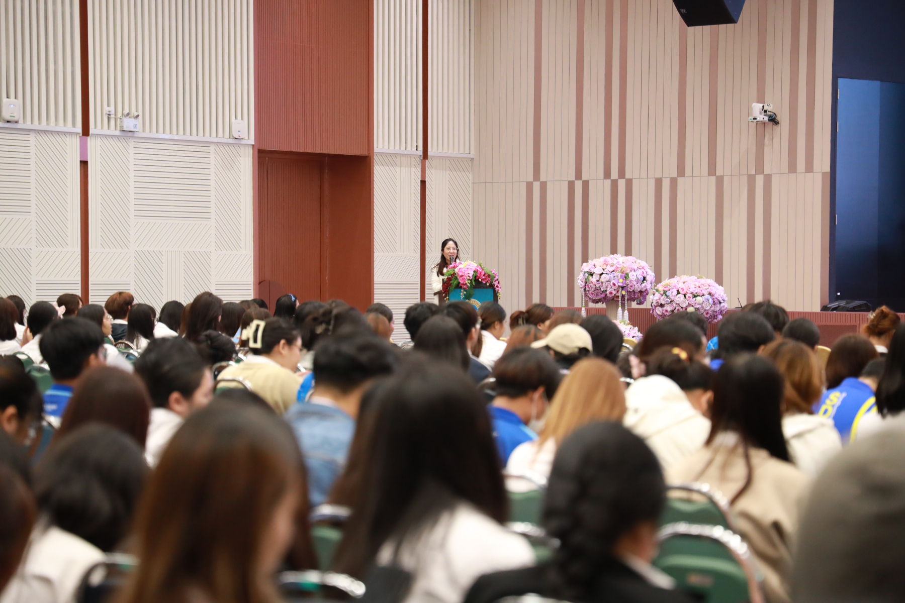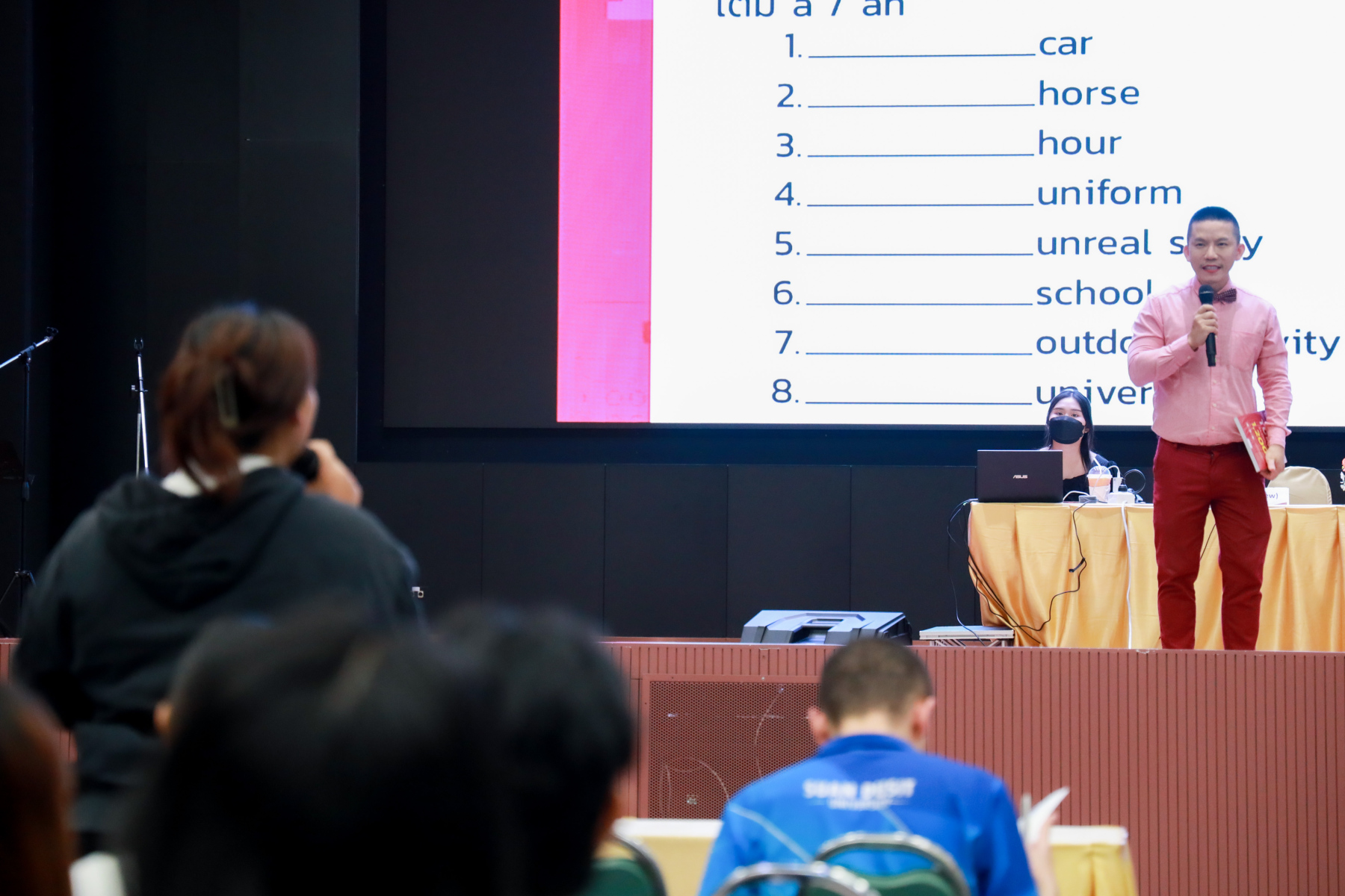 ผู้ช่วยศาสตราจารย์ ดร.ขจีนุช เชาวนปรีชา ผู้อำนวยการสถาบันภาษา ศิลปะและวัฒนธรรม กล่าวเปิดกิจกรรม English Boost with Kru Dew โดยได้รับเกียรติจาก คุณชัยธวัธ มโนชัยเจริญกุล (ครูดิว) ติวเตอร์มืออาชีพทางด้านการสอนภาษาอังกฤษ จาก Opendurian.com เป็นวิทยากรติวสอบ TOEIC ซึ่งมีนักศึกษา อาจารย์ และบุคลากร เข้าร่วมกิจกรรมฯ ในวันที่ 3 ธันวาคม 2568 ณ หอประชุมรักตะกนิษฐ ชั้น2 มหาวิทยาลัยสวนดุสิต