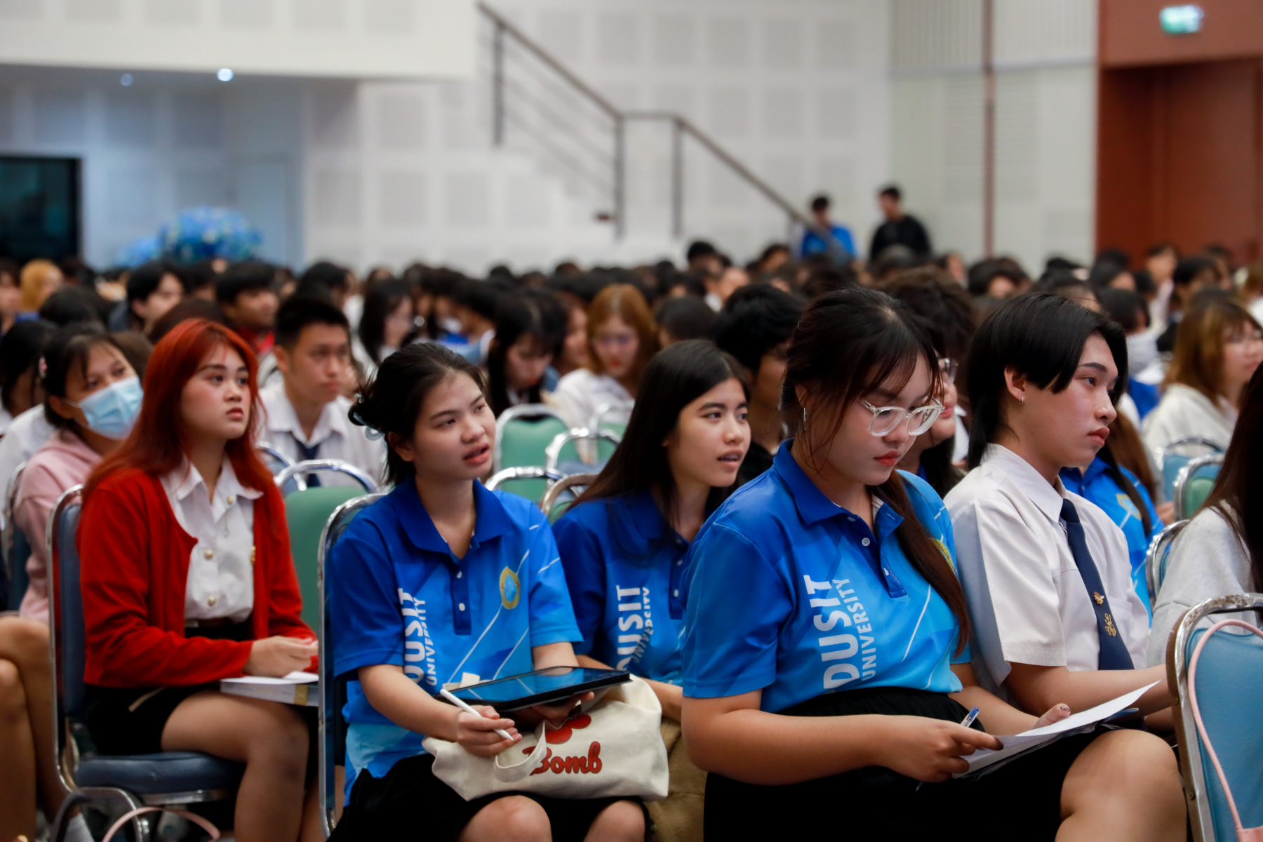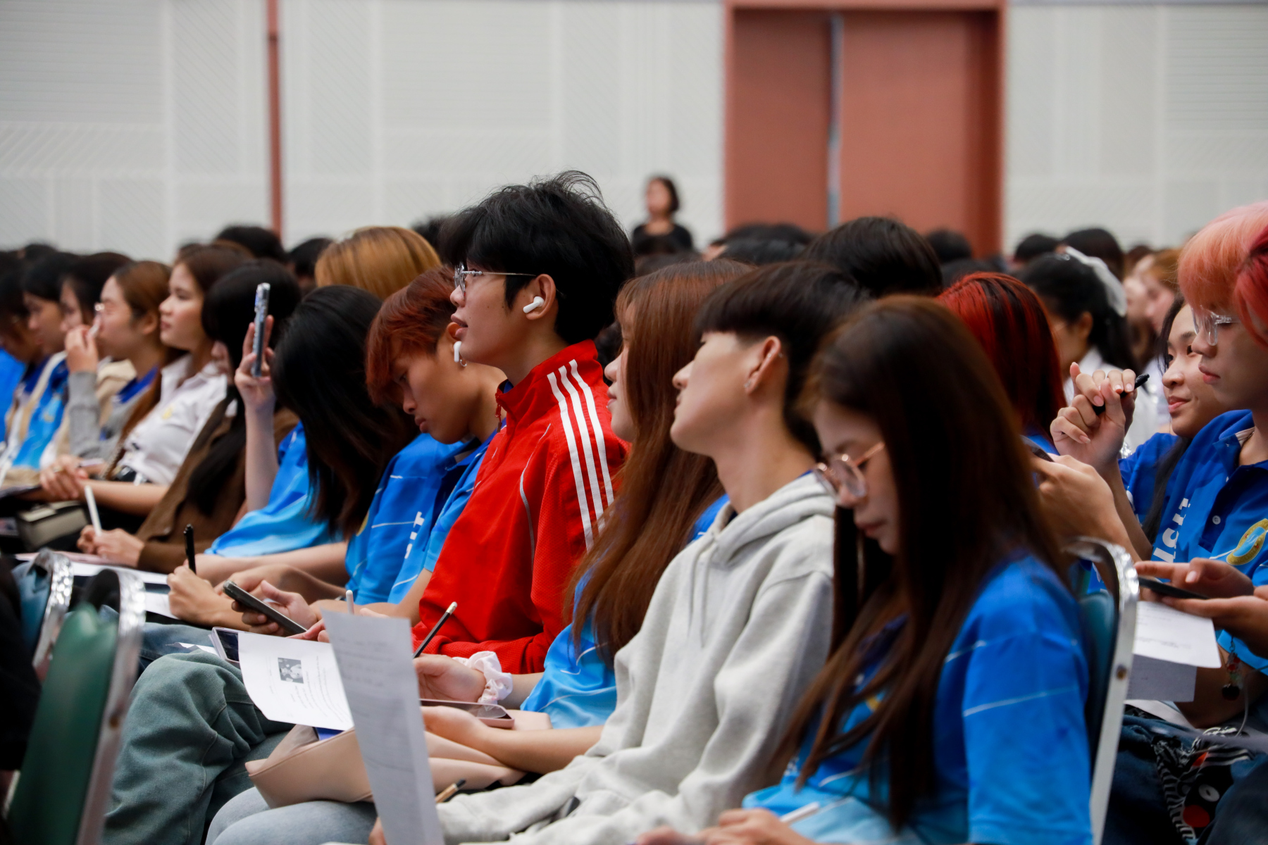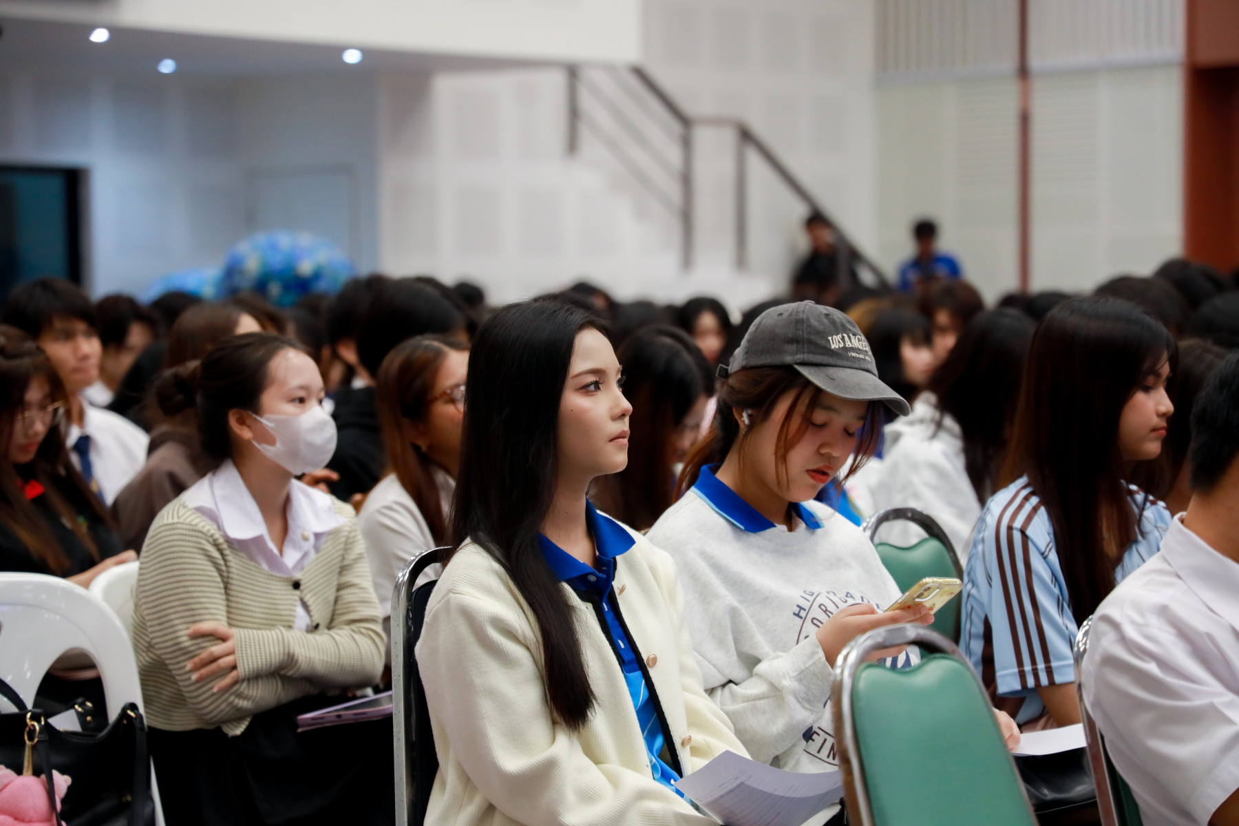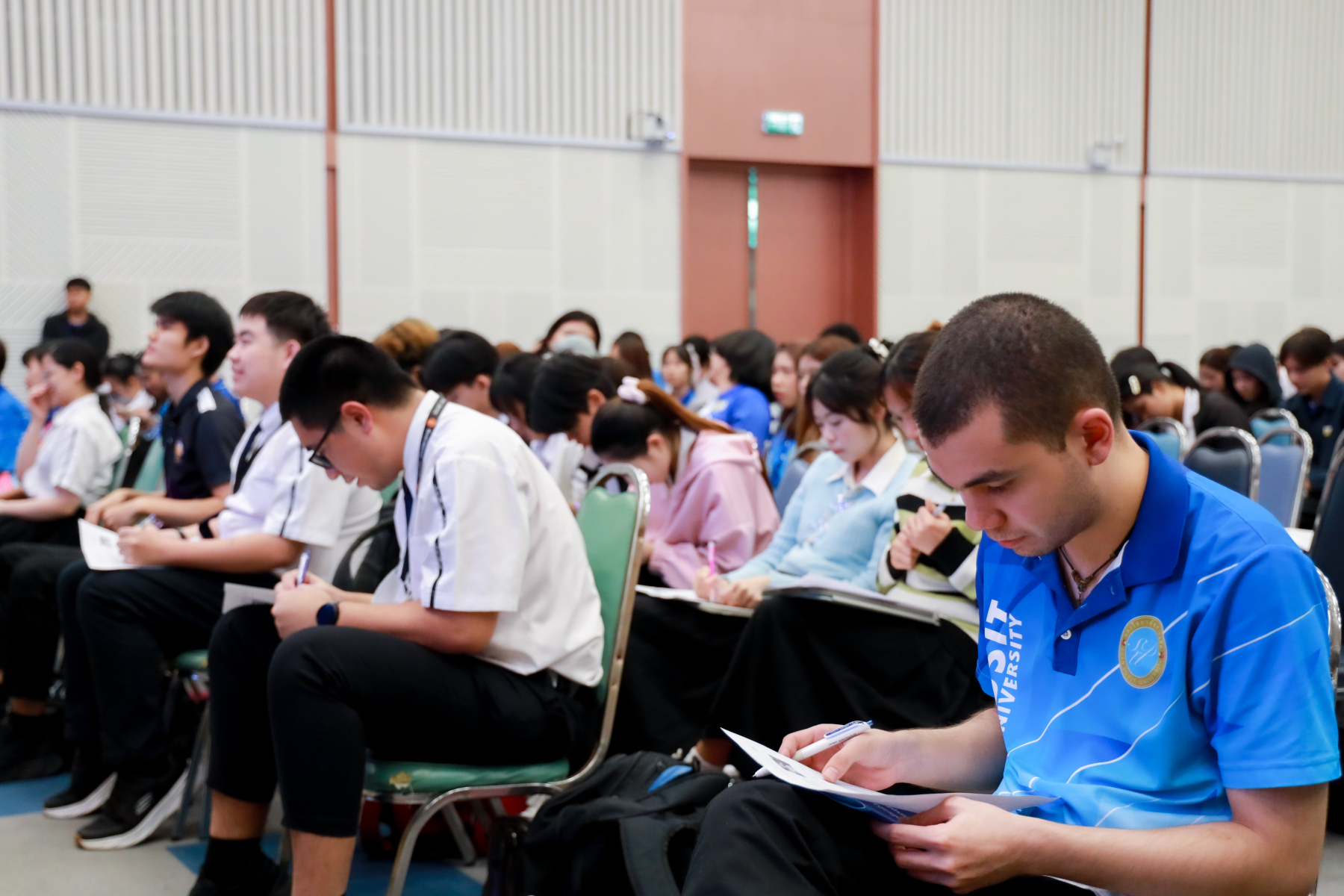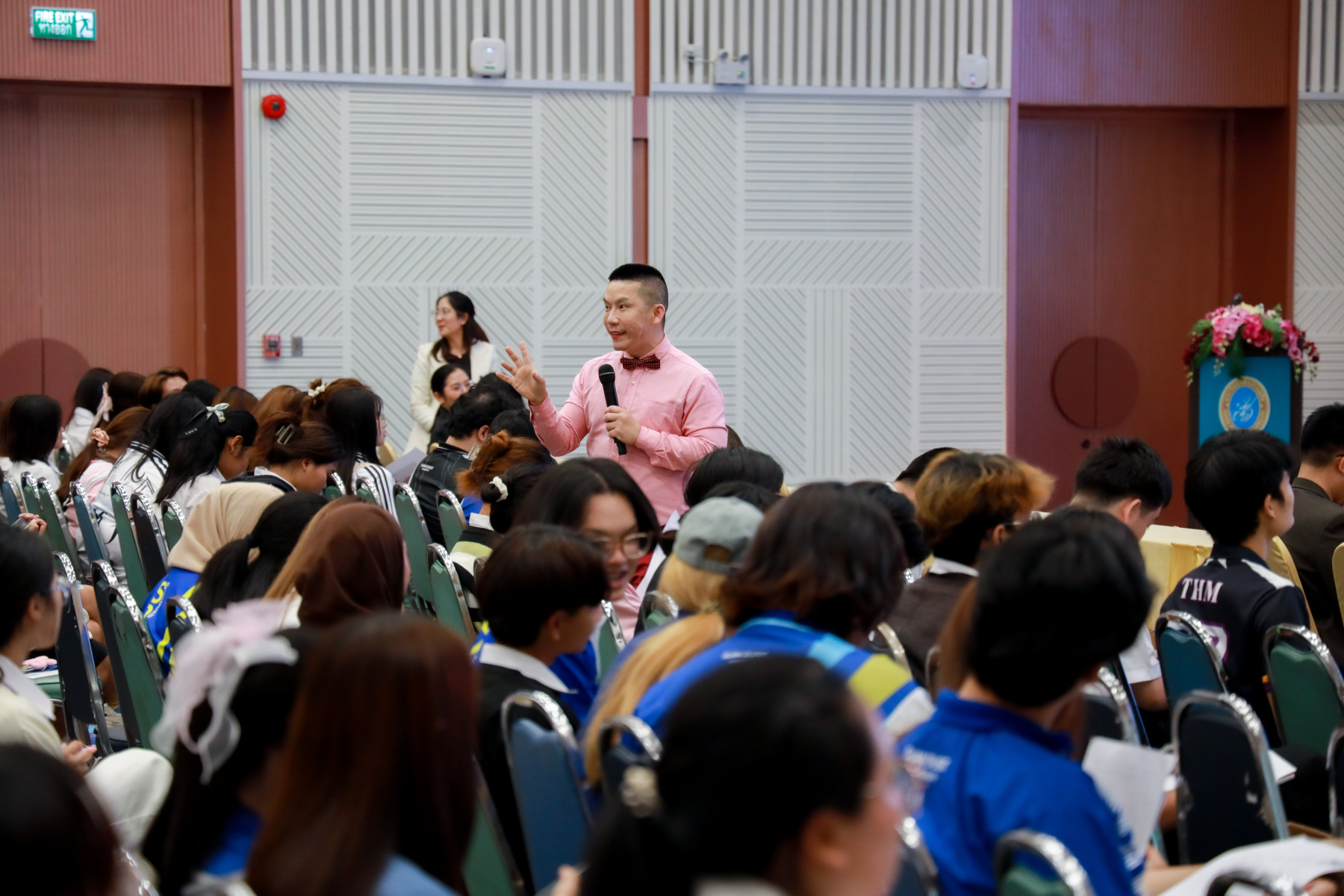 ผู้ช่วยศาสตราจารย์ ดร.ขจีนุช เชาวนปรีชา ผู้อำนวยการสถาบันภาษา ศิลปะและวัฒนธรรม กล่าวเปิดกิจกรรม English Boost with Kru Dew โดยได้รับเกียรติจาก คุณชัยธวัธ มโนชัยเจริญกุล (ครูดิว) ติวเตอร์มืออาชีพทางด้านการสอนภาษาอังกฤษ จาก Opendurian.com เป็นวิทยากรติวสอบ TOEIC ซึ่งมีนักศึกษา อาจารย์ และบุคลากร เข้าร่วมกิจกรรมฯ ในวันที่ 3 ธันวาคม 2568 ณ หอประชุมรักตะกนิษฐ ชั้น2 มหาวิทยาลัยสวนดุสิต