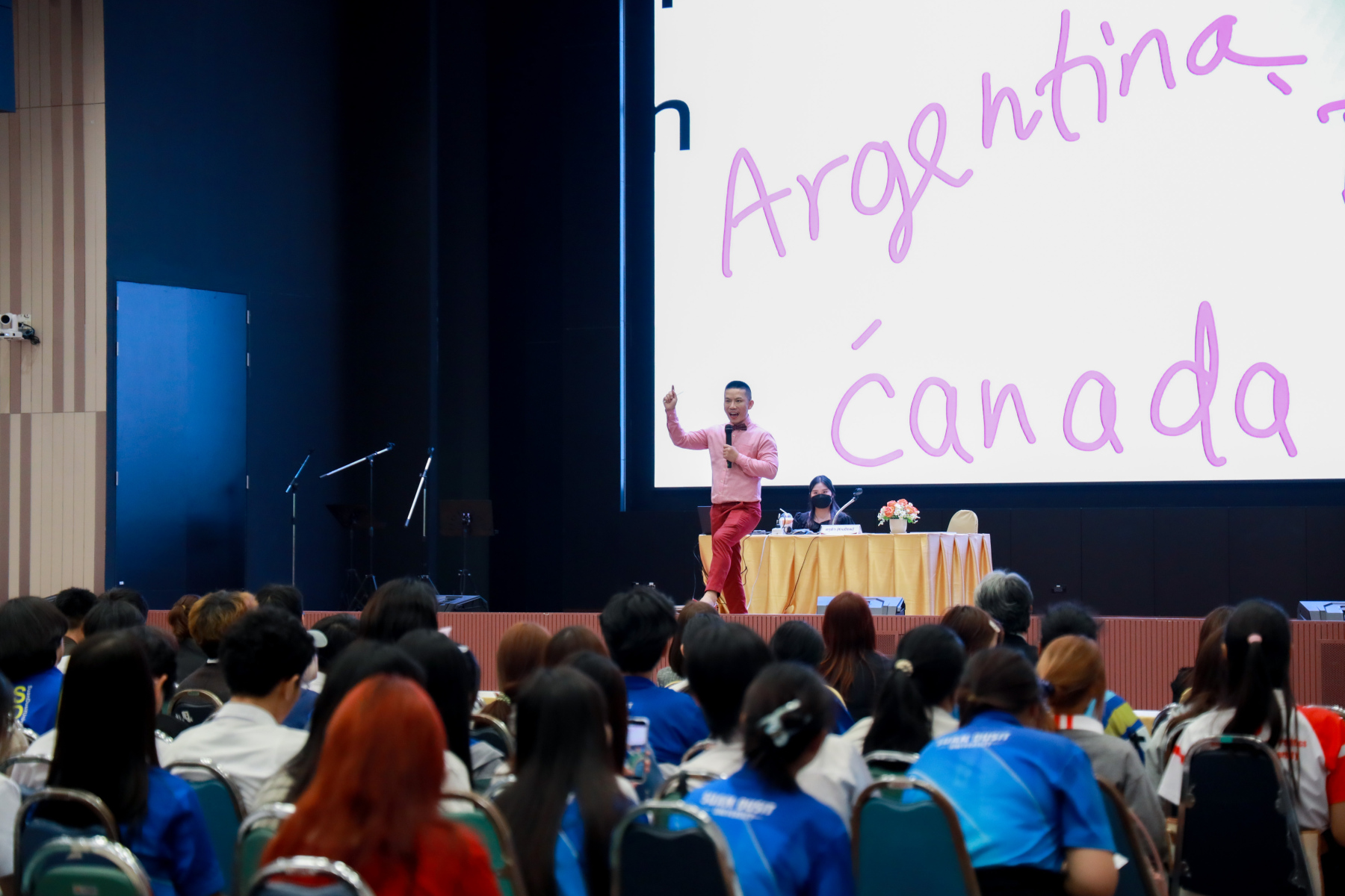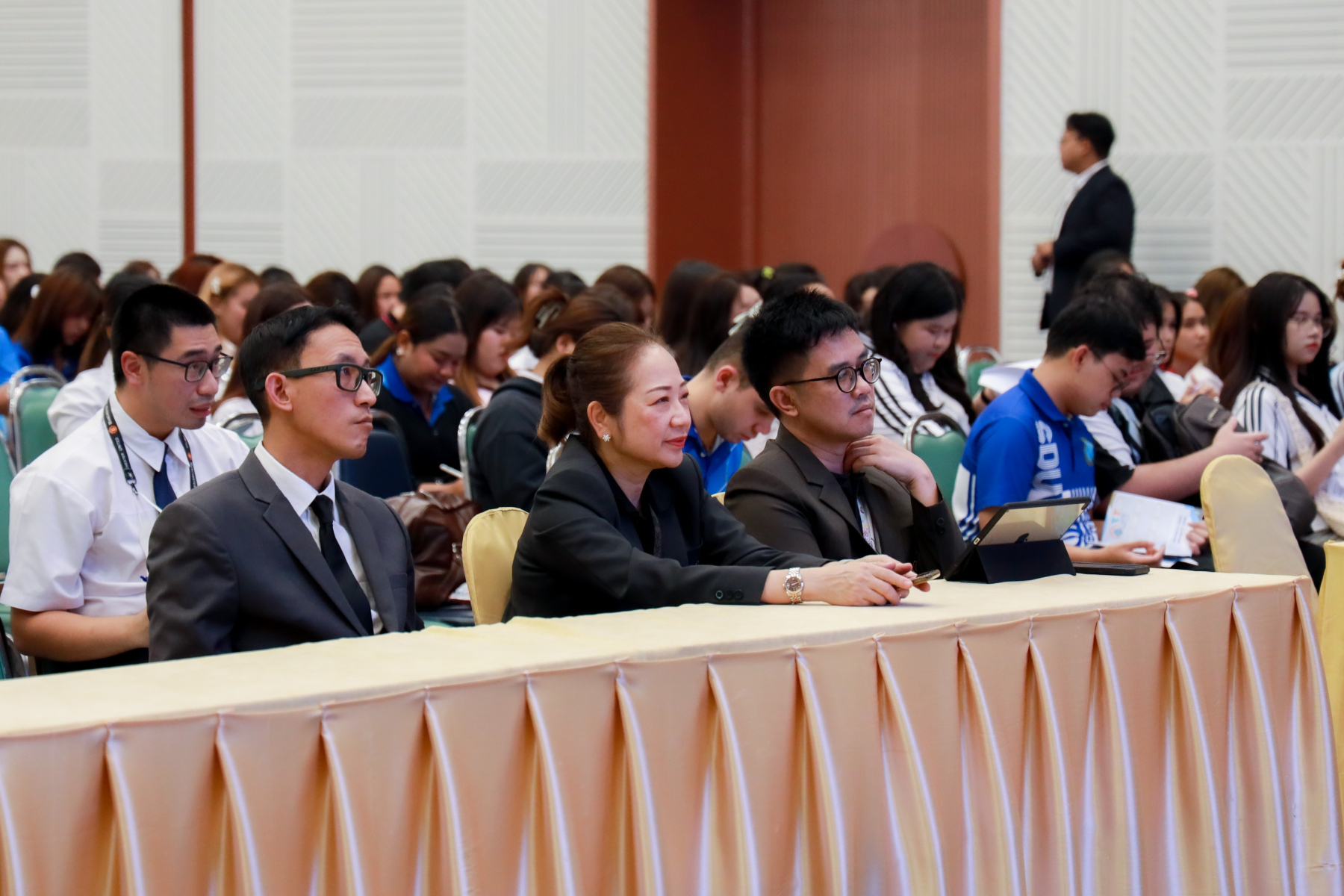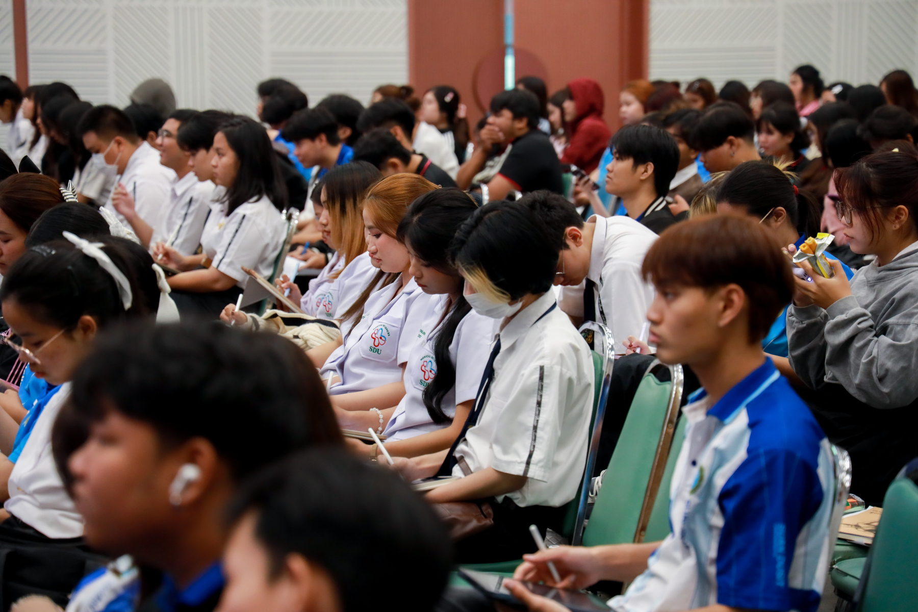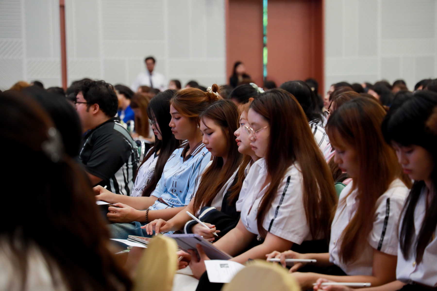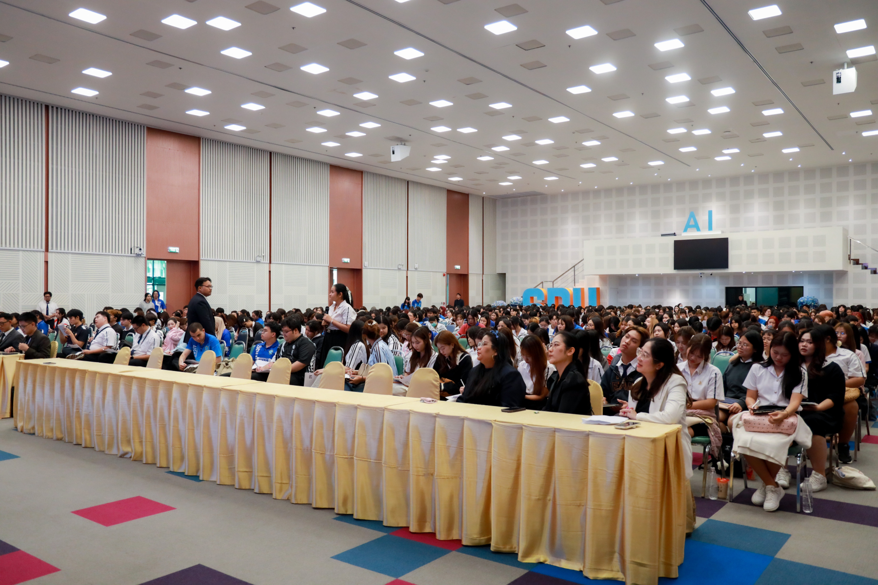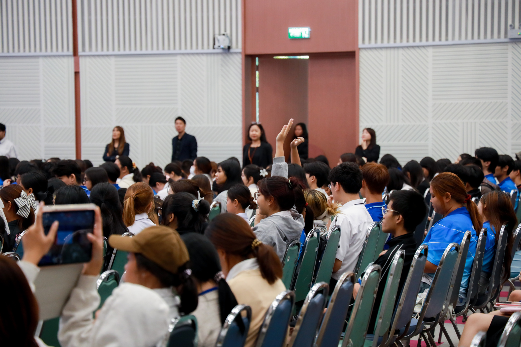ผู้ช่วยศาสตราจารย์ ดร.ขจีนุช เชาวนปรีชา ผู้อำนวยการสถาบันภาษา ศิลปะและวัฒนธรรม กล่าวเปิดกิจกรรม English Boost with Kru Dew โดยได้รับเกียรติจาก คุณชัยธวัธ มโนชัยเจริญกุล (ครูดิว) ติวเตอร์มืออาชีพทางด้านการสอนภาษาอังกฤษ จาก Opendurian.com เป็นวิทยากรติวสอบ TOEIC ซึ่งมีนักศึกษา อาจารย์ และบุคลากร เข้าร่วมกิจกรรมฯ ในวันที่ 3 ธันวาคม 2568 ณ หอประชุมรักตะกนิษฐ ชั้น2 มหาวิทยาลัยสวนดุสิต