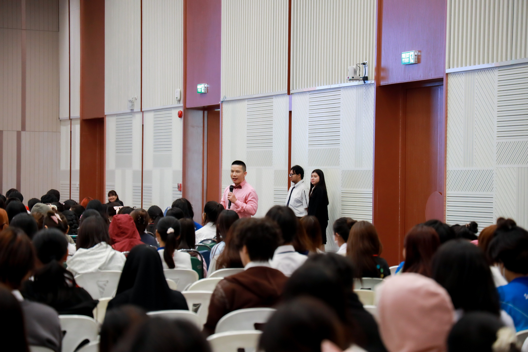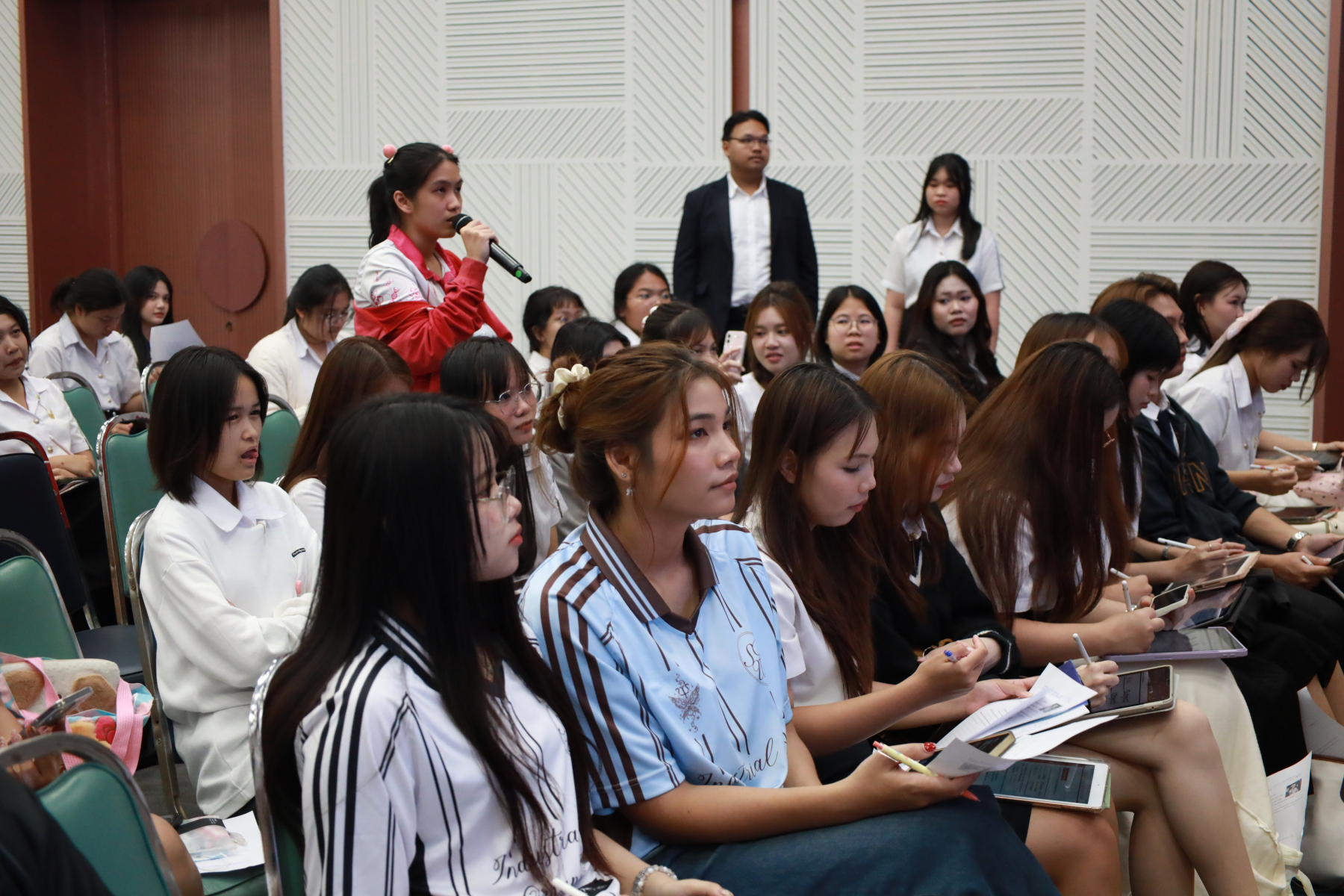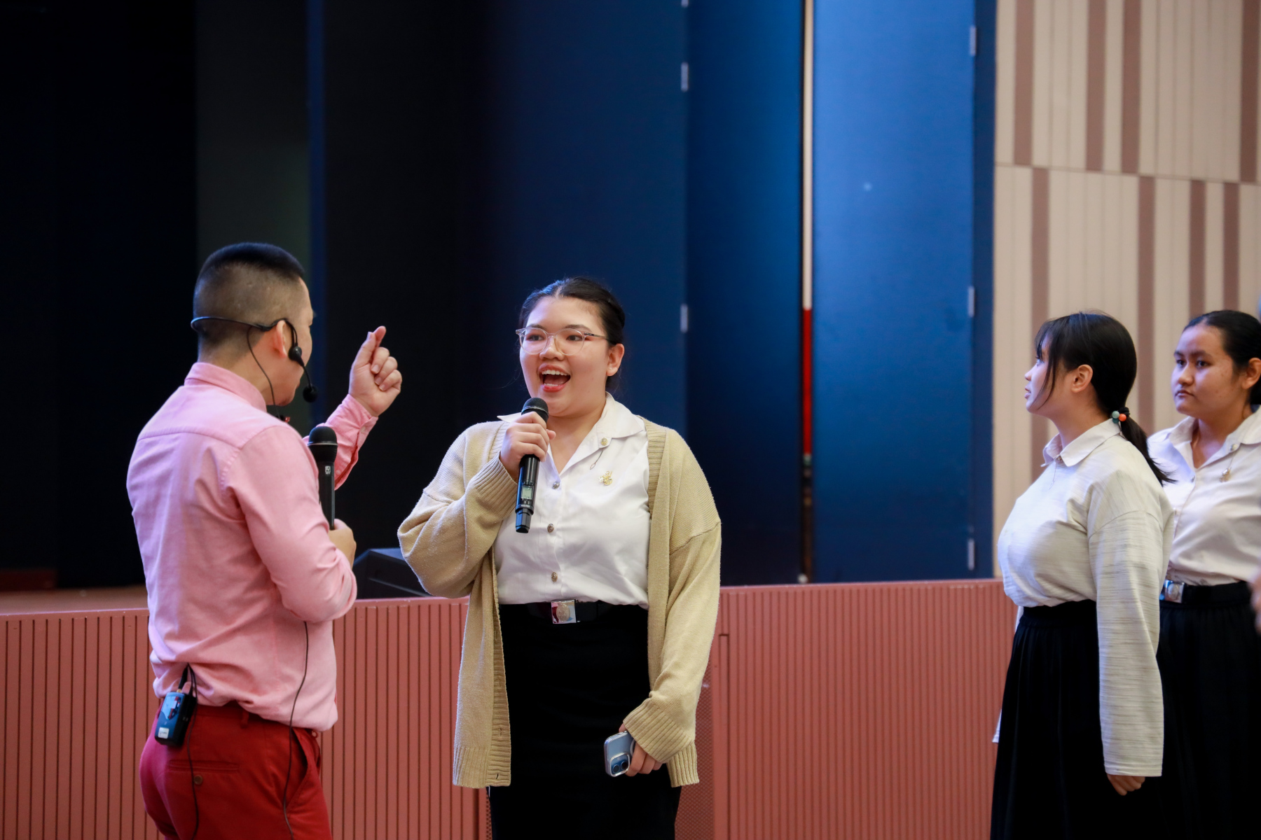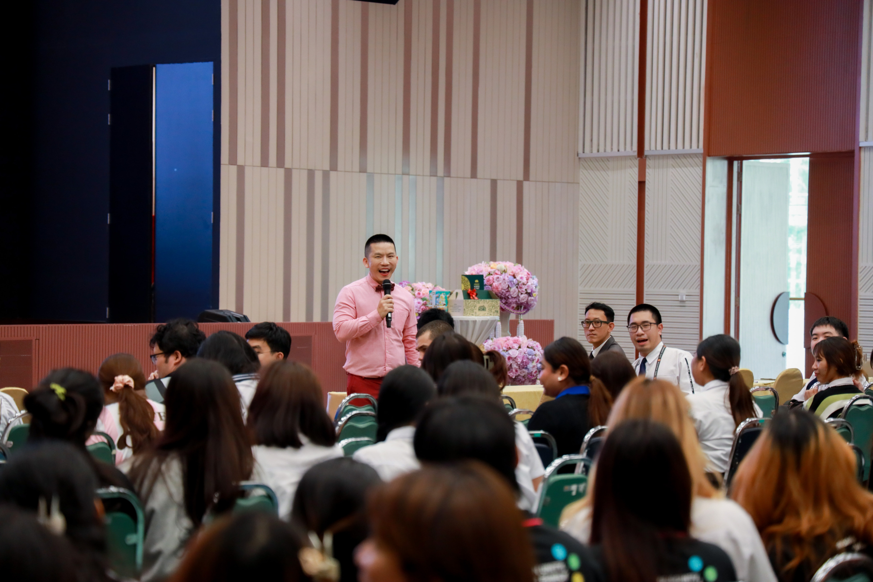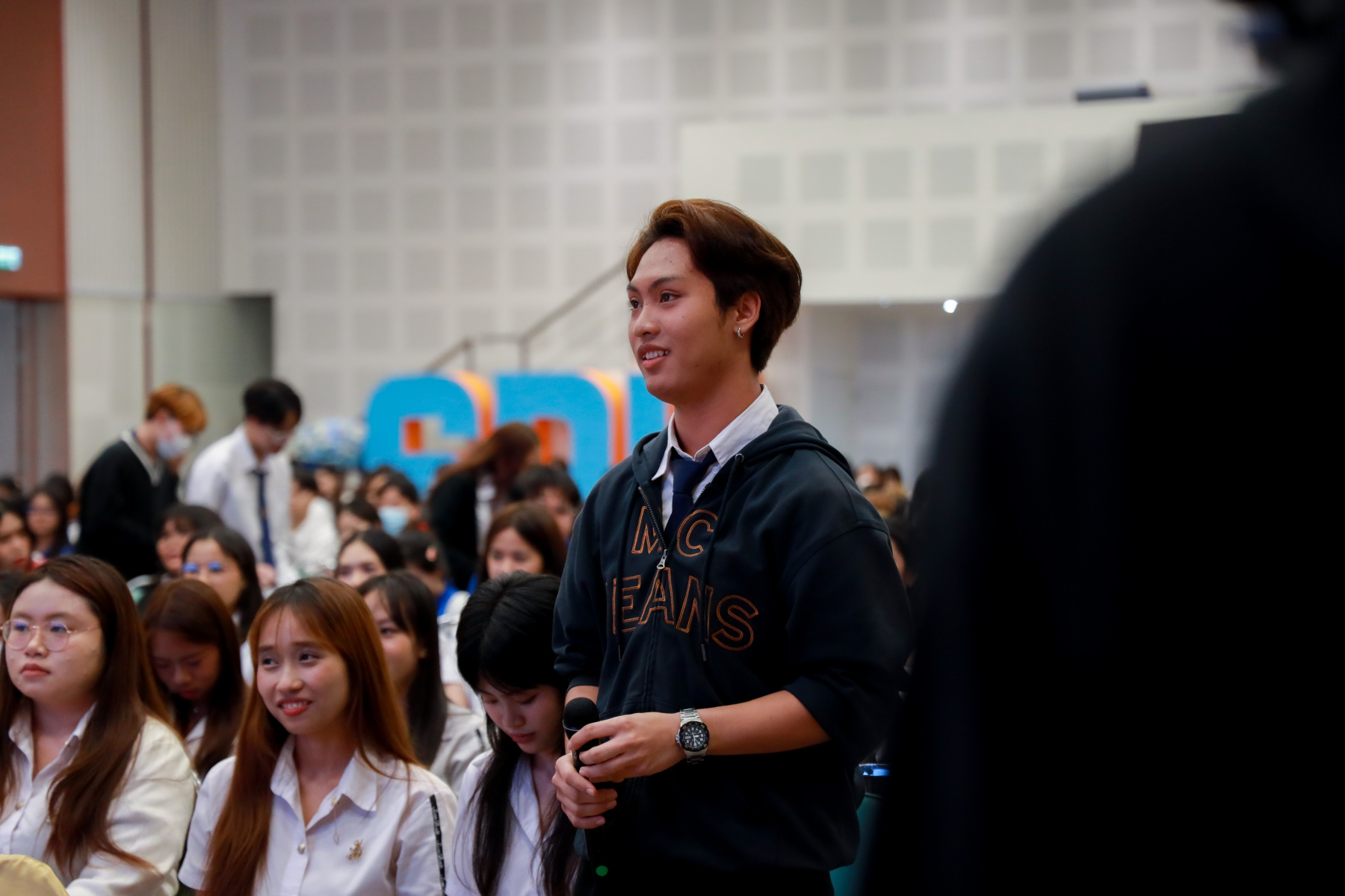 ผู้ช่วยศาสตราจารย์ ดร.ขจีนุช เชาวนปรีชา ผู้อำนวยการสถาบันภาษา ศิลปะและวัฒนธรรม กล่าวเปิดกิจกรรม English Boost with Kru Dew โดยได้รับเกียรติจาก คุณชัยธวัธ มโนชัยเจริญกุล (ครูดิว) ติวเตอร์มืออาชีพทางด้านการสอนภาษาอังกฤษ จาก Opendurian.com เป็นวิทยากรติวสอบ TOEIC ซึ่งมีนักศึกษา อาจารย์ และบุคลากร เข้าร่วมกิจกรรมฯ ในวันที่ 3 ธันวาคม 2568 ณ หอประชุมรักตะกนิษฐ ชั้น2 มหาวิทยาลัยสวนดุสิต