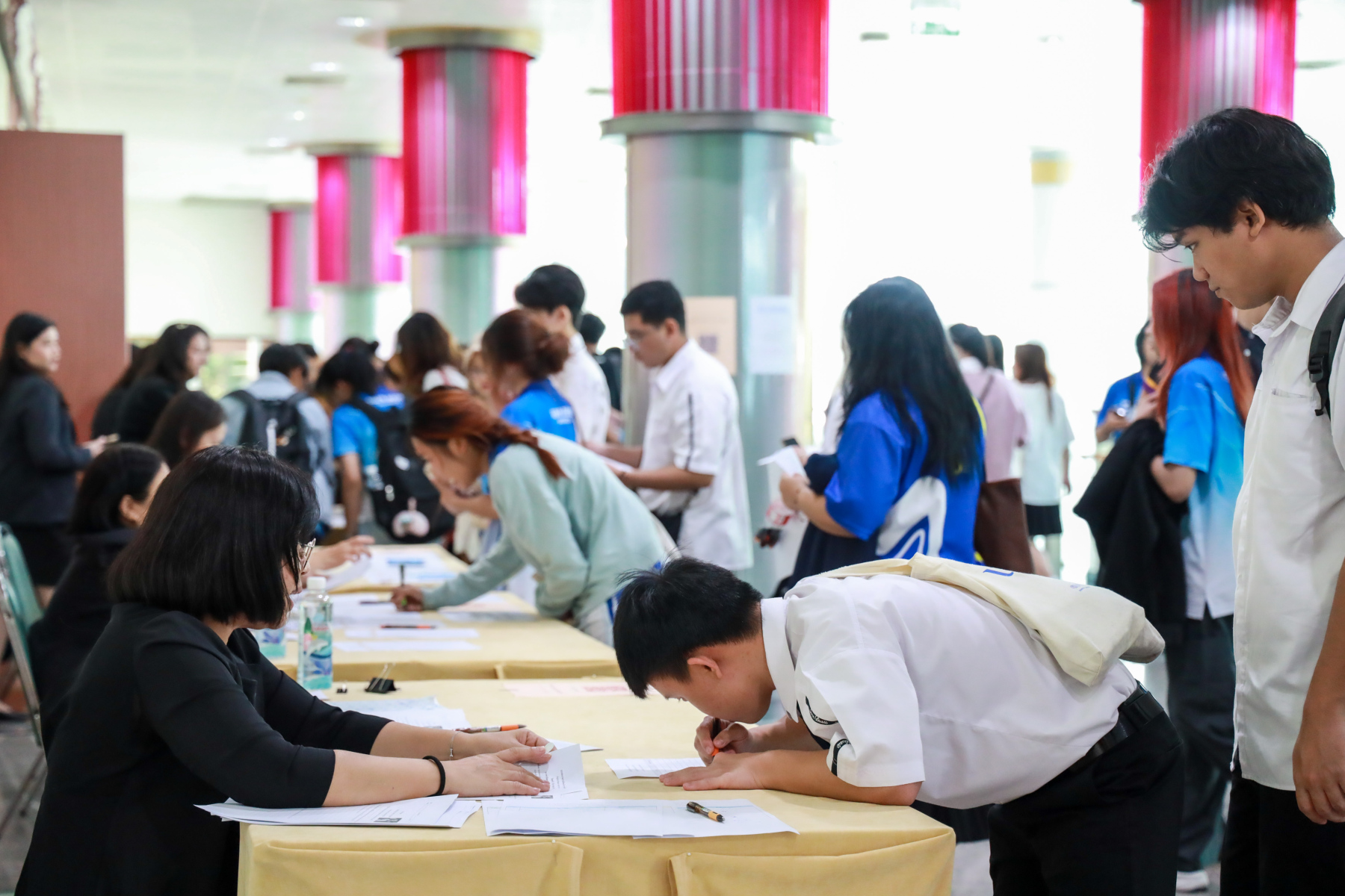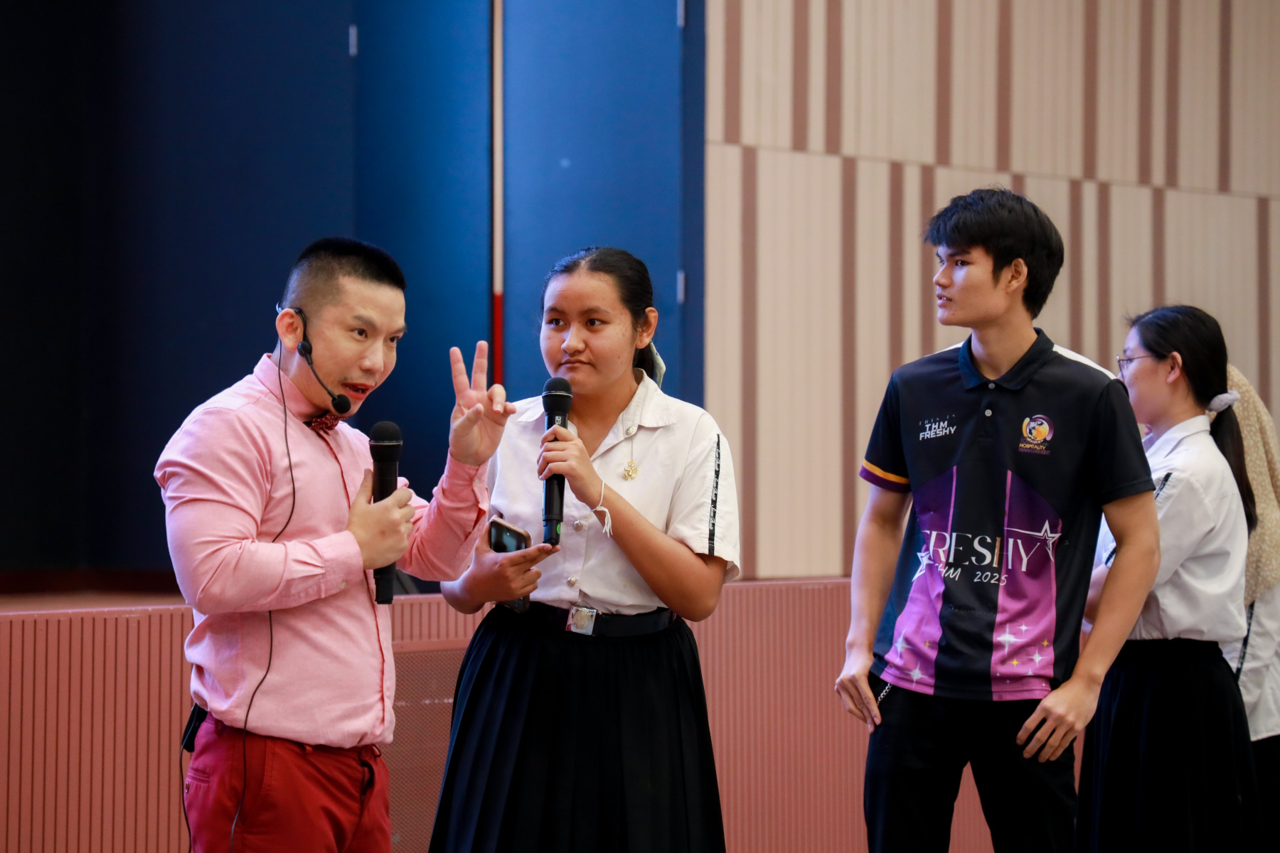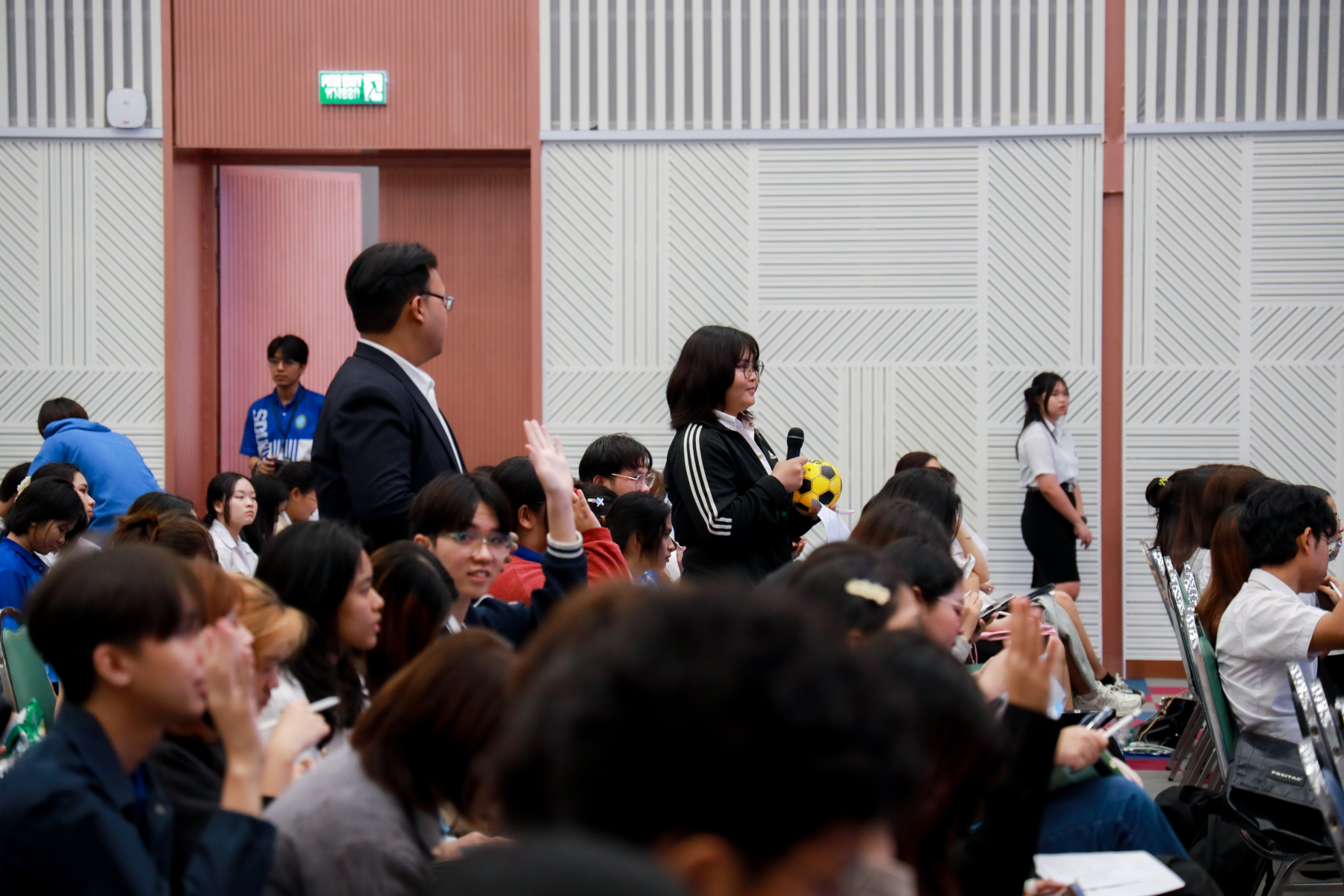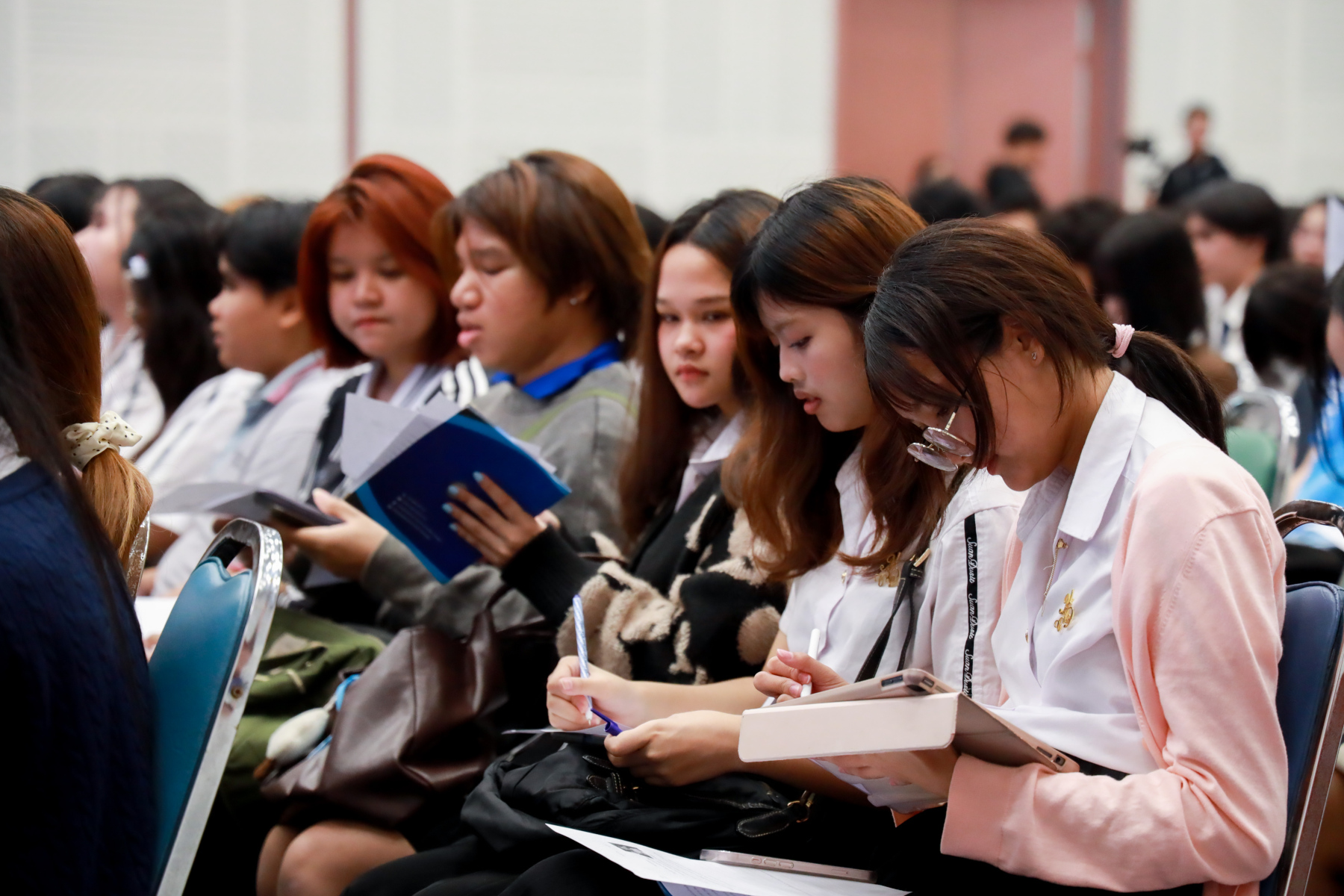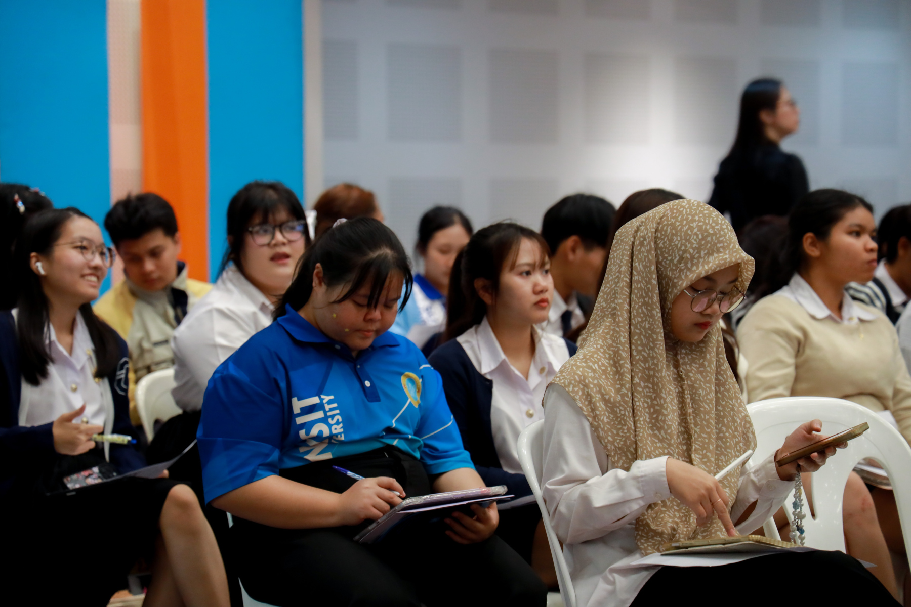 ผู้ช่วยศาสตราจารย์ ดร.ขจีนุช เชาวนปรีชา ผู้อำนวยการสถาบันภาษา ศิลปะและวัฒนธรรม กล่าวเปิดกิจกรรม English Boost with Kru Dew โดยได้รับเกียรติจาก คุณชัยธวัธ มโนชัยเจริญกุล (ครูดิว) ติวเตอร์มืออาชีพทางด้านการสอนภาษาอังกฤษ จาก Opendurian.com เป็นวิทยากรติวสอบ TOEIC ซึ่งมีนักศึกษา อาจารย์ และบุคลากร เข้าร่วมกิจกรรมฯ ในวันที่ 3 ธันวาคม 2568 ณ หอประชุมรักตะกนิษฐ ชั้น2 มหาวิทยาลัยสวนดุสิต