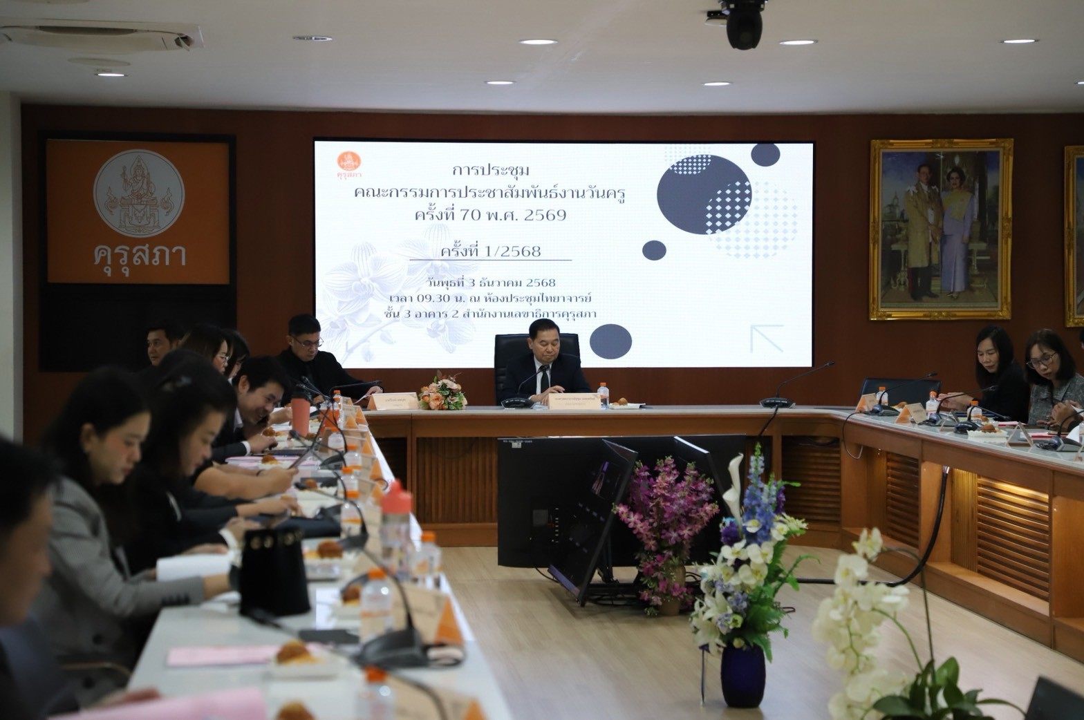 สำนักงานเลขาธิการคุรุสภา จัดประชุมคณะกรรมการประชาสัมพันธ์งานวันครู ครั้งที่ 70 พ.ศ.2569 “พระผู้ทรงเป็นแม่และครูแห่งแผ่นดิน” โดยมี รศ.ดร.สุขุม เฉลยทรัพย์ เป็นประธานการประชุม พร้อมด้วย ผศ.ดร.วีณัฐ สกุลหอม คณบดีคณะครุศาสตร์ มหาวิทยาลัยสวนดุสิต และคณะกรรมการและผู้เกี่ยวข้องเข้าร่วมการประชุม เมื่อวันพุธที่ 3 ธันวาคม 2568 ณ ห้องประชุมไทยาจารย์ ชั้น 3 อาคาร 2 สำนักงานเลขาธิการคุรุสภา และผ่านระบบ ZOOM Cloud Meetings