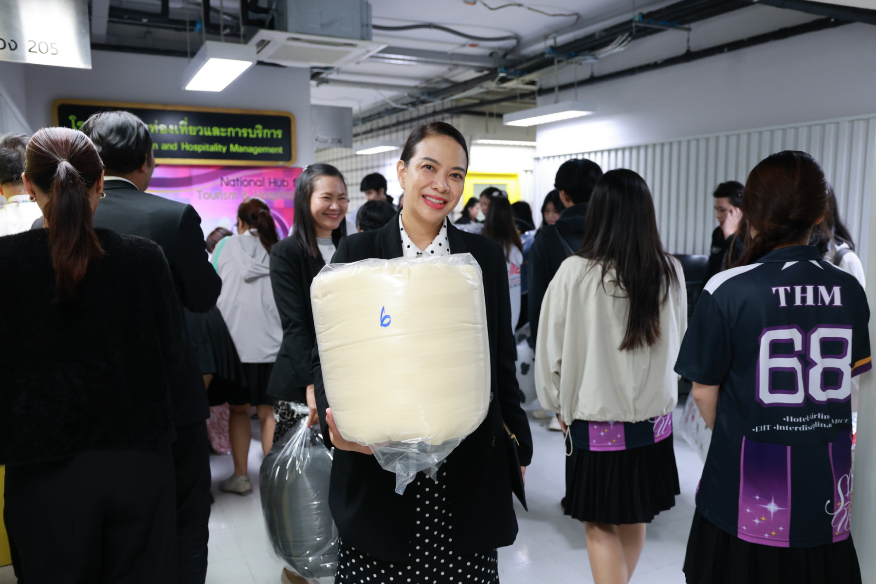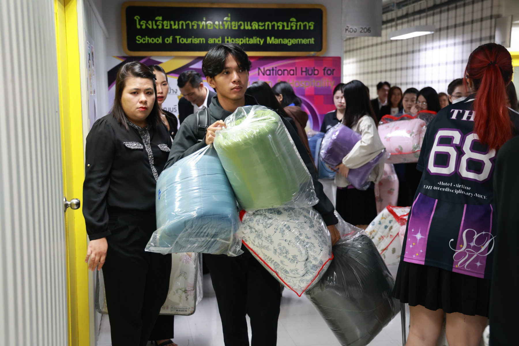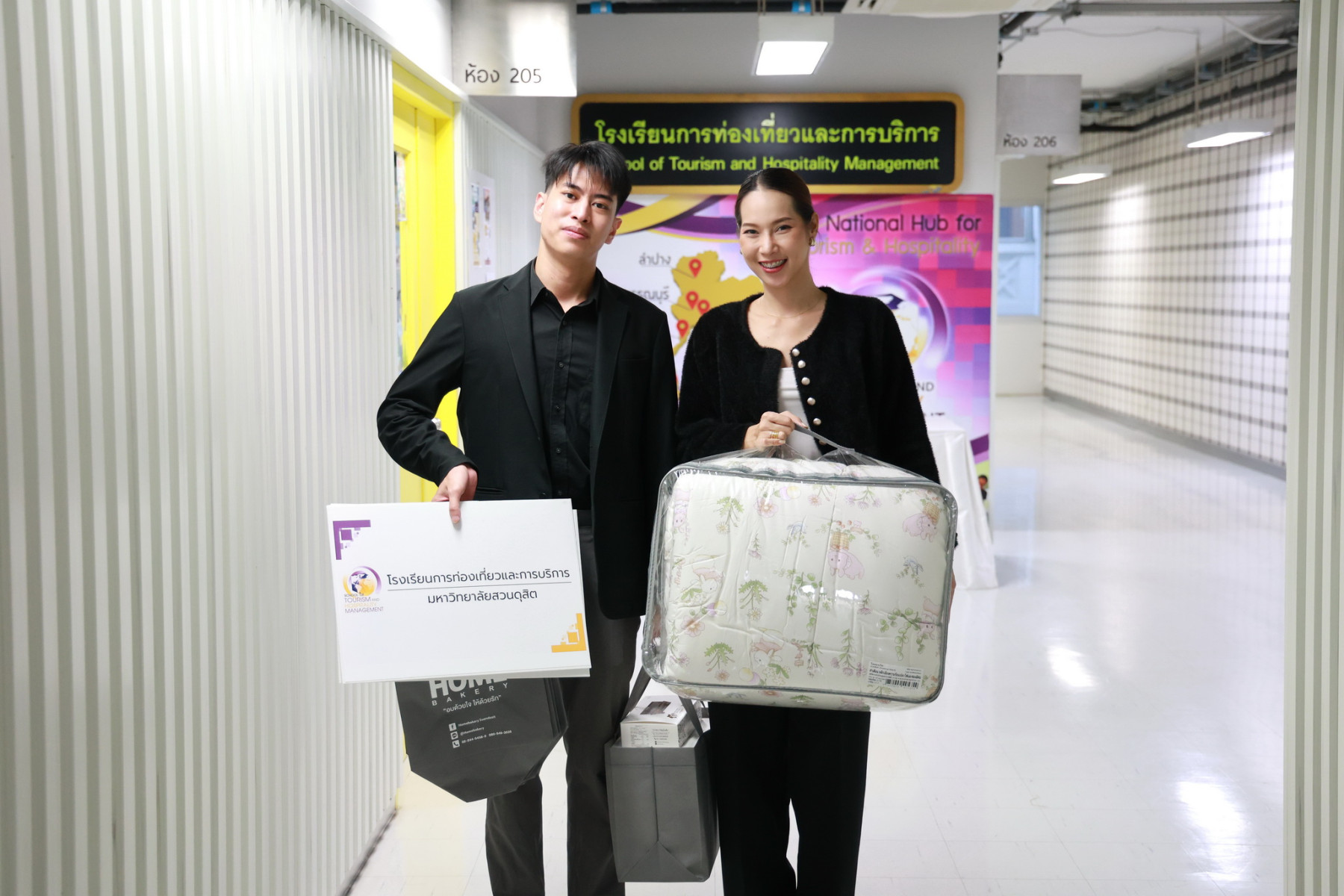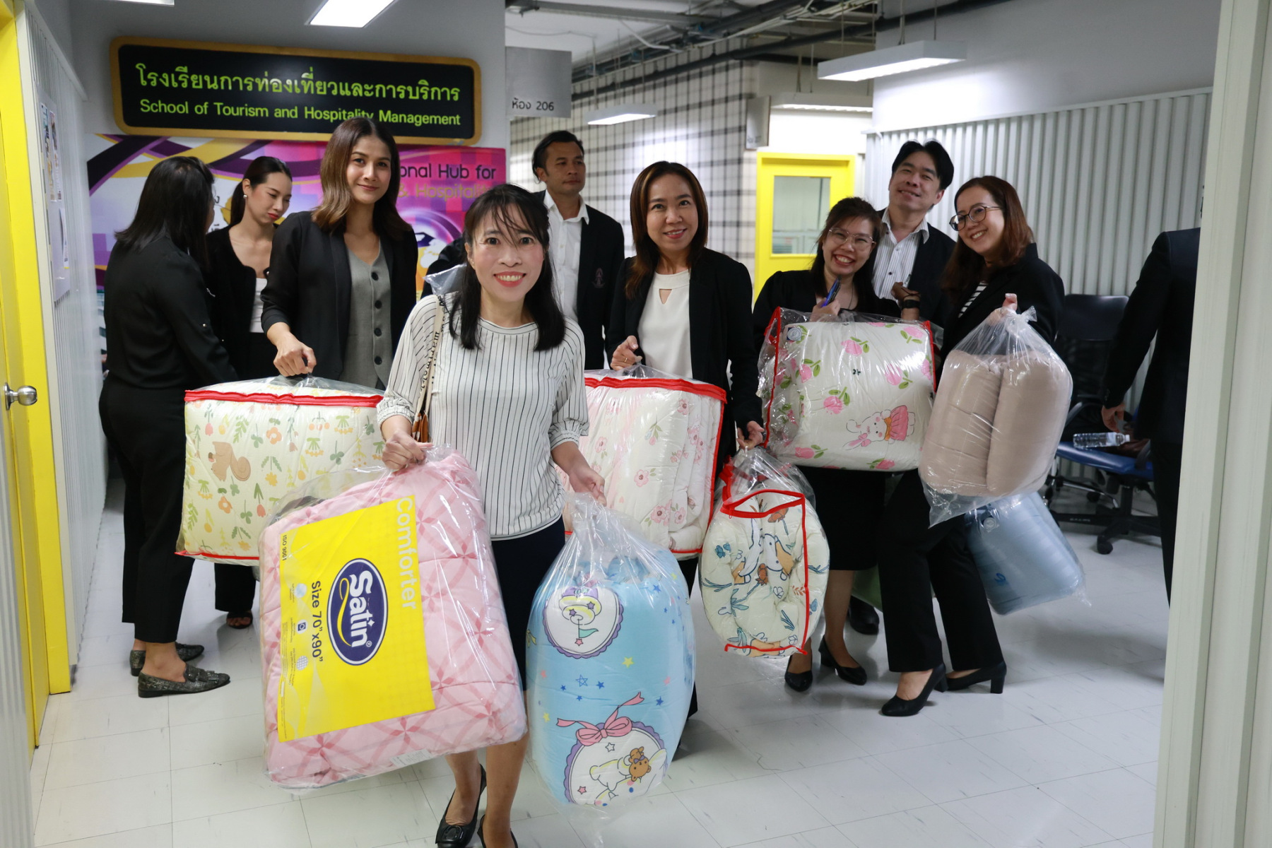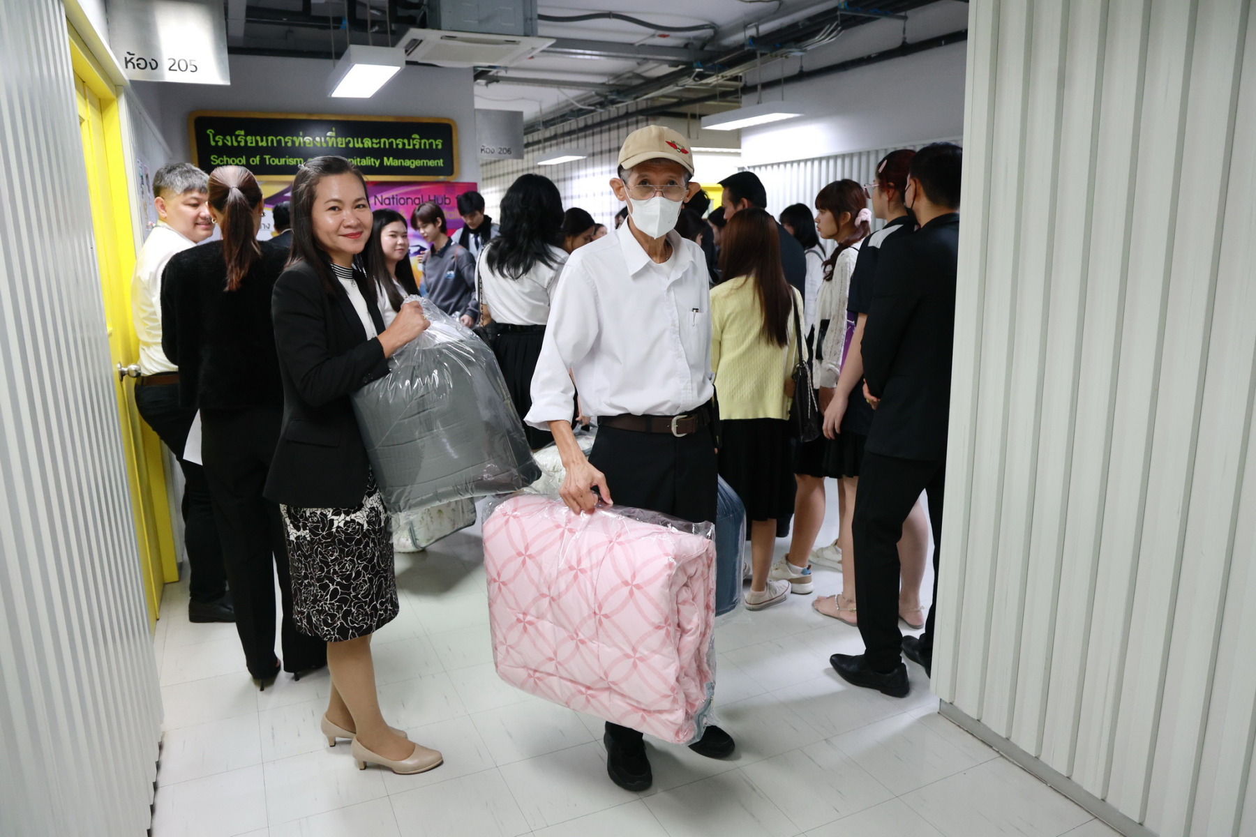 ผู้ช่วยศาสตราจารย์ ดร.พิมพ์มาดา วิชาศิลป์ คณบดีโรงเรียนการท่องเที่ยวและการบริการ เป็นตัวแทนมอบผ้าห่มอุ่นใจ เพื่อพี่น้องผู้ประสบอุทกภัยภาคใต้ ซึ่งร่วมกับ กาชาดจังหวัดนครนายก สภากาชาดไทย ณ หน้าอาคาร 2 ลานชั้น 1 วันที่ 4 ธันวาคม 2568