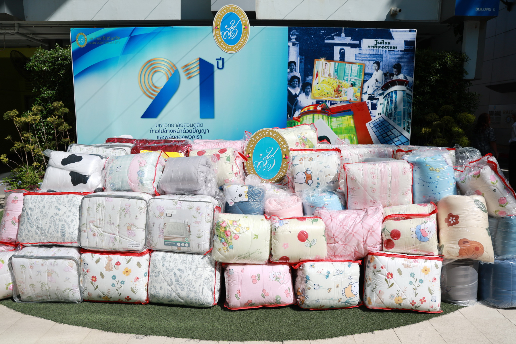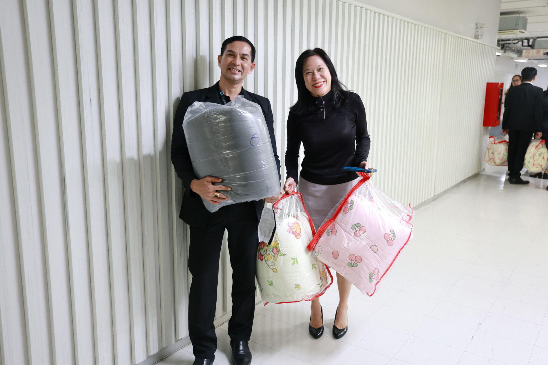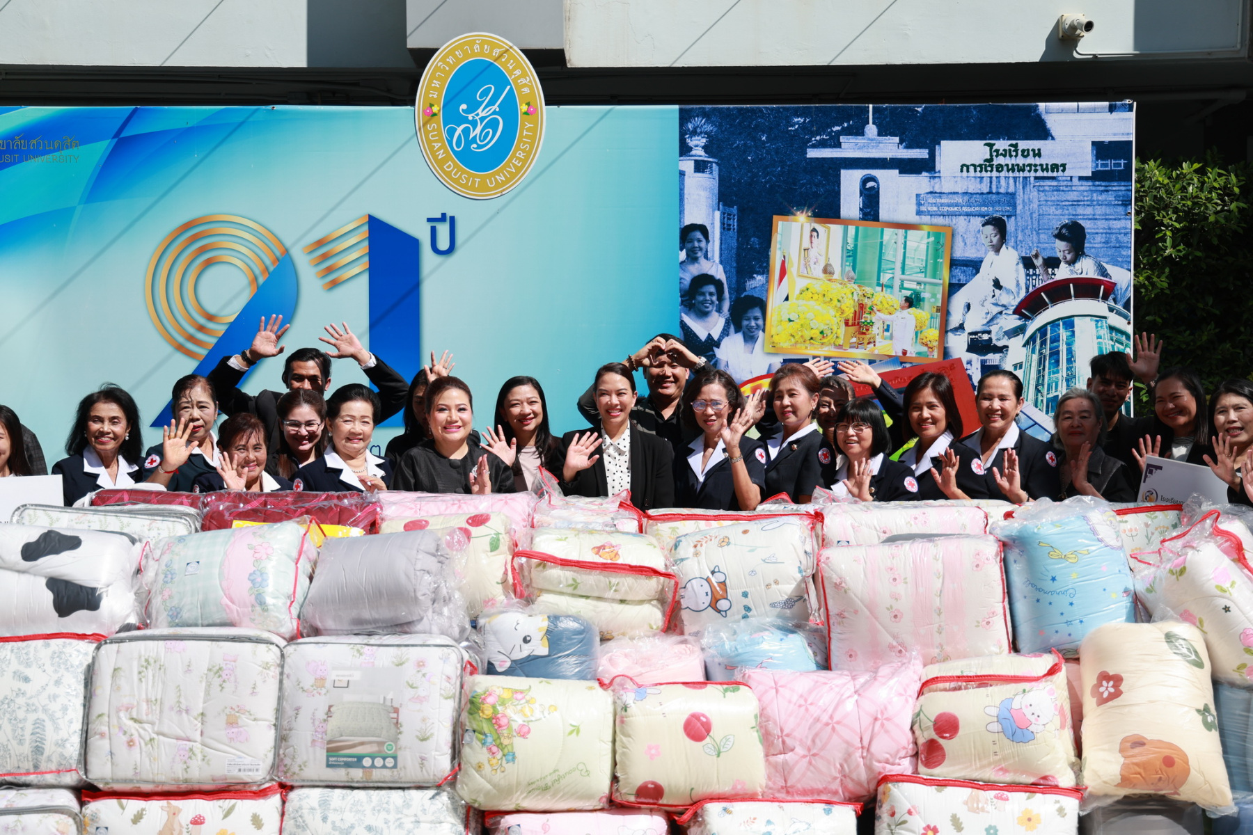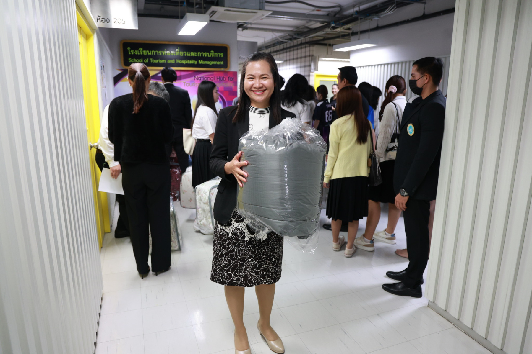 ผู้ช่วยศาสตราจารย์ ดร.พิมพ์มาดา วิชาศิลป์ คณบดีโรงเรียนการท่องเที่ยวและการบริการ เป็นตัวแทนมอบผ้าห่มอุ่นใจ เพื่อพี่น้องผู้ประสบอุทกภัยภาคใต้ ซึ่งร่วมกับ กาชาดจังหวัดนครนายก สภากาชาดไทย ณ หน้าอาคาร 2 ลานชั้น 1 วันที่ 4 ธันวาคม 2568