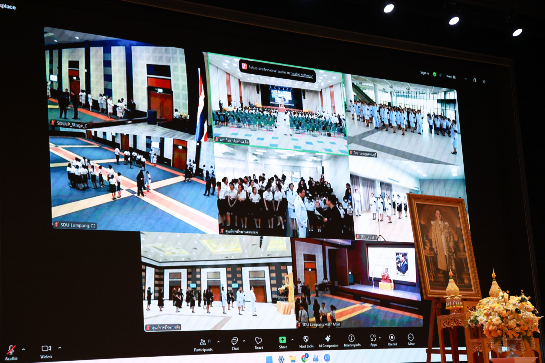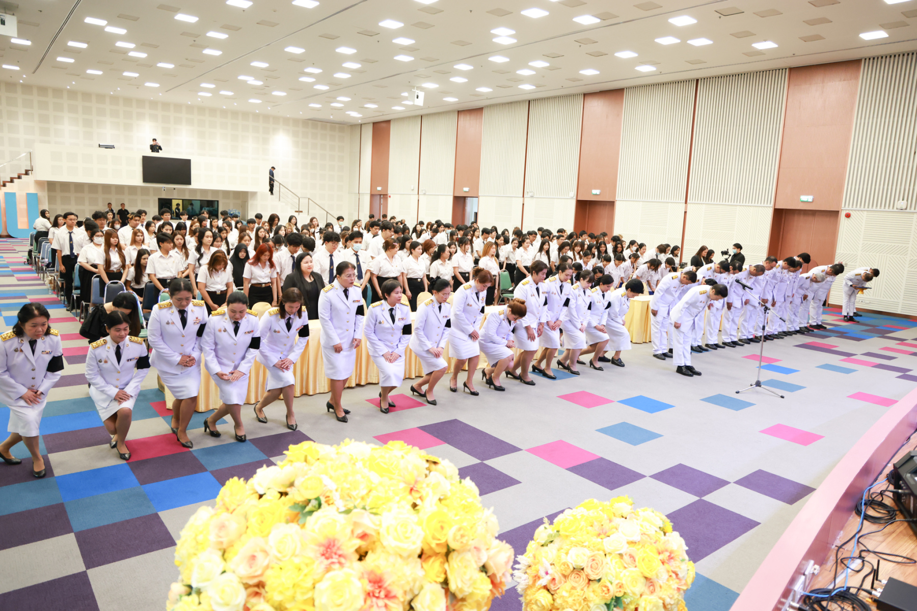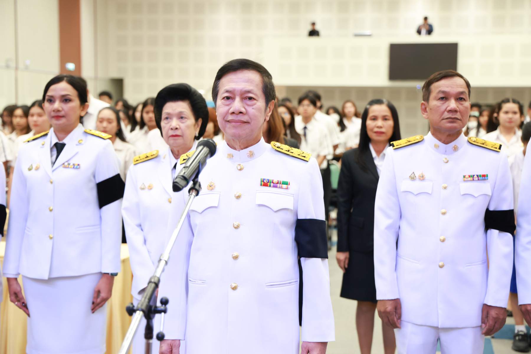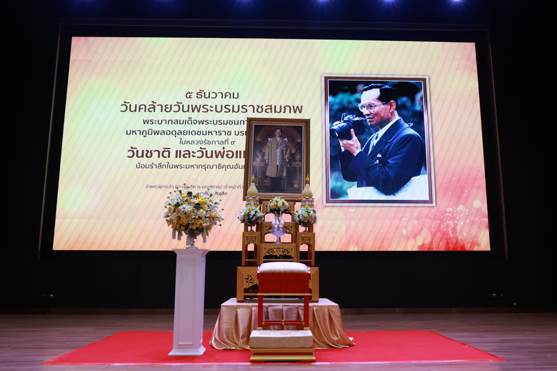 ผู้ช่วยศาสตราจารย์ ดร.พิทักษ์ จันทร์เจริญ อธิการบดีมหาวิทยาลัยสวนดุสิต นำผู้บริหาร อาจารย์ บุคลากร นักศึกษา มหาวิทยาลัยสวนดุสิต พร้อมด้วยคณะครู นักเรียนโรงเรียนสาธิตละอออุทิศ วางพานพุ่มดอกไม้ และกล่าวน้อมรำลึกในพระมหากรุณาธิคุณ และถวายบังคมหน้าพระบรมฉายาลักษณ์พระบาทสมเด็จพระบรมชนกาธิเบศร มหาภูมิพลอดุลยเดชมหาราช บรมนาถบพิตร เนื่องในวันคล้ายวันพระบรมราชสมภพ พระบาทสมเด็จพระบรมชนกาธิเบศร มหาภูมิพลอดุลยเดชมหาราช บรมนาถบพิตร วันชาติและวันพ่อแห่งชาติ 5 ธันวาคม 2568 ณ หอประชุมรักตะกนิษฐ ชั้น 2 มหาวิทยาลัยสวนดุสิต และผ่านระบบออนไลน์ วันพฤหัสบดีที่ 4 ธันวาคม 2568