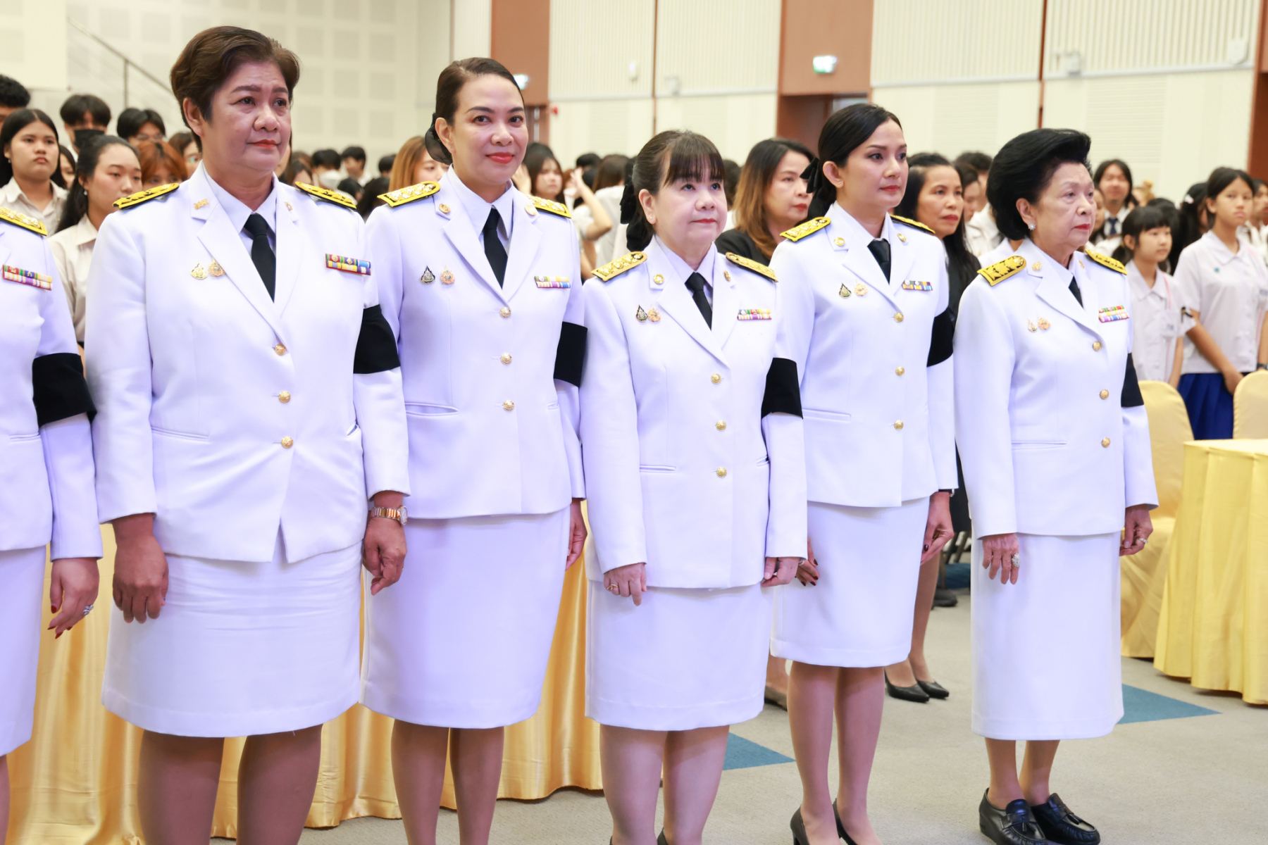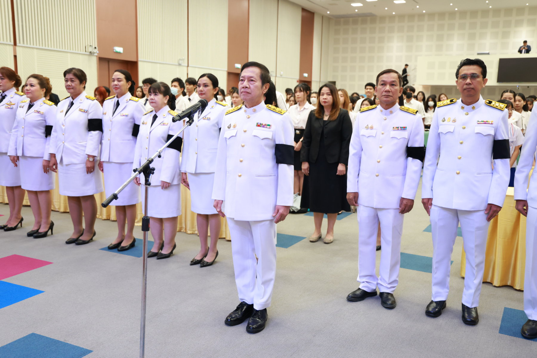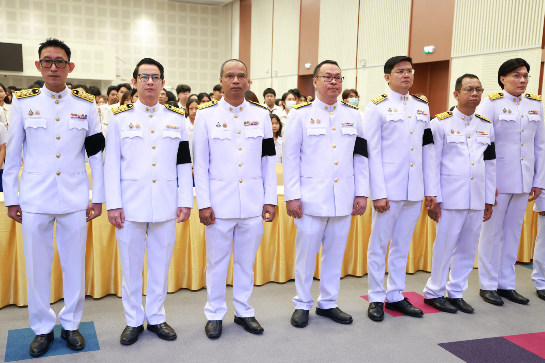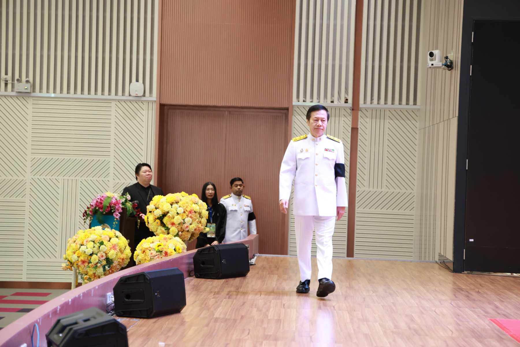 ผู้ช่วยศาสตราจารย์ ดร.พิทักษ์ จันทร์เจริญ อธิการบดีมหาวิทยาลัยสวนดุสิต นำผู้บริหาร อาจารย์ บุคลากร นักศึกษา มหาวิทยาลัยสวนดุสิต พร้อมด้วยคณะครู นักเรียนโรงเรียนสาธิตละอออุทิศ วางพานพุ่มดอกไม้ และกล่าวน้อมรำลึกในพระมหากรุณาธิคุณ และถวายบังคมหน้าพระบรมฉายาลักษณ์พระบาทสมเด็จพระบรมชนกาธิเบศร มหาภูมิพลอดุลยเดชมหาราช บรมนาถบพิตร เนื่องในวันคล้ายวันพระบรมราชสมภพ พระบาทสมเด็จพระบรมชนกาธิเบศร มหาภูมิพลอดุลยเดชมหาราช บรมนาถบพิตร วันชาติและวันพ่อแห่งชาติ 5 ธันวาคม 2568 ณ หอประชุมรักตะกนิษฐ ชั้น 2 มหาวิทยาลัยสวนดุสิต และผ่านระบบออนไลน์ วันพฤหัสบดีที่ 4 ธันวาคม 2568