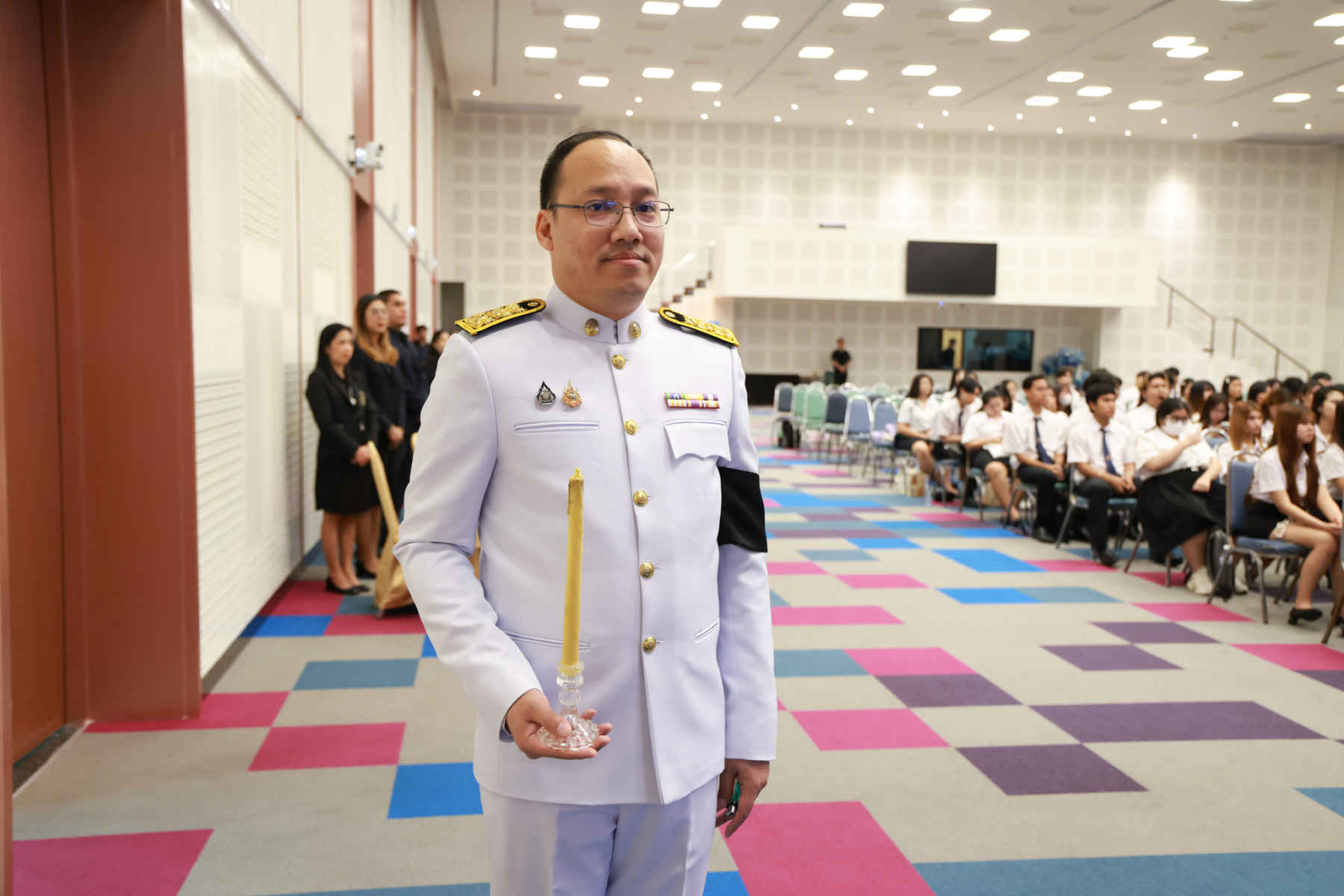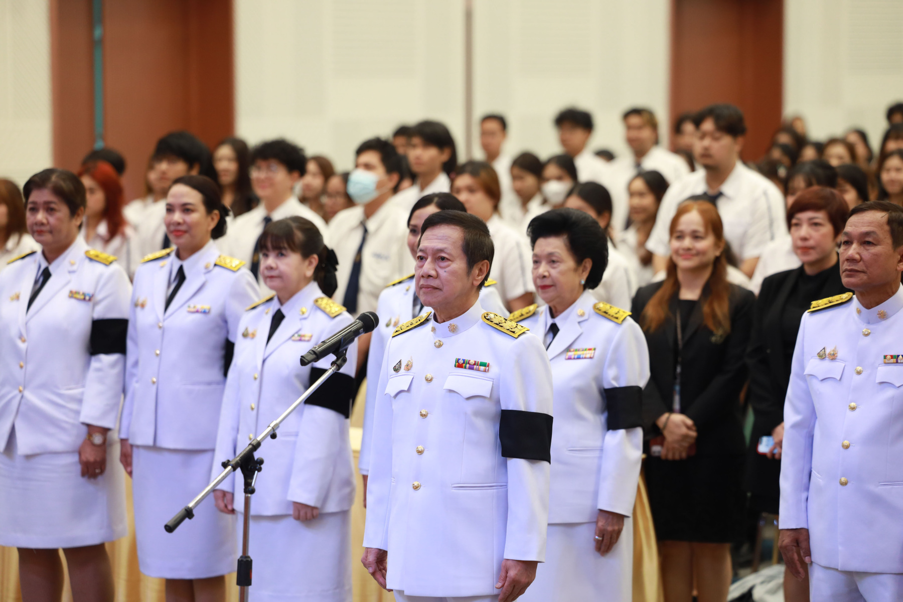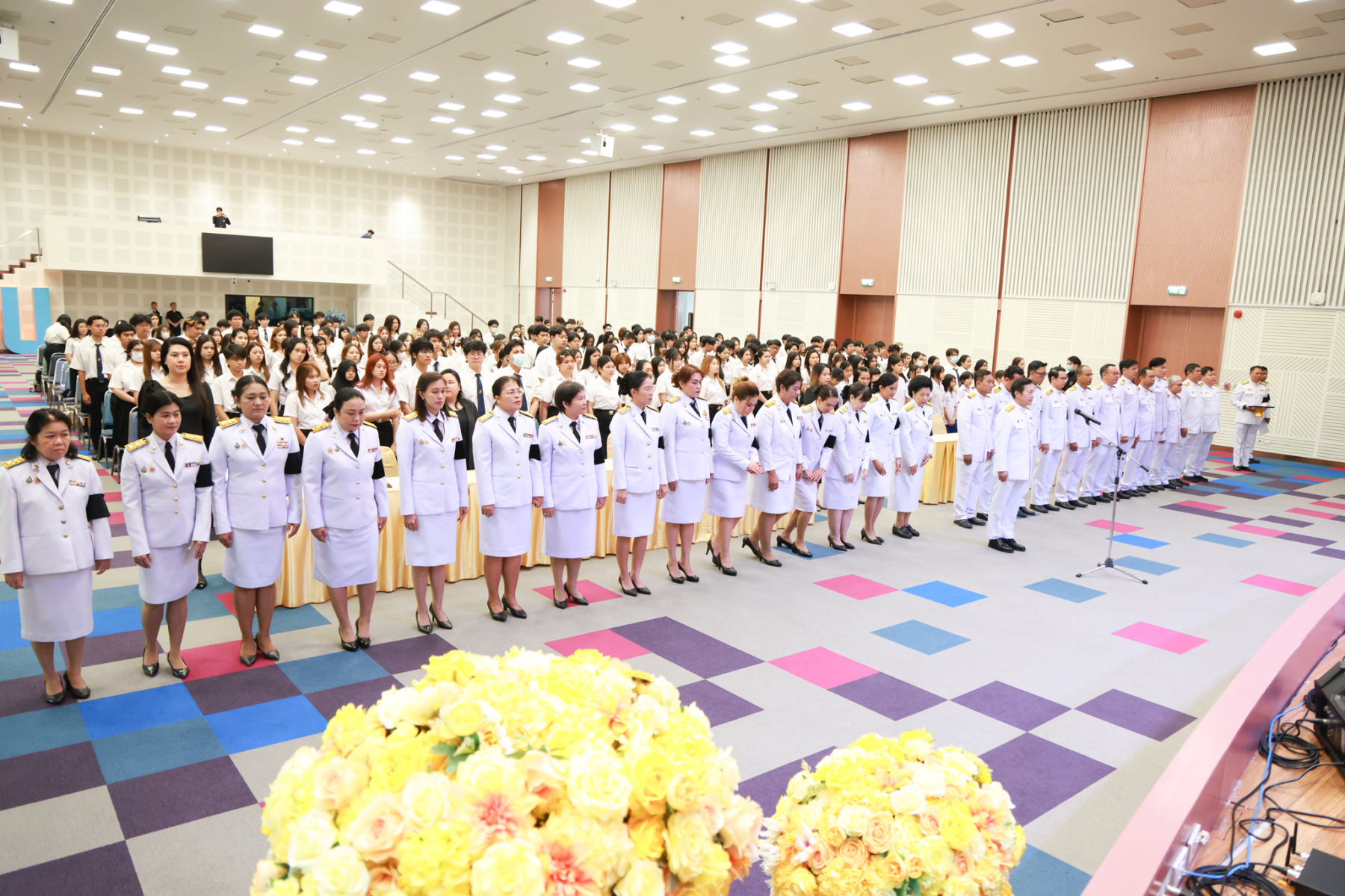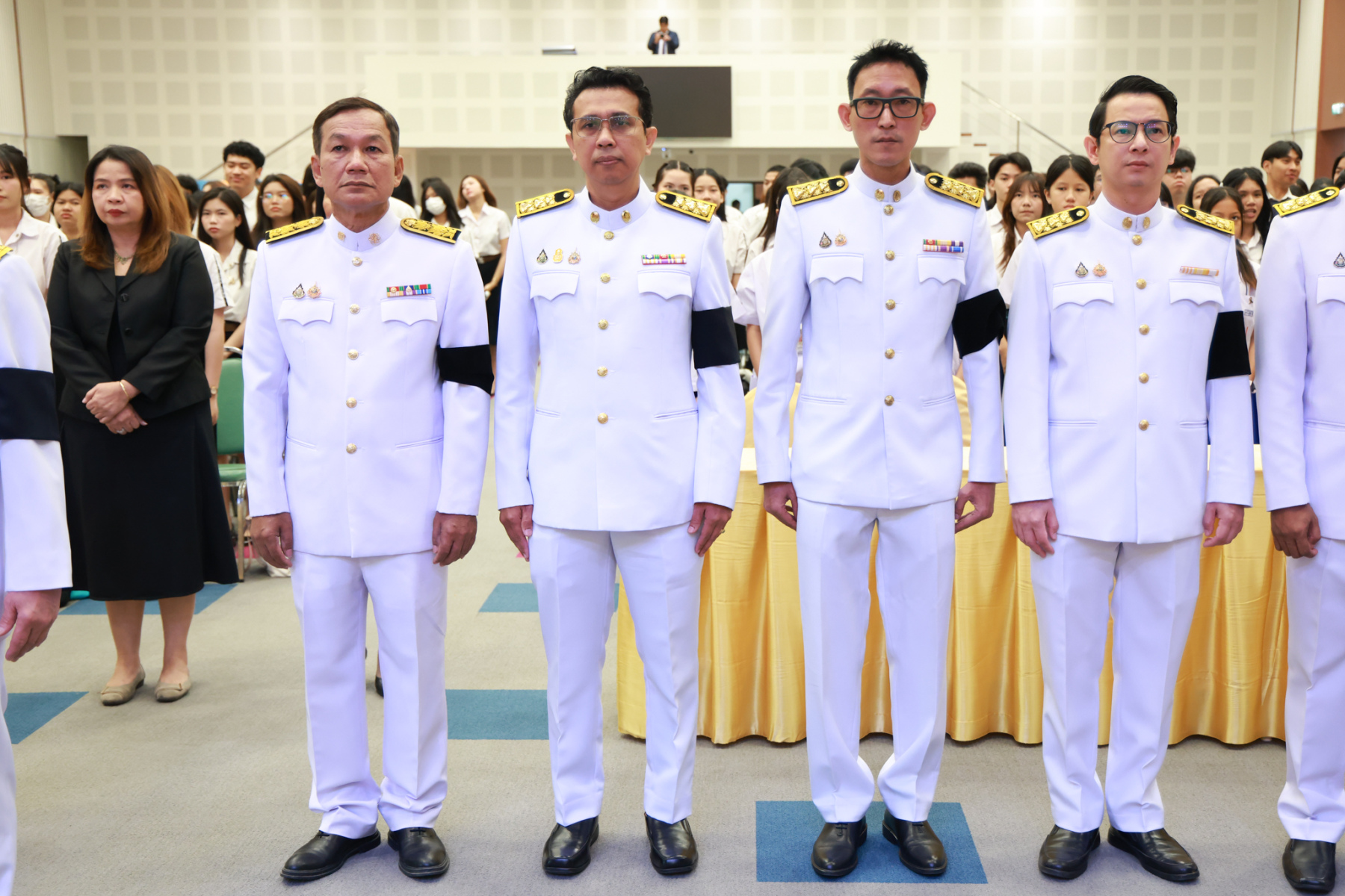 ผู้ช่วยศาสตราจารย์ ดร.พิทักษ์ จันทร์เจริญ อธิการบดีมหาวิทยาลัยสวนดุสิต นำผู้บริหาร อาจารย์ บุคลากร นักศึกษา มหาวิทยาลัยสวนดุสิต พร้อมด้วยคณะครู นักเรียนโรงเรียนสาธิตละอออุทิศ วางพานพุ่มดอกไม้ และกล่าวน้อมรำลึกในพระมหากรุณาธิคุณ และถวายบังคมหน้าพระบรมฉายาลักษณ์พระบาทสมเด็จพระบรมชนกาธิเบศร มหาภูมิพลอดุลยเดชมหาราช บรมนาถบพิตร เนื่องในวันคล้ายวันพระบรมราชสมภพ พระบาทสมเด็จพระบรมชนกาธิเบศร มหาภูมิพลอดุลยเดชมหาราช บรมนาถบพิตร วันชาติและวันพ่อแห่งชาติ 5 ธันวาคม 2568 ณ หอประชุมรักตะกนิษฐ ชั้น 2 มหาวิทยาลัยสวนดุสิต และผ่านระบบออนไลน์ วันพฤหัสบดีที่ 4 ธันวาคม 2568