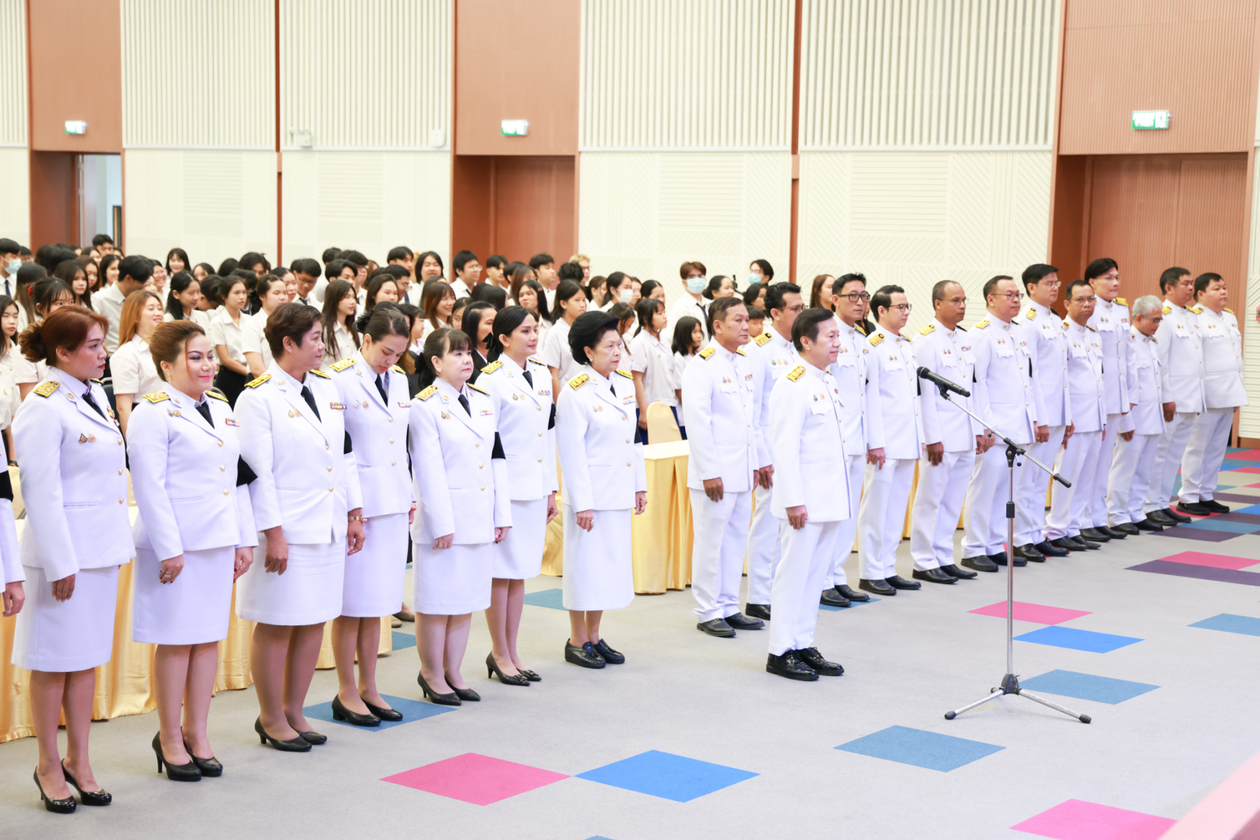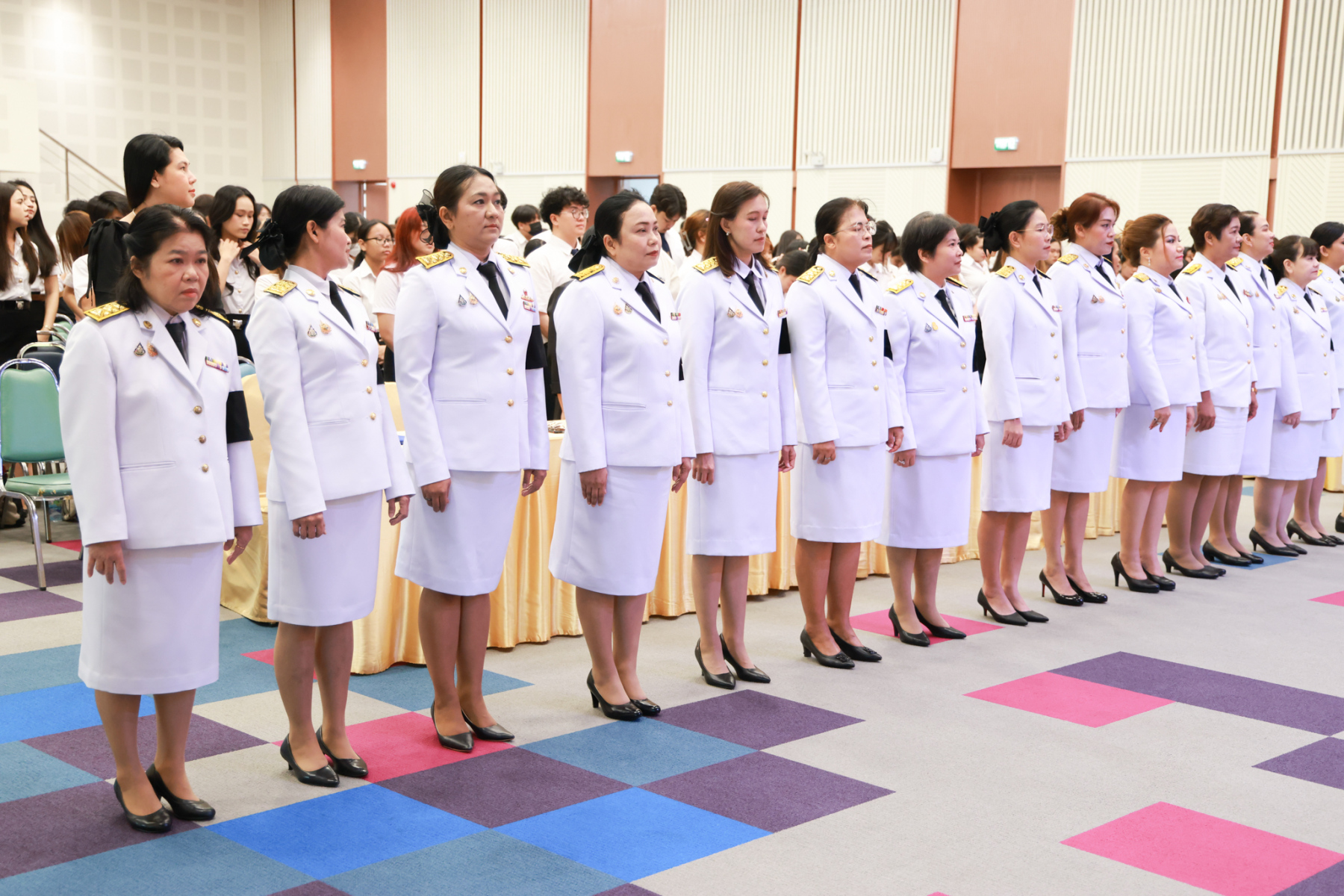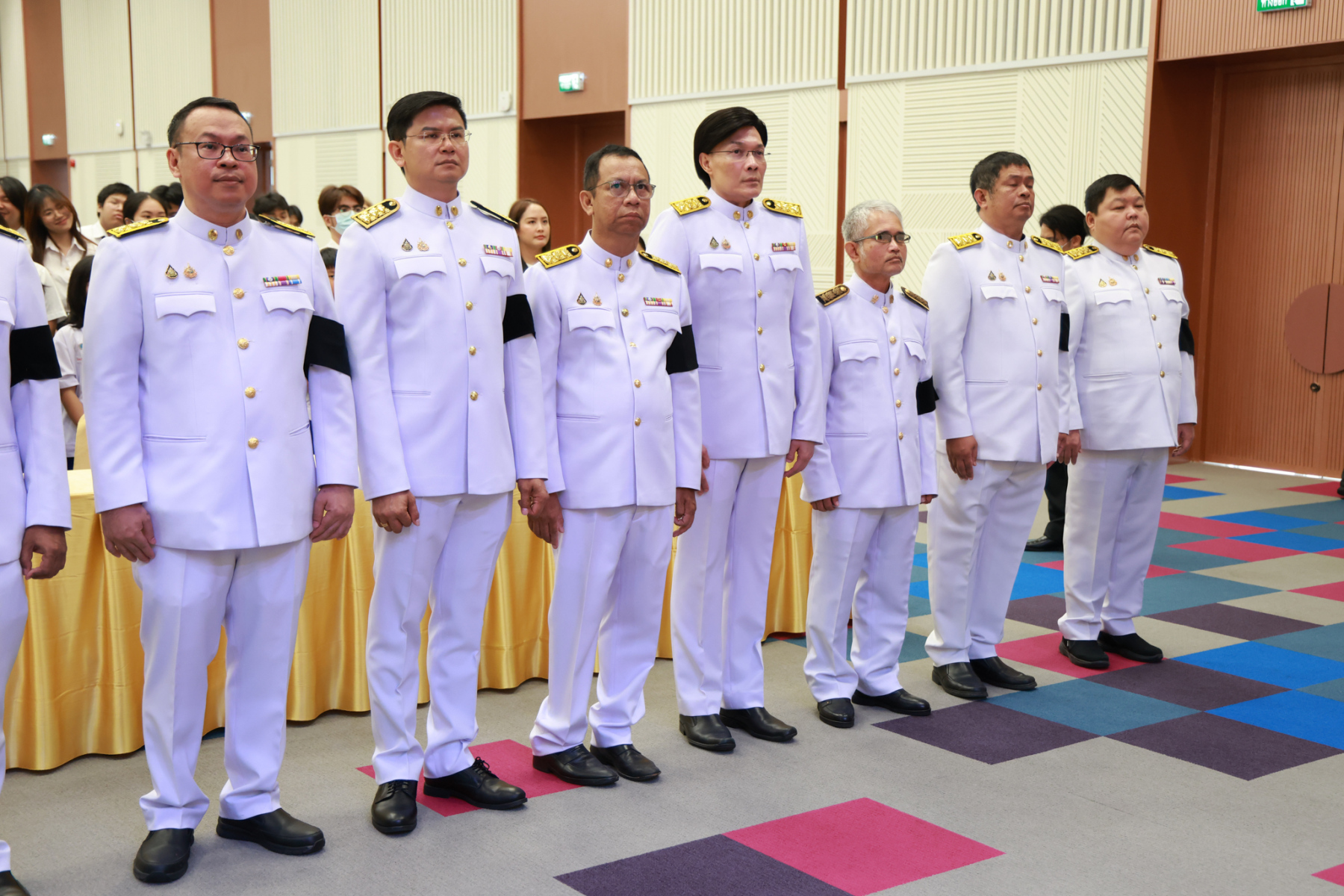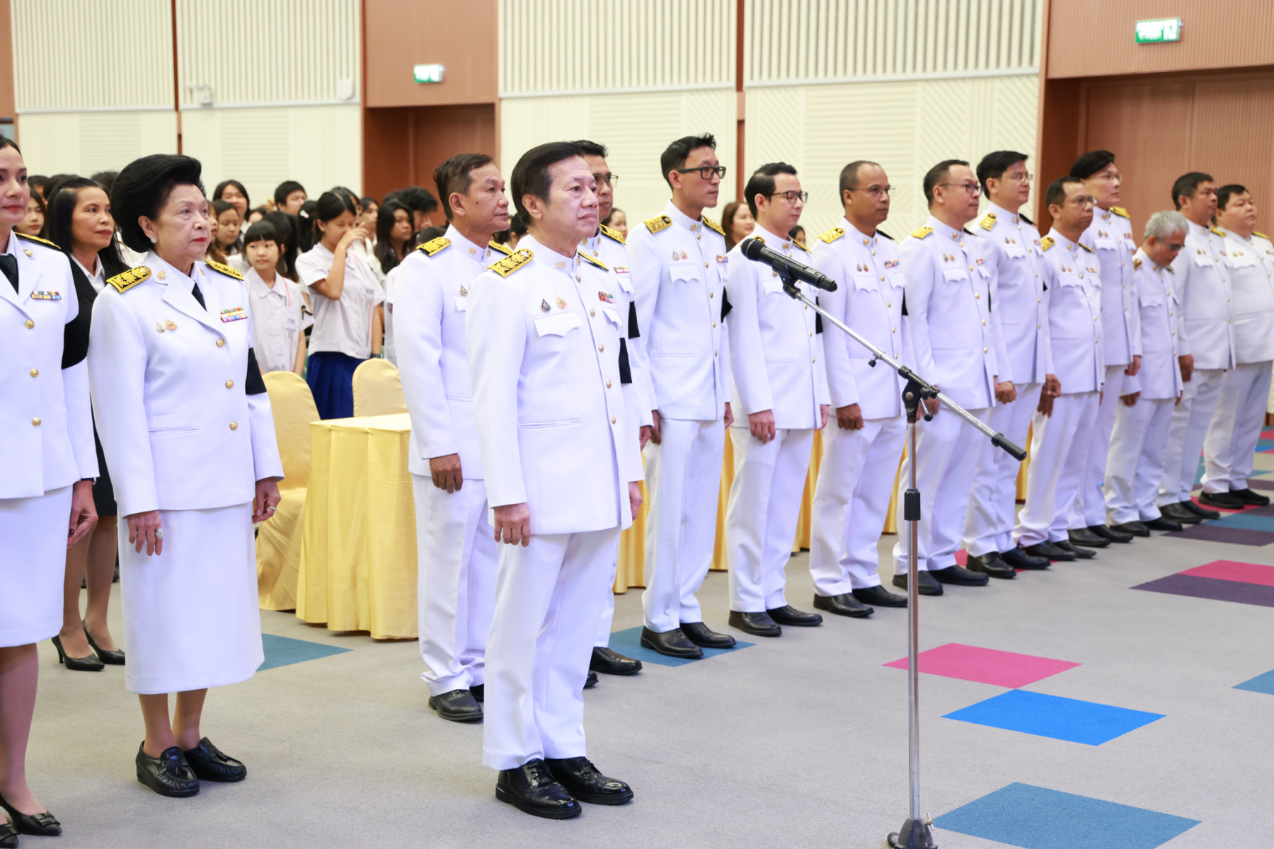 ผู้ช่วยศาสตราจารย์ ดร.พิทักษ์ จันทร์เจริญ อธิการบดีมหาวิทยาลัยสวนดุสิต นำผู้บริหาร อาจารย์ บุคลากร นักศึกษา มหาวิทยาลัยสวนดุสิต พร้อมด้วยคณะครู นักเรียนโรงเรียนสาธิตละอออุทิศ วางพานพุ่มดอกไม้ และกล่าวน้อมรำลึกในพระมหากรุณาธิคุณ และถวายบังคมหน้าพระบรมฉายาลักษณ์พระบาทสมเด็จพระบรมชนกาธิเบศร มหาภูมิพลอดุลยเดชมหาราช บรมนาถบพิตร เนื่องในวันคล้ายวันพระบรมราชสมภพ พระบาทสมเด็จพระบรมชนกาธิเบศร มหาภูมิพลอดุลยเดชมหาราช บรมนาถบพิตร วันชาติและวันพ่อแห่งชาติ 5 ธันวาคม 2568 ณ หอประชุมรักตะกนิษฐ ชั้น 2 มหาวิทยาลัยสวนดุสิต และผ่านระบบออนไลน์ วันพฤหัสบดีที่ 4 ธันวาคม 2568