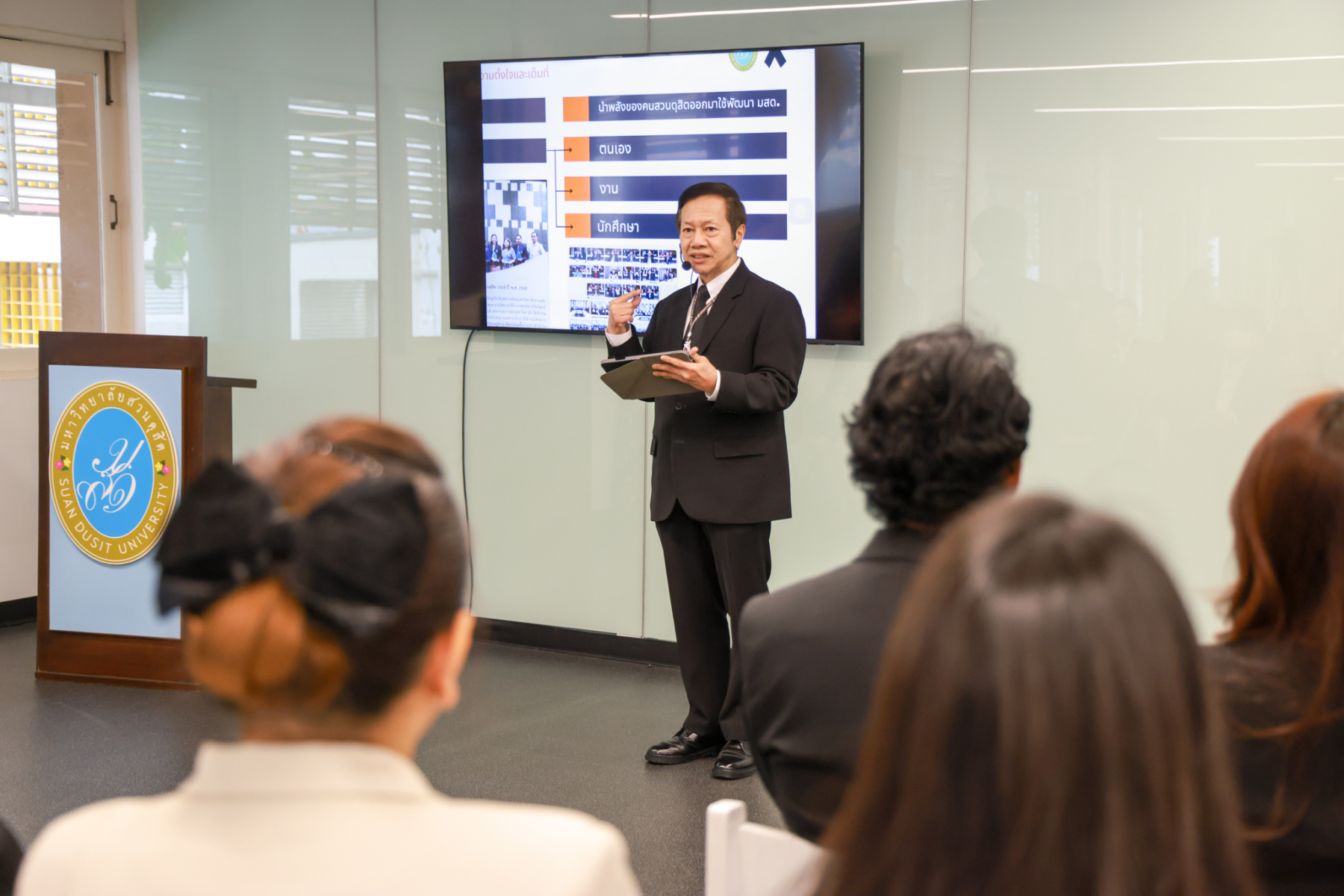 มหาวิทยาลัยสวนดุสิต จัดงานเปิดโลกไอเดียใหม่ 20 มุมมองกับ 20 Powers of SDU Smart#2 การจัดแสดงและนำเสนอนิทรรศการ 20 พลังความคิดสร้างสรรค์ จาก 20 บุคลากร SDU Smart รุ่นที่ 2 โดยได้รับเกียรติจาก ผู้ช่วยศาสตราจารย์ ดร.พิทักษ์ จันทร์เจริญ อธิการบดีมหาวิทยาลัยสวนดุสิต เป็นประธานในพิธี ณ Reading Zone ชั้น 2 อาคาร OWL เมื่อวันพฤหัสบดีที่ 11 ธันวาคม 2568