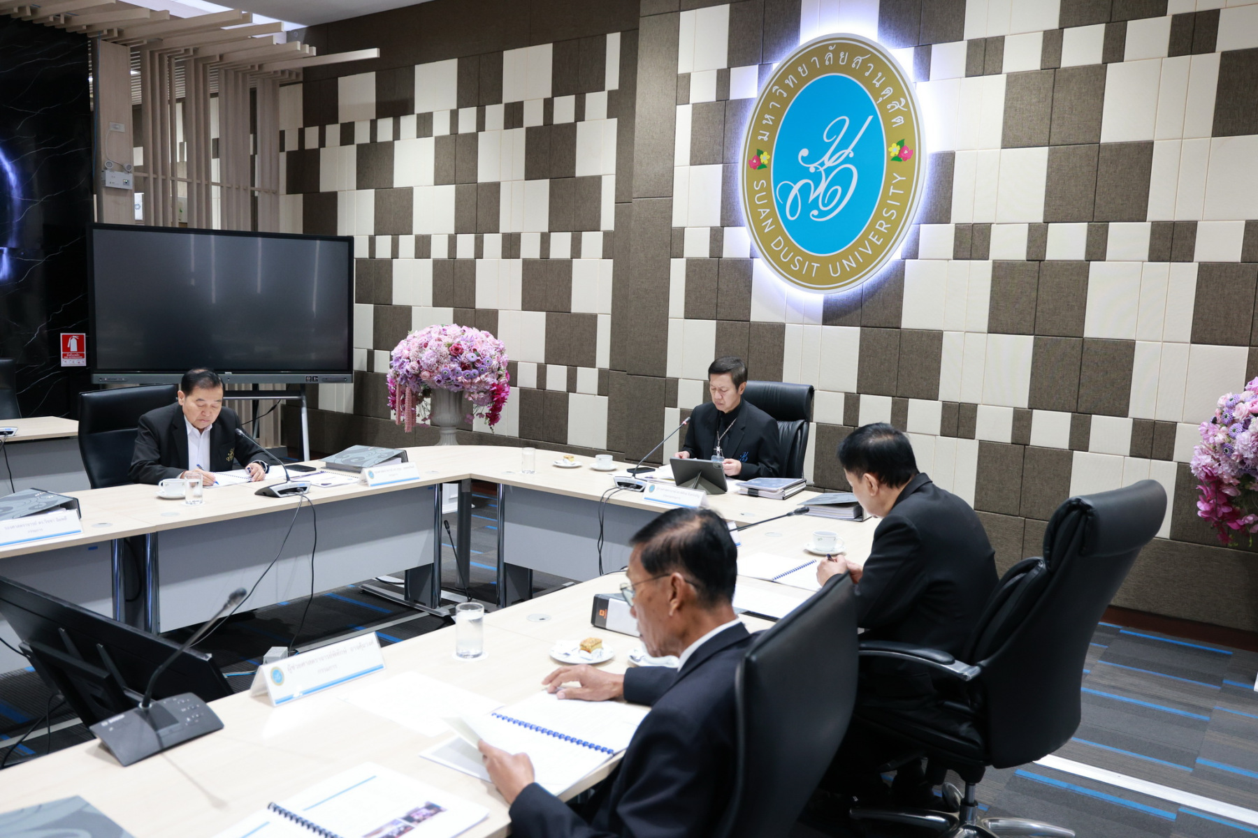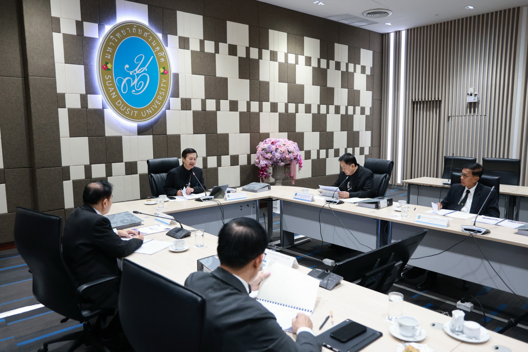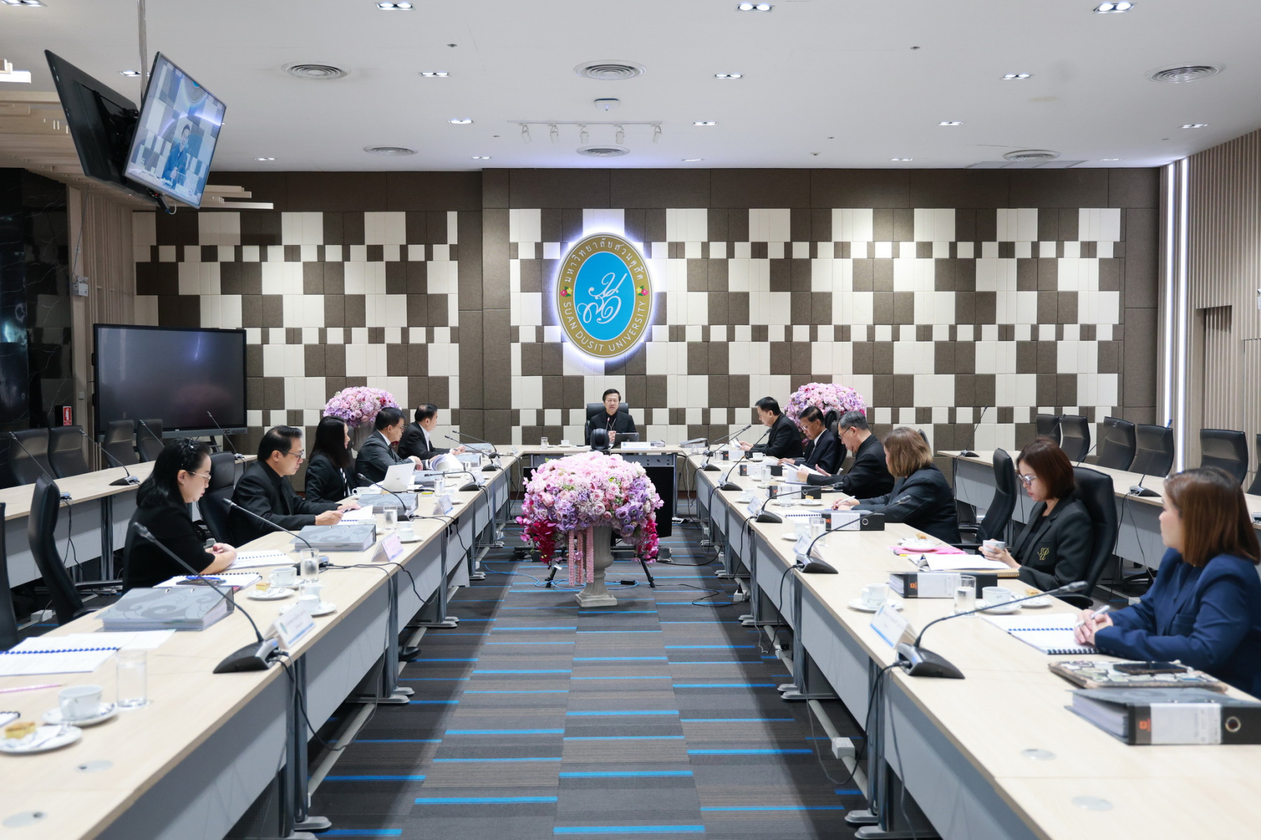 ผู้ช่วยศาสตราจารย์ ดร.พิทักษ์ จันทร์เจริญ อธิการบดีมหาวิทยาลัยสวนดุสิต เป็นประธานประชุมคณะกรรมการบริหารงานบุคคล (ก.บ.บ.) ครั้งที่ 8(9)/2568 โดยมีวาระเรื่องการติดตามการดำเนินงานตามมติที่ประชุมคณะกรรมการบริหารงานบุคคล เรื่องการทดสอบความรู้ ทักษะและเจตคติ พนักงานมหาวิทยาลัย สายสนับสนุน ที่สิ้นสุดสัญญาจ้าง พ.ศ.2569 เรื่องพนักงานมหาวิทยาลัยสายสนับสนุนประเภทวิชาชีพเฉพาะ ให้ดำรงตำแหน่งสูงขึ้น ระดับชำนาญการ จำนวน 1 ราย ณ ห้องประชุม ชั้น 5 อาคารสำนักงานมหาวิทาลัย วันที่ 12 ธันวาคม 2568
