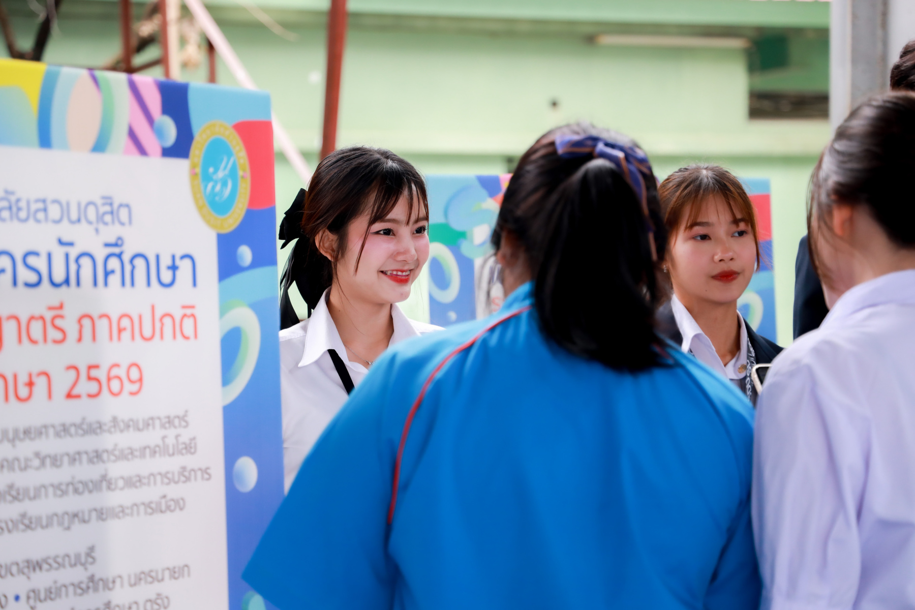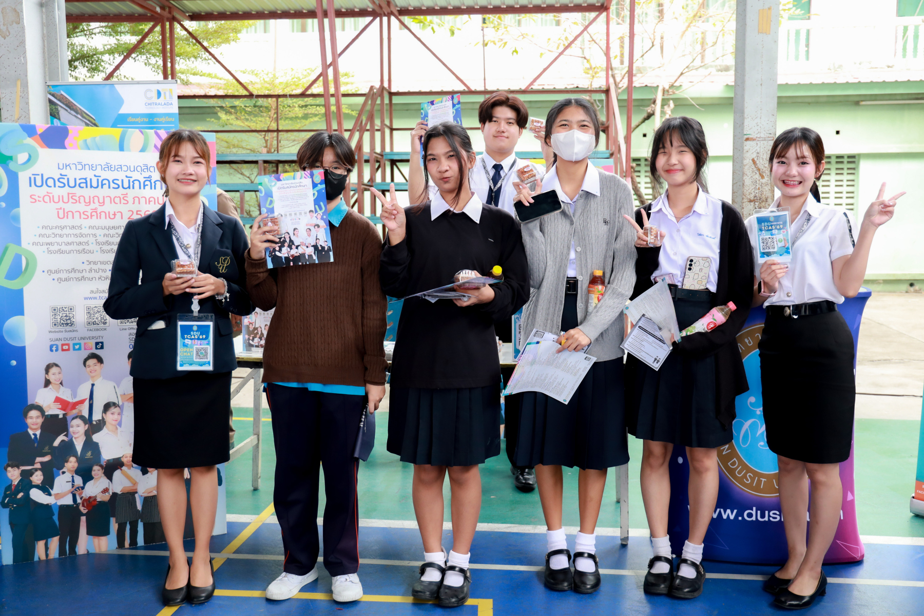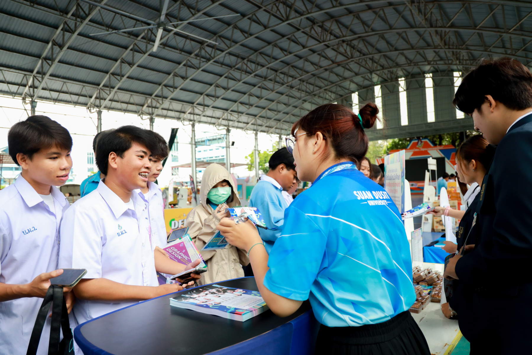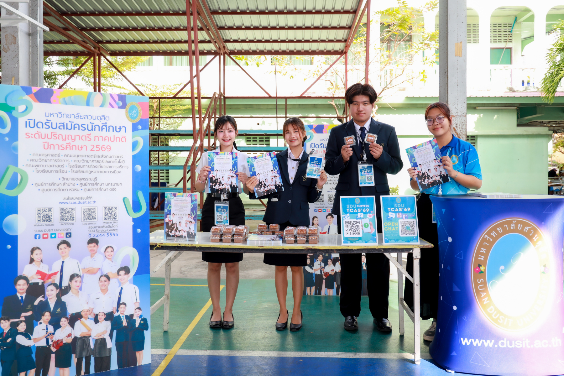 กองประชาสัมพันธ์ มหาวิทยาลัยสวนดุสิต ร่วมแนะแนวการศึกษาต่อมหาวิทยาลัยสวนดุสิตในงาน “มหกรรม DEK เล่น DEK เรียน” โดยมีกองประชาสัมพันธ์ พร้อมตัวแทนนักศึกษาจากโรงเรียนการเรือน โรงเรียนการท่องเที่ยวและการบริการ และคณะวิทยาการจัดการ ร่วมให้ข้อมูลการศึกษาต่อมหาวิทยาลัยสวนดุสิต ซึ่งภายในงานมีการจัดกิจกรรมรับของที่ระลึกเป็นขนม Toffee Cake จาก Home Bakery ในวันที่ 12 ธันวาคม 2568 ณ โรงเรียนบางมดวิทยา “สีสุกหวาดจวนอุปถัมภ์”
