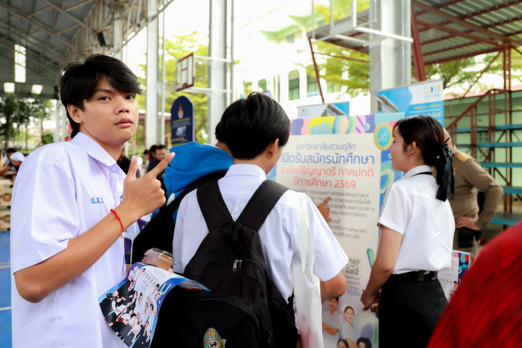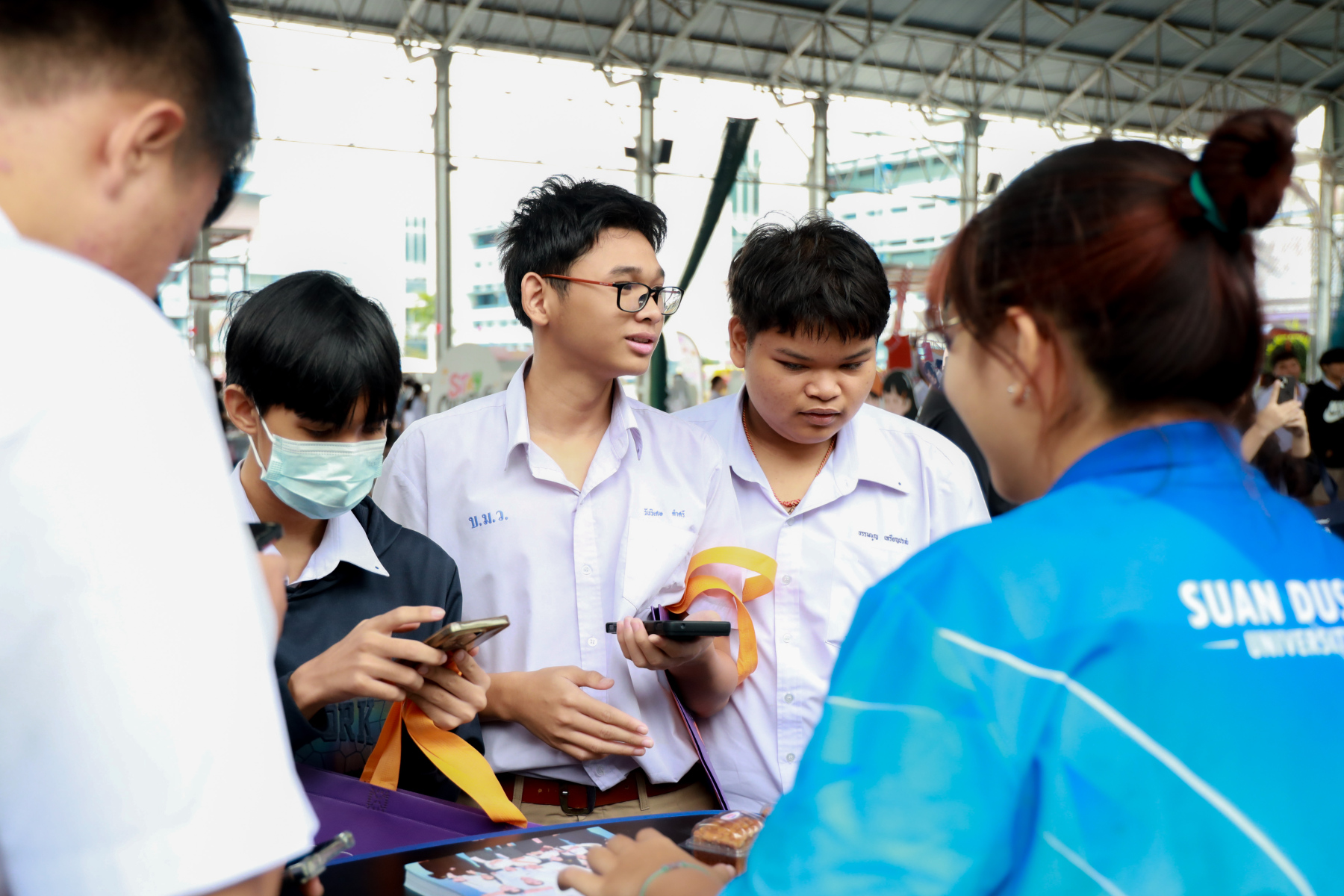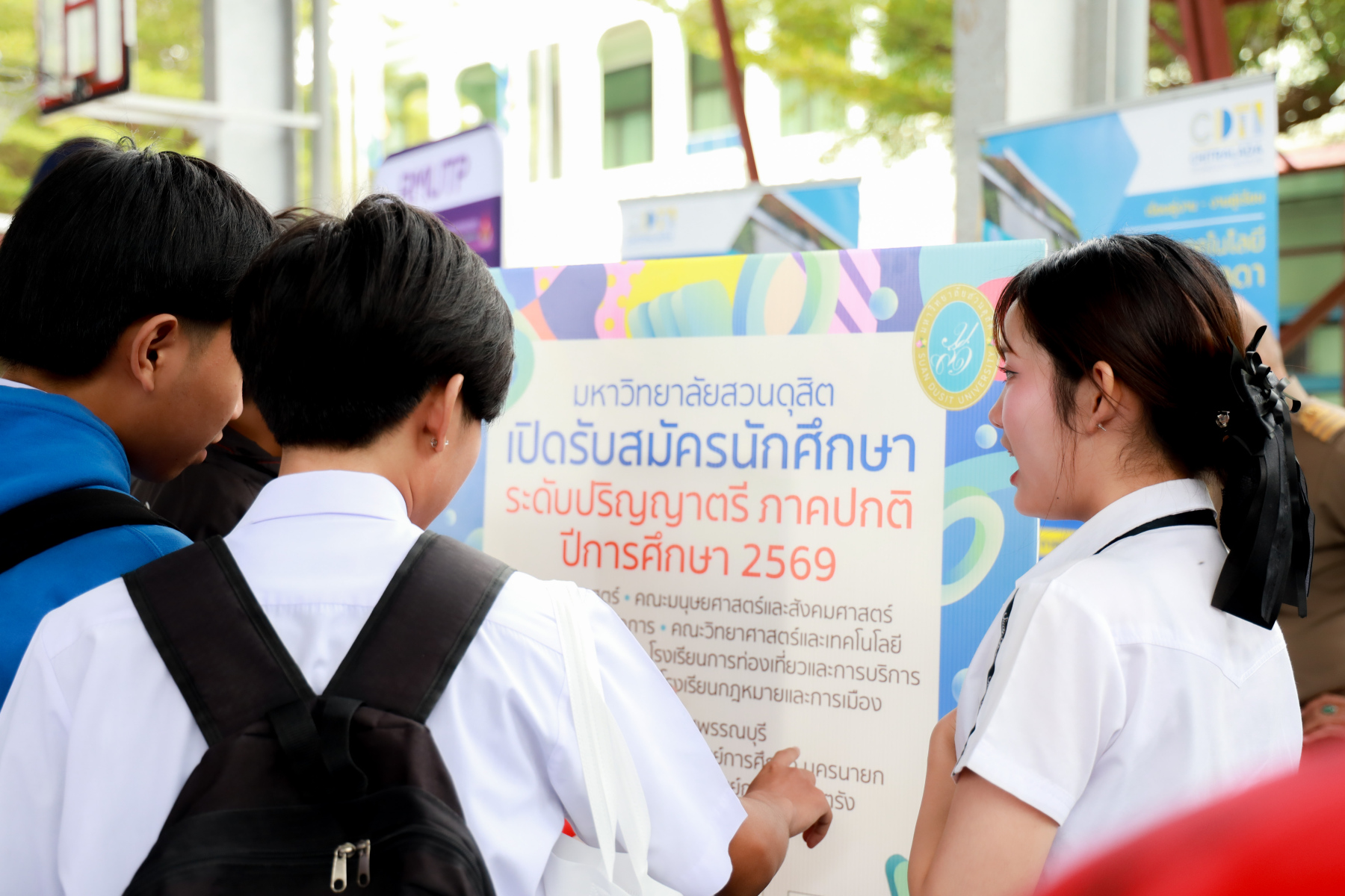 กองประชาสัมพันธ์ มหาวิทยาลัยสวนดุสิต ร่วมแนะแนวการศึกษาต่อมหาวิทยาลัยสวนดุสิตในงาน “มหกรรม DEK เล่น DEK เรียน” โดยมีกองประชาสัมพันธ์ พร้อมตัวแทนนักศึกษาจากโรงเรียนการเรือน โรงเรียนการท่องเที่ยวและการบริการ และคณะวิทยาการจัดการ ร่วมให้ข้อมูลการศึกษาต่อมหาวิทยาลัยสวนดุสิต ซึ่งภายในงานมีการจัดกิจกรรมรับของที่ระลึกเป็นขนม Toffee Cake จาก Home Bakery ในวันที่ 12 ธันวาคม 2568 ณ โรงเรียนบางมดวิทยา “สีสุกหวาดจวนอุปถัมภ์”