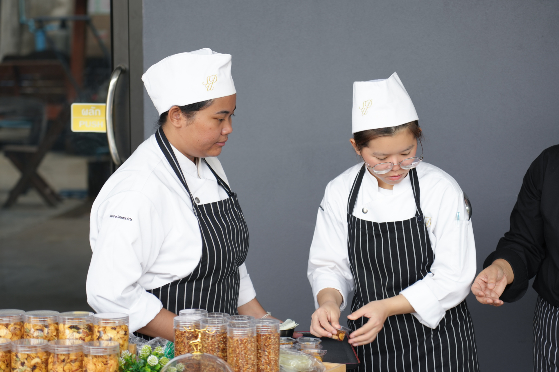 มหาวิทยาลัยสวนดุสิต ร่วมกับสำนักงานปลัดกระทรวงการอุดมศึกษา วิทยาศาสตร์ วิจัยและนวัตกรรม จัดโครงการ “การยกระดับห่วงโซ่คุณค่าปลาสลิดดอนกำยาน เพื่อขับเคลื่อนเศรษฐกิจสร้างสรรค์และพัฒนาเชิงพื้นที่จังหวัดสุพรรณบุรี ไปสู่เมืองอาหารปลอดภัยอย่างยั่งยืน” โดย สำนักนวัตกรรมชุมชน และคณาจารย์มหาวิทยาลัยสวนดุสิต ดำเนินการจัดกิจกรรมถ่ายทอดองค์ความรู้ให้กับกลุ่มบ้านน้ำพริกวังงาม อำเภอสามชุก จังหวัดสุพรรณบุรี ซึ่งกิจกรรมดังกล่าว มีทั้งหมด 3 ด้าน ได้แก่ ด้านการสาธิตการประกอบอาหารและพัฒนาผลิตภัณฑ์เมี่ยงปลาสลิดรสพริกเผา และคอนเฟลกผสมปลาสลิดกรอบรสพริกเผา โดย ผู้ช่วยศาสตราจารย์ พรทวี ธนสัมบัณณ์ ประธานหลักสูตรเทคโนโลยีการประกอบอาหารและการบริการ มหาวิทยาลัยสวนดุสิต วิทยาเขตสุพรรณบุรี ด้านการพัฒนาฉลากสินค้าและบรรจุภัณฑ์ โดย ผู้ช่วยศาสตราจารย์มานะ เอี่ยมบัว ประธานหลักสูตรศิลปศาสตรบัณฑิตสาขาวิชาออกแบบนิทรรศการและการจัดแสดง และด้านการถ่ายภาพ และส่งเสริมประชาสัมพันธ์การตลาดออนไลน์ โดย ผู้ช่วยศาสตราจารย์ ดร.อัญชนา ลักษณ์วิรามสิริ อาจารย์ผู้รับผิดชอบหลักสูตรธุรกิจสร้างสรรค์และเทคโนโลยีดิจิทัล โดยมีนักศึกษา มหาวิทยาลัยสวนดุสิตและสมาชิกกลุ่มบ้านน้ำพริกวังงาม เข้าร่วมกิจกรรมดังกล่าว ซึ่งจัดขึ้นเมื่อวันที่ 14 ธันวาคม 2568 ณ บ้านน้ำพริกวังงาม ตำบลหนองสะเดา อำเภอสามชุก จังหวัดสุพรรณบุรี