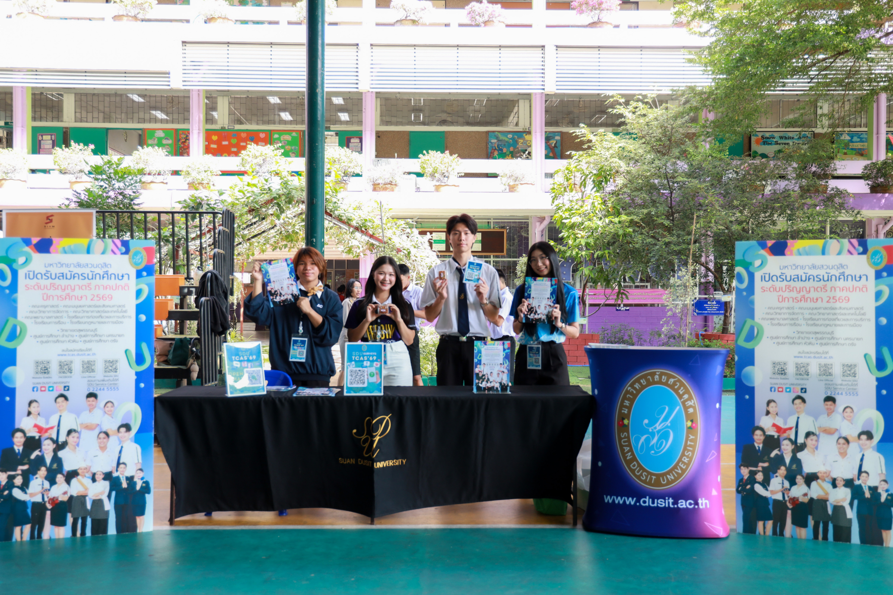 กองประชาสัมพันธ์ มหาวิทยาลัยสวนดุสิต ร่วมแนะแนวการศึกษาต่อมหาวิทยาลัยสวนดุสิตในงาน “มหกรรม DEK เล่น DEK เรียน” โดยมีกองประชาสัมพันธ์ พร้อมตัวแทนนักศึกษาจากโรงเรียนการท่องเที่ยวและการบริการ คณะมนุษยศาสตร์และสังคมศาสตร์ และคณะวิทยาการจัดการ ร่วมให้ข้อมูลการศึกษาต่อมหาวิทยาลัยสวนดุสิต ซึ่งภายในงานมีการจัดกิจกรรมรับของที่ระลึกเป็นขนม Toffee Cake จาก Home Bakery ในวันที่ 15 ธันวาคม 2568 ณ โรงเรียนวิชูทิศ