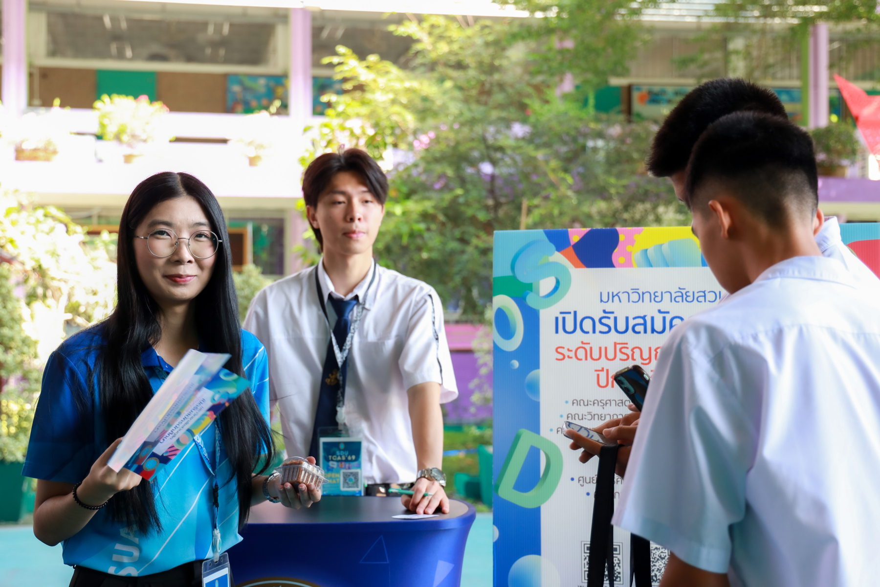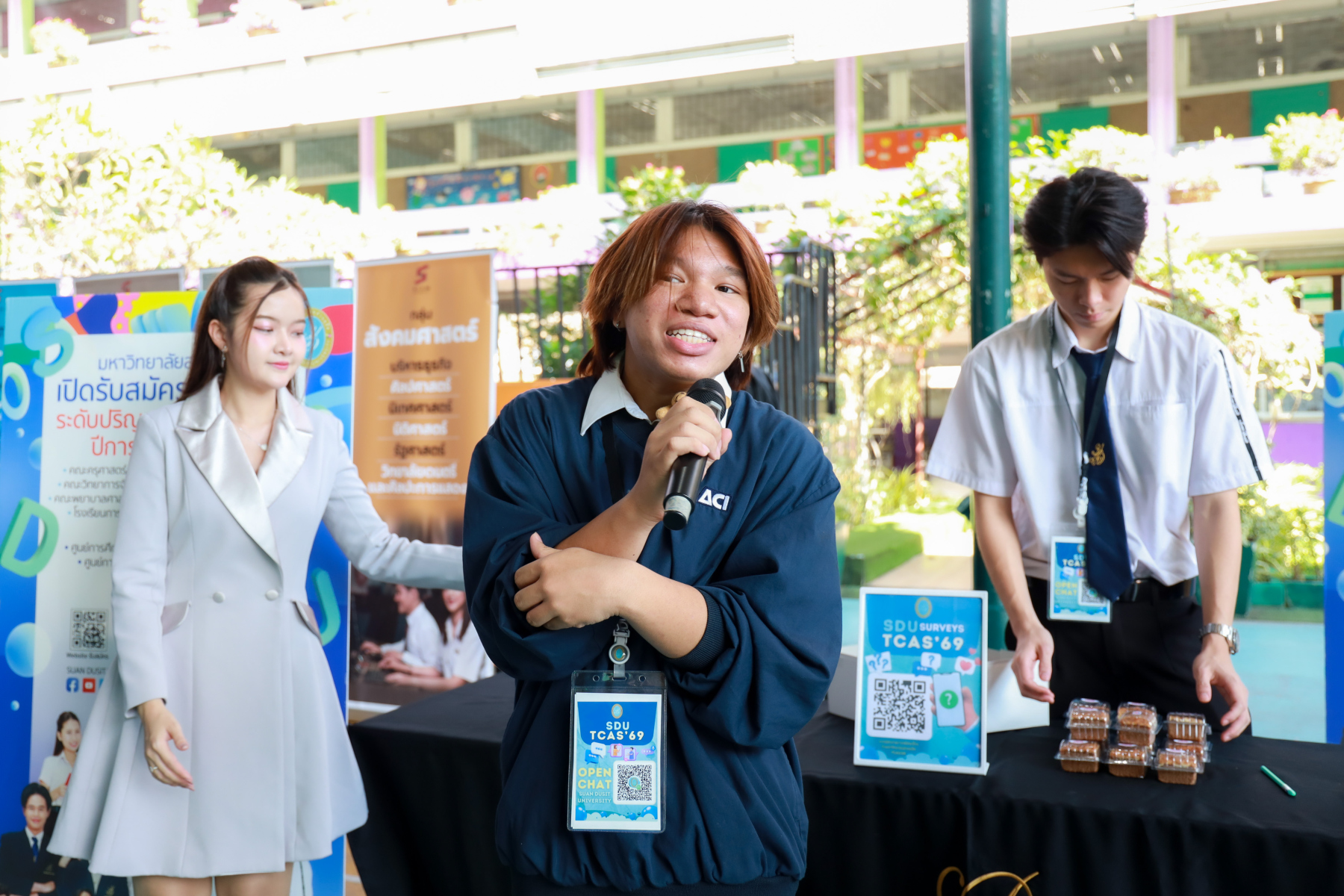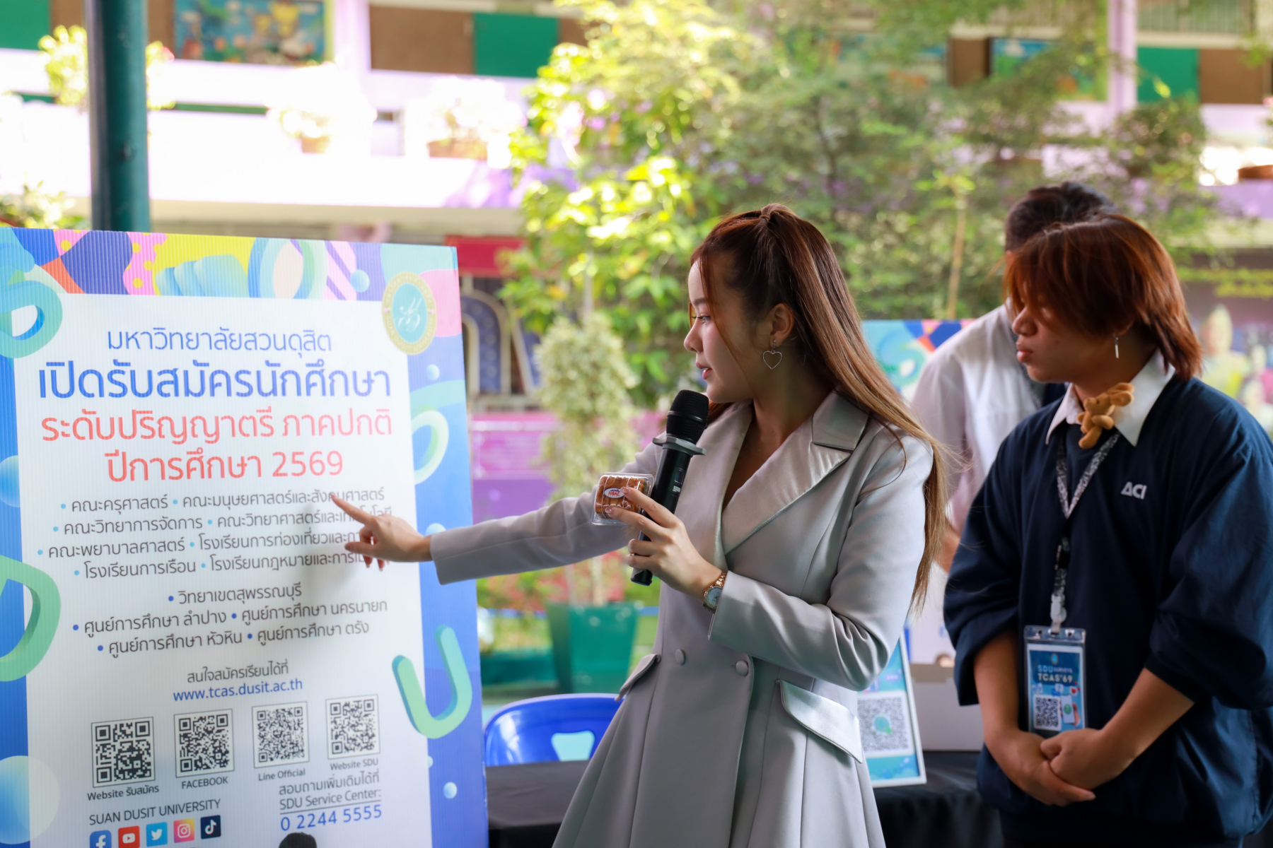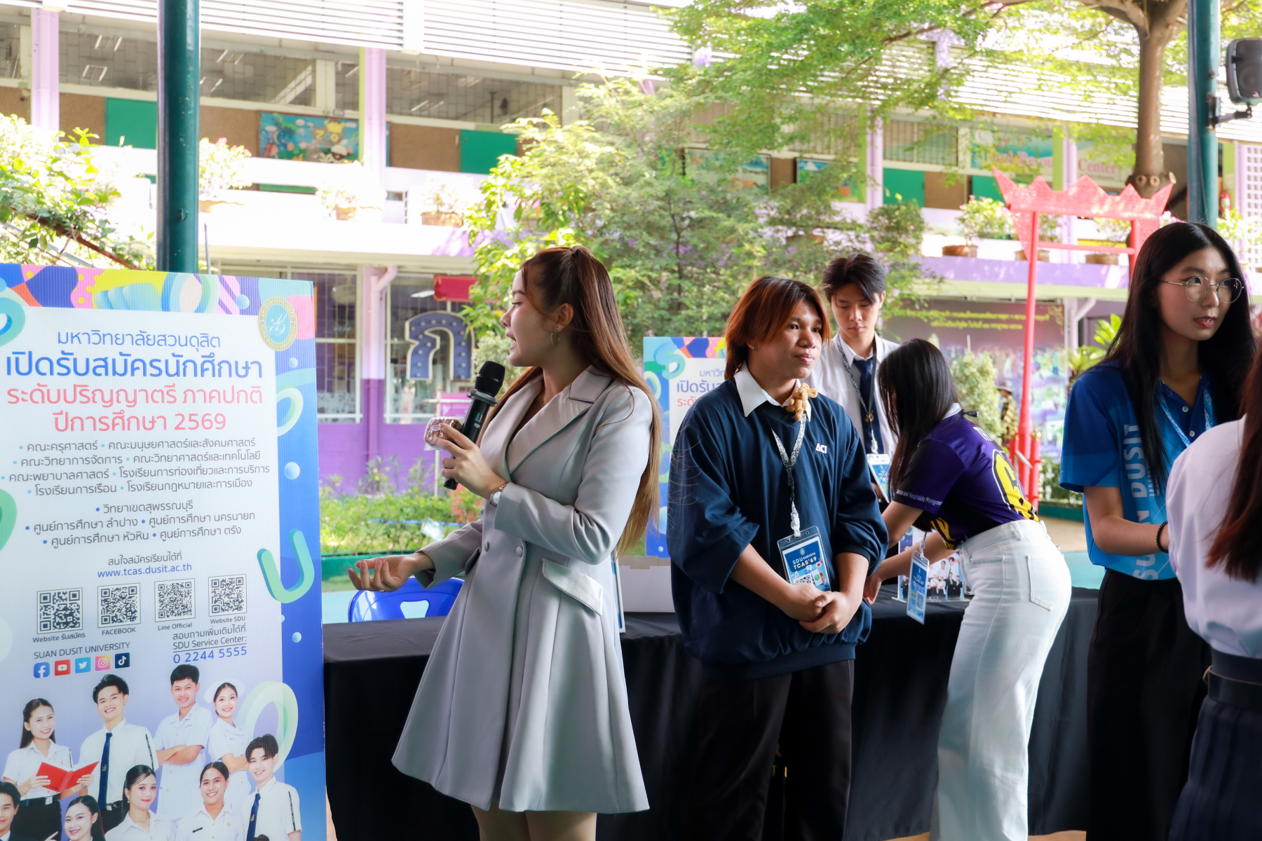 กองประชาสัมพันธ์ มหาวิทยาลัยสวนดุสิต ร่วมแนะแนวการศึกษาต่อมหาวิทยาลัยสวนดุสิตในงาน “มหกรรม DEK เล่น DEK เรียน” โดยมีกองประชาสัมพันธ์ พร้อมตัวแทนนักศึกษาจากโรงเรียนการท่องเที่ยวและการบริการ คณะมนุษยศาสตร์และสังคมศาสตร์ และคณะวิทยาการจัดการ ร่วมให้ข้อมูลการศึกษาต่อมหาวิทยาลัยสวนดุสิต ซึ่งภายในงานมีการจัดกิจกรรมรับของที่ระลึกเป็นขนม Toffee Cake จาก Home Bakery ในวันที่ 15 ธันวาคม 2568 ณ โรงเรียนวิชูทิศ