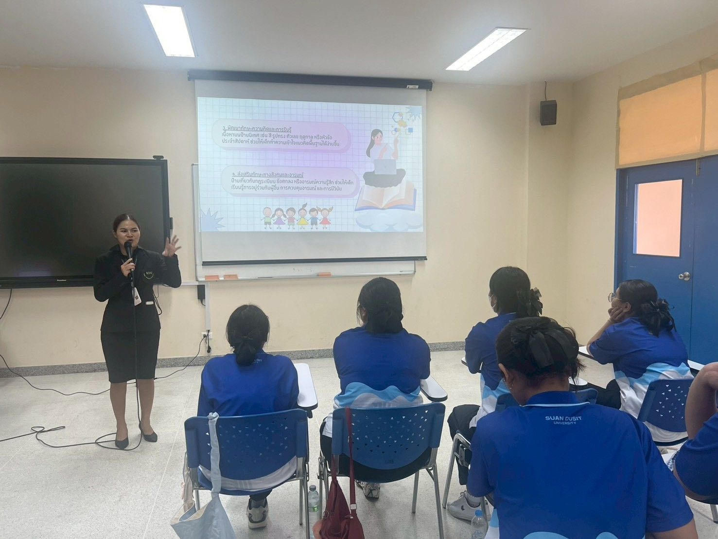 มหาวิทยาลัยสวนดุสิต ศูนย์การศึกษา นครนายก หลักสูตรศึกษาศาสตรบัณฑิต สาขาวิชาการศึกษาปฐมวัย จัดกิจกรรมความร่วมมือรายวิชาแลกเปลี่ยนเรียนรู้การจัดการเรียนการสอนร่วมกับโรงเรียนสาธิตละอออุทิศ นำโดยอาจารย์อัญชิษฐา ปิยะจิตติ อาจารย์ผู้สอนรายวิชา ศิลปะ สื่อสร้างสรรค์ และนิทรรศการสำหรับเด็กในยุคดิจิทัล พานักศึกษาชั้นปีที่ 2 ออกแบบกิจกรรมศิลปะสร้างสรรค์ที่เหมาะกับพัฒนาการเด็กปฐมวัยในช่วงวัยต่างๆ การจัดป้ายนิเทศในและนอกห้องเรียนปฐมวัย (เน้นการจัดป้ายนิเทศแบบ Interactive Board) โดยมีคุณครูวัลยา โฉมทนงค์ (หัวหน้าฝ่ายวิชาการ) โรงเรียนสาธิตละอออุทิศ ศูนย์การศึกษา นครนายก พาเยี่ยมชมชั้นเรียนปฐมวัย ในวันที่ 12 ธันวาคม 2568 เวลา 09.00 – 12.00 น. ณ โรงเรียนสาธิตละอออุทิศ ศูนย์การศึกษา นครนายก