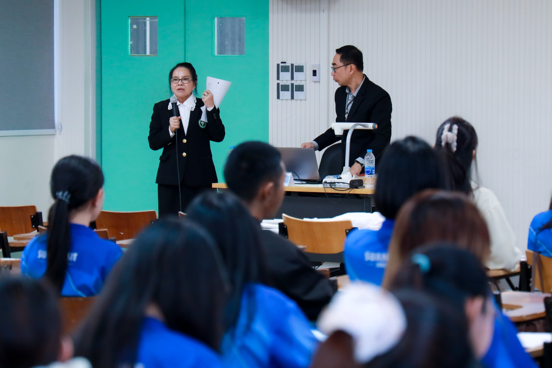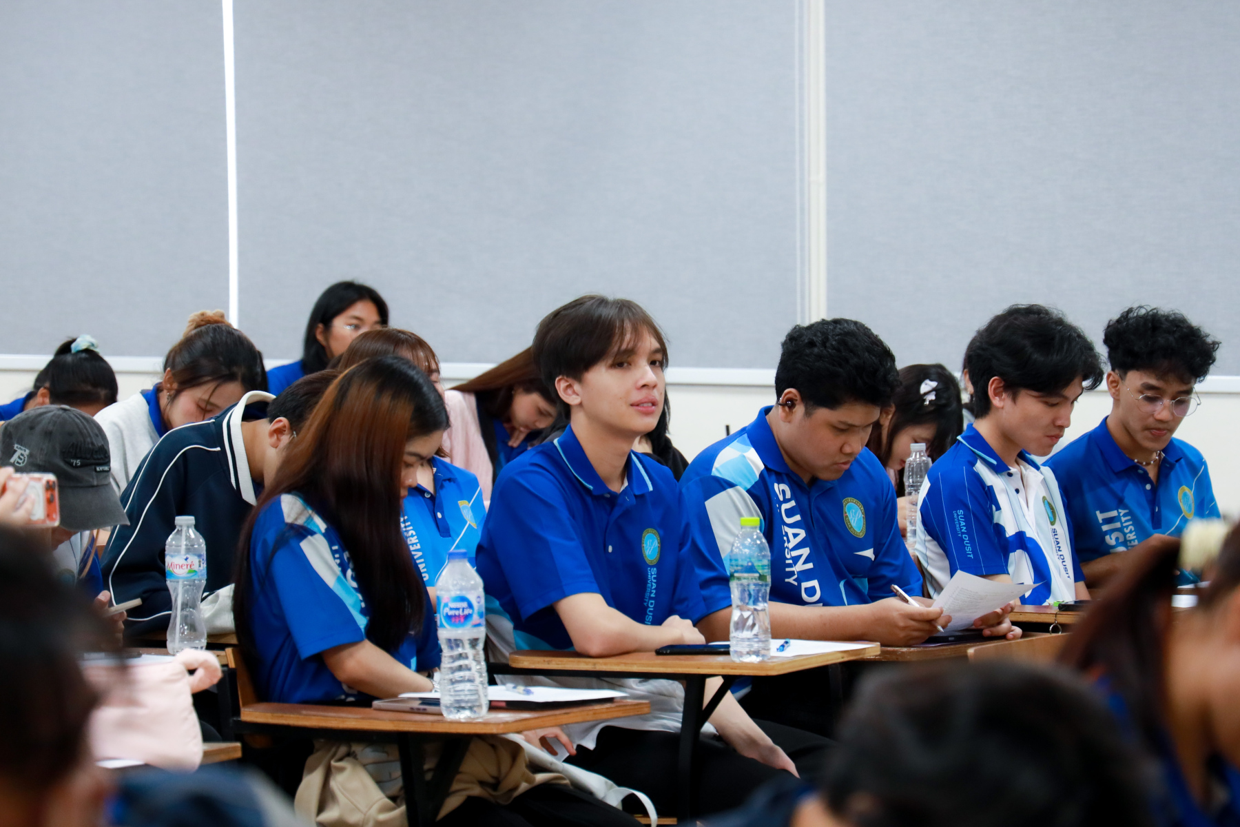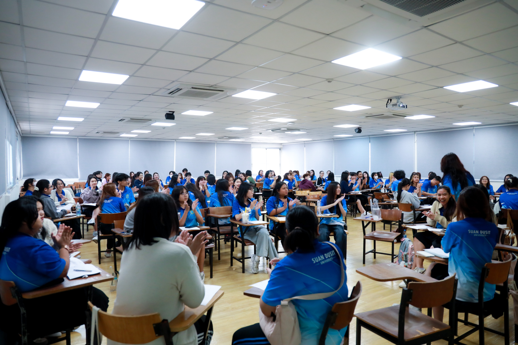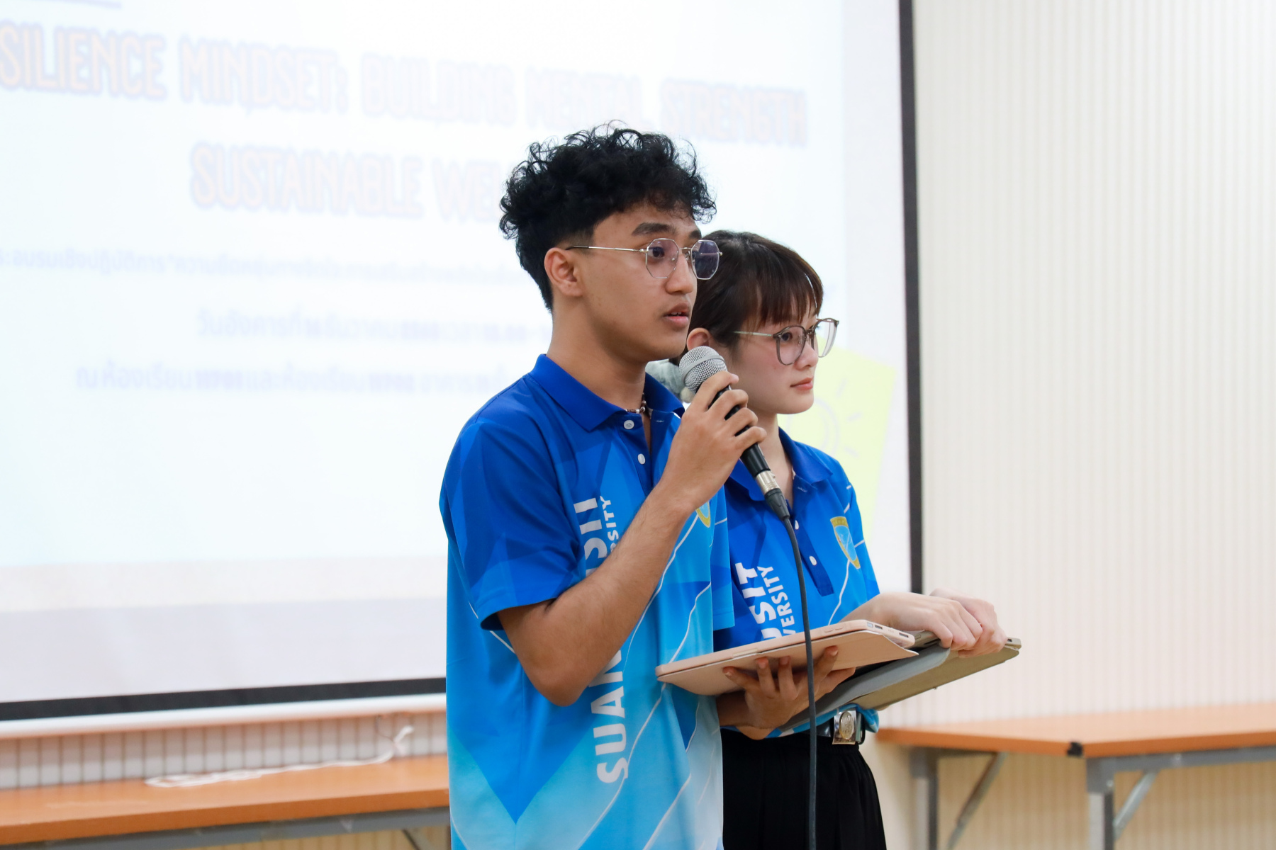รองศาสตราจารย์ ดร. ยุทธพงษ์ ลีลากิจไพศาล คณบดีคณะมนุษยศาสตร์และสังคมศาสตร์ เป็นผู้กล่าวเปิดงานอบรมเชิงปฏิบัติการ “ความยืดหยุ่นทางจิตใจ: การเสริมสร้างพลังใจเพื่อการปรับตัวให้มีความสุขในชีวิตและสังคมอย่างยั่งยืน” “Resilience Mindset: Building Mental Strength for Sustainable Well-Being” โดยได้รับเกียรติจาก ดร.ภัทรวรรธน์ สุขยิรัญ นักจิตวิทยาคลินิกชำนาญการพิเศษ โรงพยาบาลศรีธัญญา เป็นวิทยากรบรรยายแบบมีส่วนร่วม และ คุณศุกภนิตย์ พลไพรินทร์ พยาบาลจิตเวชวิชาชีพระดับเชี่ยวชาญ เป็นวิทยากรในกิจกรรมการพัฒนาทักษะ ในหัวข้อ “ความยืดหยุ่นทางจิตใจ: การเสริมสร้างพลังใจเพื่อการปรับตัวให้มีความสุขในชีวิตและสังคมอย่างยั่งยืน” เมื่อวันที่ 16 ธันวาคม 2568 ณ ห้องเรียน 11701 และ 11702 ชั้น 7 อาคาร 11 มหาวิทยาลัยสวนดุสิต