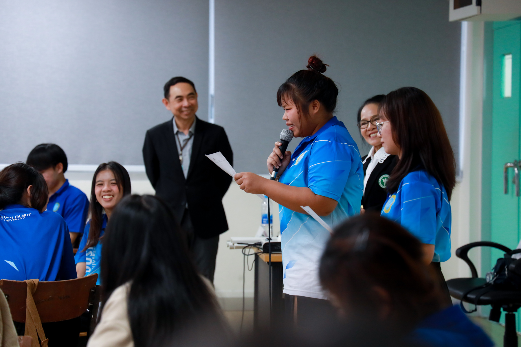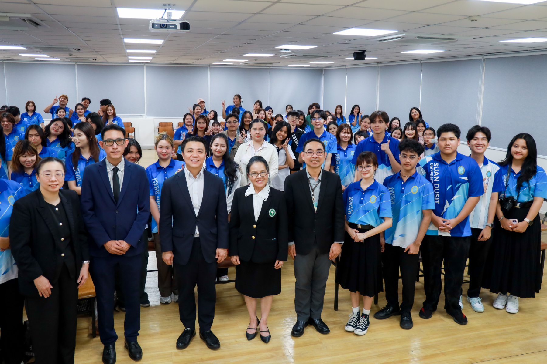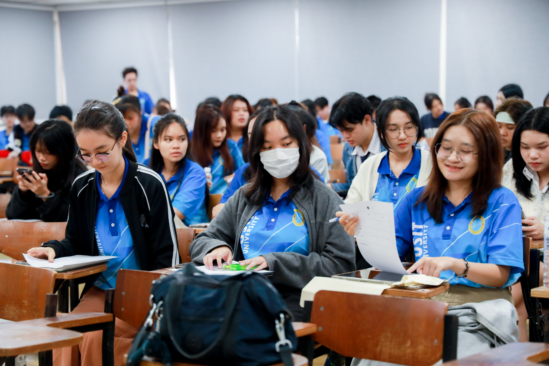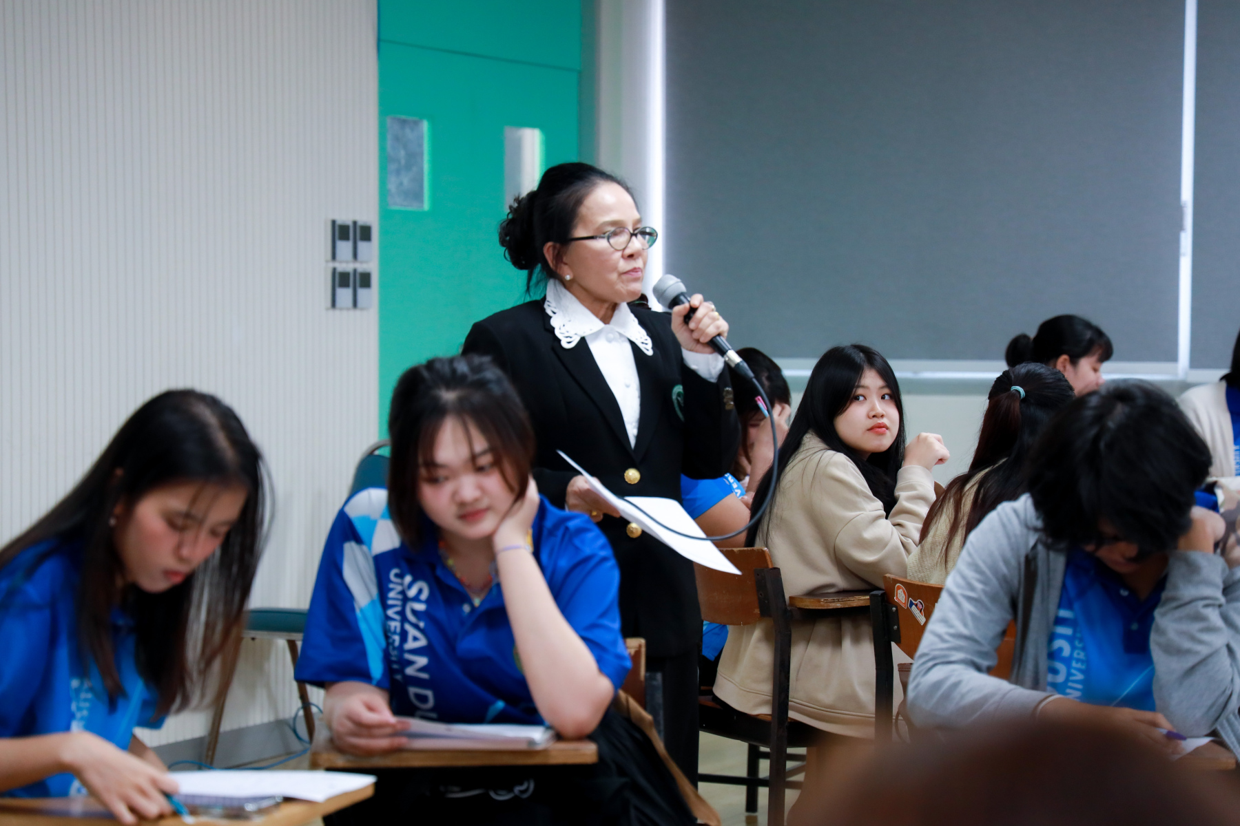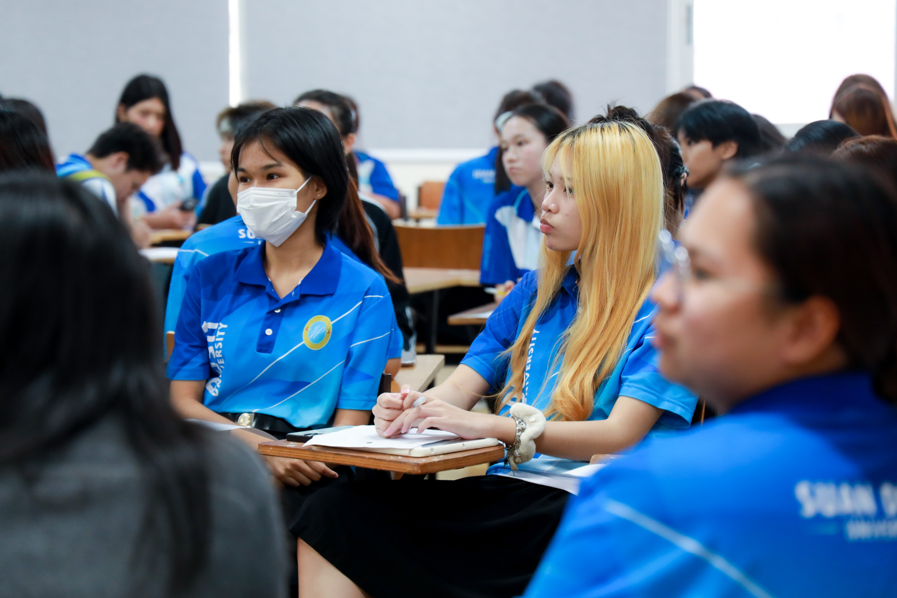 รองศาสตราจารย์ ดร. ยุทธพงษ์ ลีลากิจไพศาล คณบดีคณะมนุษยศาสตร์และสังคมศาสตร์ เป็นผู้กล่าวเปิดงานอบรมเชิงปฏิบัติการ “ความยืดหยุ่นทางจิตใจ: การเสริมสร้างพลังใจเพื่อการปรับตัวให้มีความสุขในชีวิตและสังคมอย่างยั่งยืน” “Resilience Mindset: Building Mental Strength for Sustainable Well-Being” โดยได้รับเกียรติจาก ดร.ภัทรวรรธน์ สุขยิรัญ นักจิตวิทยาคลินิกชำนาญการพิเศษ โรงพยาบาลศรีธัญญา เป็นวิทยากรบรรยายแบบมีส่วนร่วม และ คุณศุกภนิตย์ พลไพรินทร์ พยาบาลจิตเวชวิชาชีพระดับเชี่ยวชาญ เป็นวิทยากรในกิจกรรมการพัฒนาทักษะ ในหัวข้อ “ความยืดหยุ่นทางจิตใจ: การเสริมสร้างพลังใจเพื่อการปรับตัวให้มีความสุขในชีวิตและสังคมอย่างยั่งยืน” เมื่อวันที่ 16 ธันวาคม 2568 ณ ห้องเรียน 11701 และ 11702 ชั้น 7 อาคาร 11 มหาวิทยาลัยสวนดุสิต