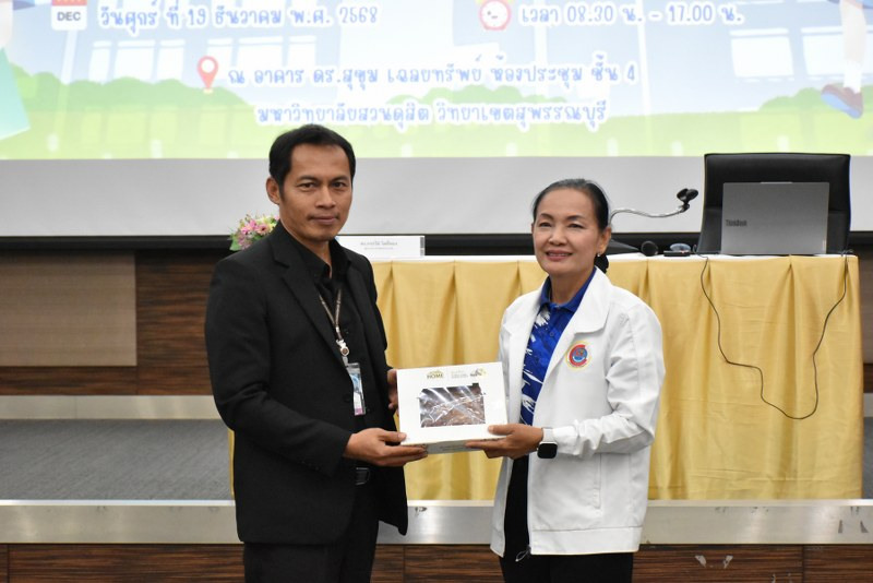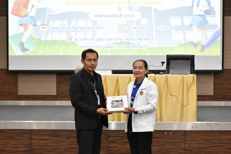 หลักสูตรศึกษาศาสตรบัณฑิต สาขาวิชาการประถมศึกษา มหาวิทยาลัยสวนดุสิต วิทยาเขตสุพรรณบุรี จัดกิจกรรมสัมมนาระหว่างการปฏิบัติการสอนในสถานศึกษา 2 ครั้งที่ 2 ประจำปีการศึกษา 2568 โดยได้รับเกียรติจาก นางกัณณ์อลิน สุอังคะวาทิน ผู้อำนวยการสำนักงานวิทยาเขตสุพรรณบุรี เป็นประธานกล่าวเปิดกิจกรรม โดยมี อาจารย์พรพิมล นามวงศ์ หัวหน้าฝ่ายฝึกประสบการณ์ เป็นผู้กล่าวรายงานวัตถุประสงค์การจัดกิจกรรม และได้รับเกียรติจาก ดร.กรรวี โพธิ์ทอง ผู้อำนวยการโรงเรียนบ้านบางกุ้ง เป็นวิทยากรบรรยายพิเศษในหัวข้อเรื่อง “มาตรฐานการปฏิบัติตนของครูประถมศึกษาจรรยาบรรณวิชาชีพครู ครูเพื่อศิษย์” ซึ่งกิจกรรมจัดขึ้นในวันศุกร์ที่ 19 ธันวาคม 2568 เวลา 08.30 – 17.00 น ณ ห้องประชุมชั้น 4 อาคาร ดร.สุขุม เฉลยทรัพย์ มหาวิทยาลัยสวนดุสิต วิทยาเขตสุพรรณบุรี