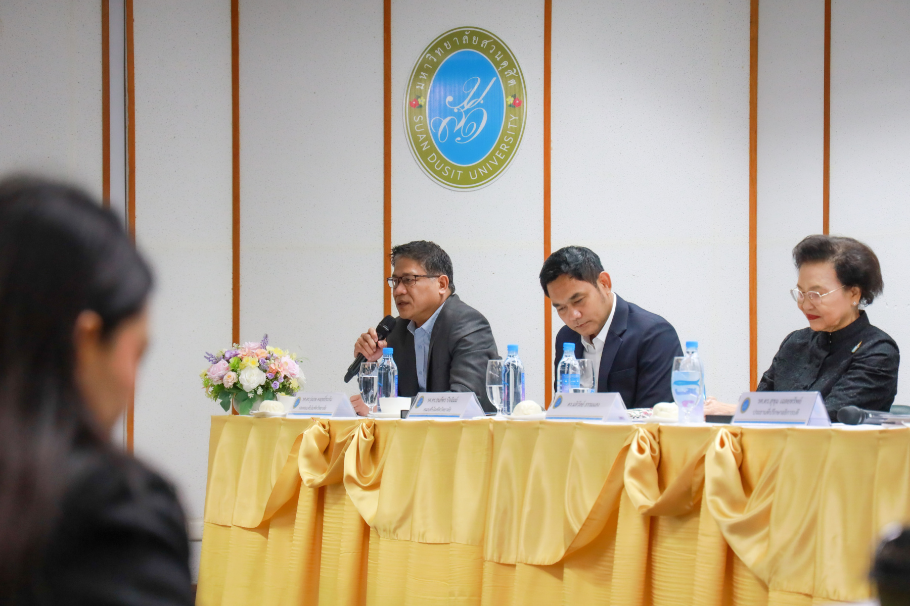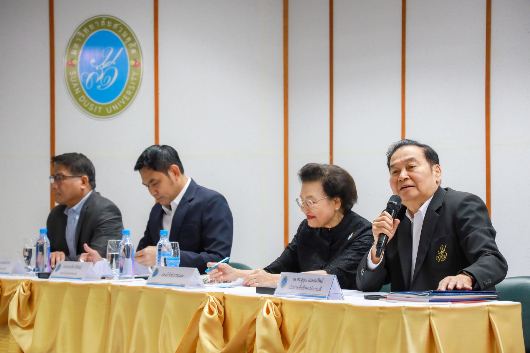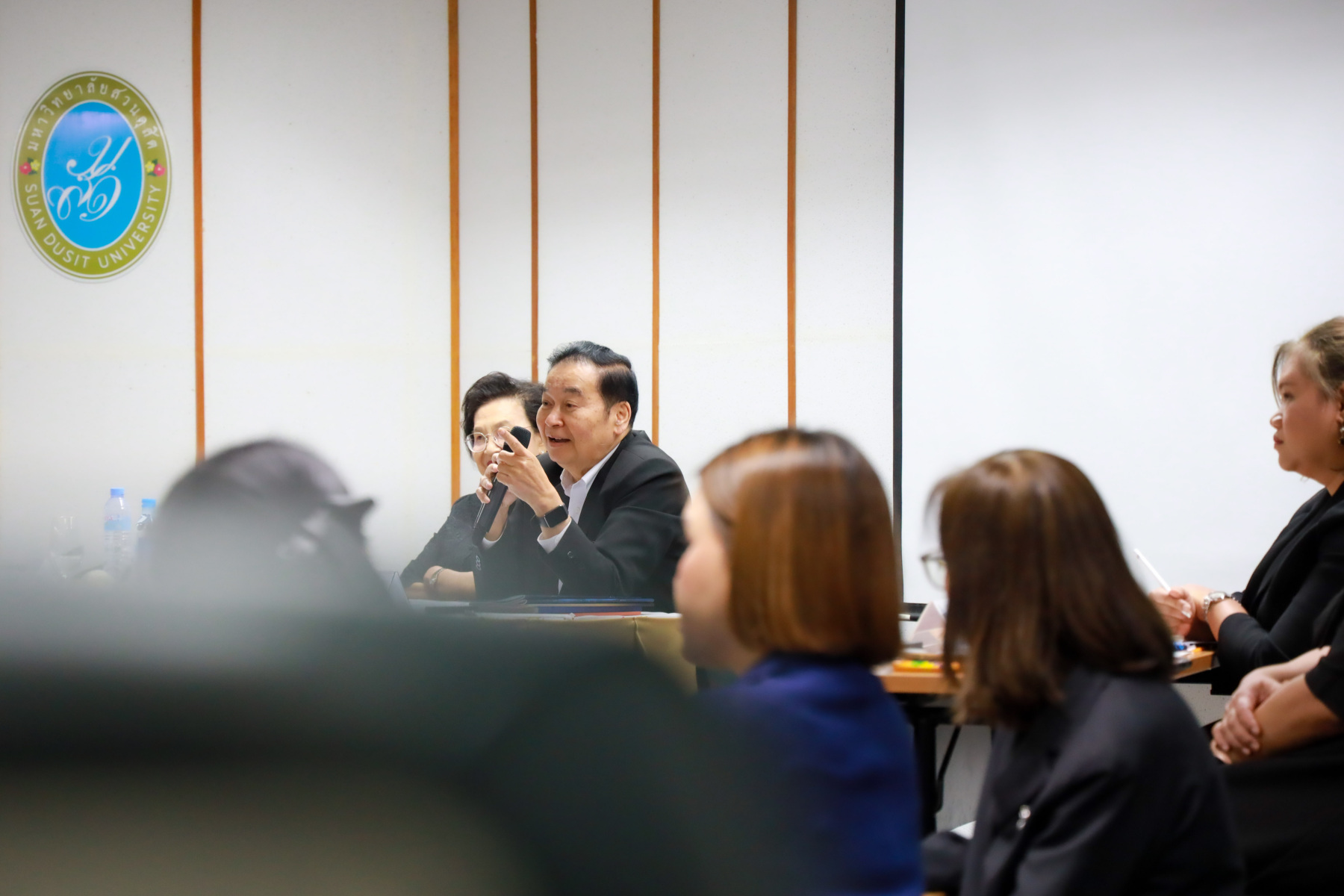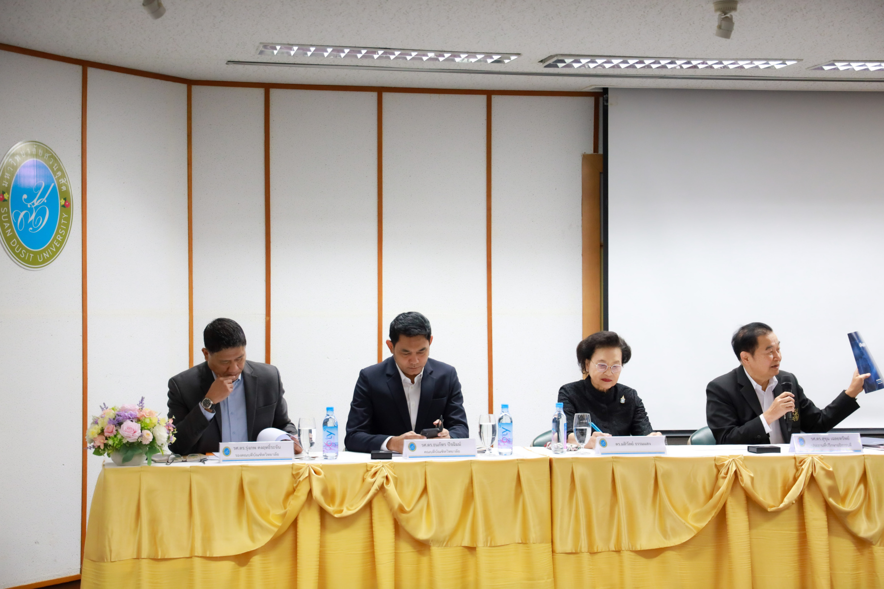 บัณฑิตวิทยาลัย มหาวิทยาลัยสวนดุสิต จัดปฐมนิเทศนักศึกษาระดับปริญญาเอก รุ่นที่ 5 หลักสูตรศึกษาศาสตรดุษฎีบัณฑิต สาขาวิชาภาวะผู้นำทางการศึกษา ภาคการศึกษาที่ 2 ปีการศึกษา 2568 โดยได้รับเกียรติจาก รองศาสตราจารย์ ดร.สุขุม เฉลยทรัพย์ ประธานที่ปรึกษาอธิการบดี มหาวิทยาลัยสวนดุสิต ประธานหลักสูตรศึกษาศาสตรดุษฎีบัณฑิต สาขาวิชาภาวะผู้นำทางการศึกษา อภิปรายในประเด็น “Storytelling เส้นทางความสำเร็จ ภาวะผู้นำทางการศึกษา” รองศาสตราจารย์ ดร.ธนภัทร ปัจฉิมม์ คณบดีบัณฑิตวิทยาลัย อภิปรายในประเด็น “ความสำเร็จ Ed.D. (Doctor of Education) Educational Leadership” และ รองศาสตราจารย์ ดร.รุ่งภพ คงฤทธิ์ระจัน รองคณบดีบัณฑิตวิทยาลัย อภิปรายในประเด็น “มืออาชีพ Professional Leadership” จากนั้นเปิดโอกาสให้นักศึกษาระดับปริญญาเอกพบอาจารย์พี่เลี้ยง และอาจารย์ที่ปรึกษา เมื่อวันที่ 20 ธันวาคม 2568 ณ ห้องประชุม 2 ชั้น 4 อาคารเลิมพระเกียรติ 50 พรรษา มหาวชิราลงกรณ บัณฑิตวิทยาลัย มหาวิทยาลัยสวนดุสิต