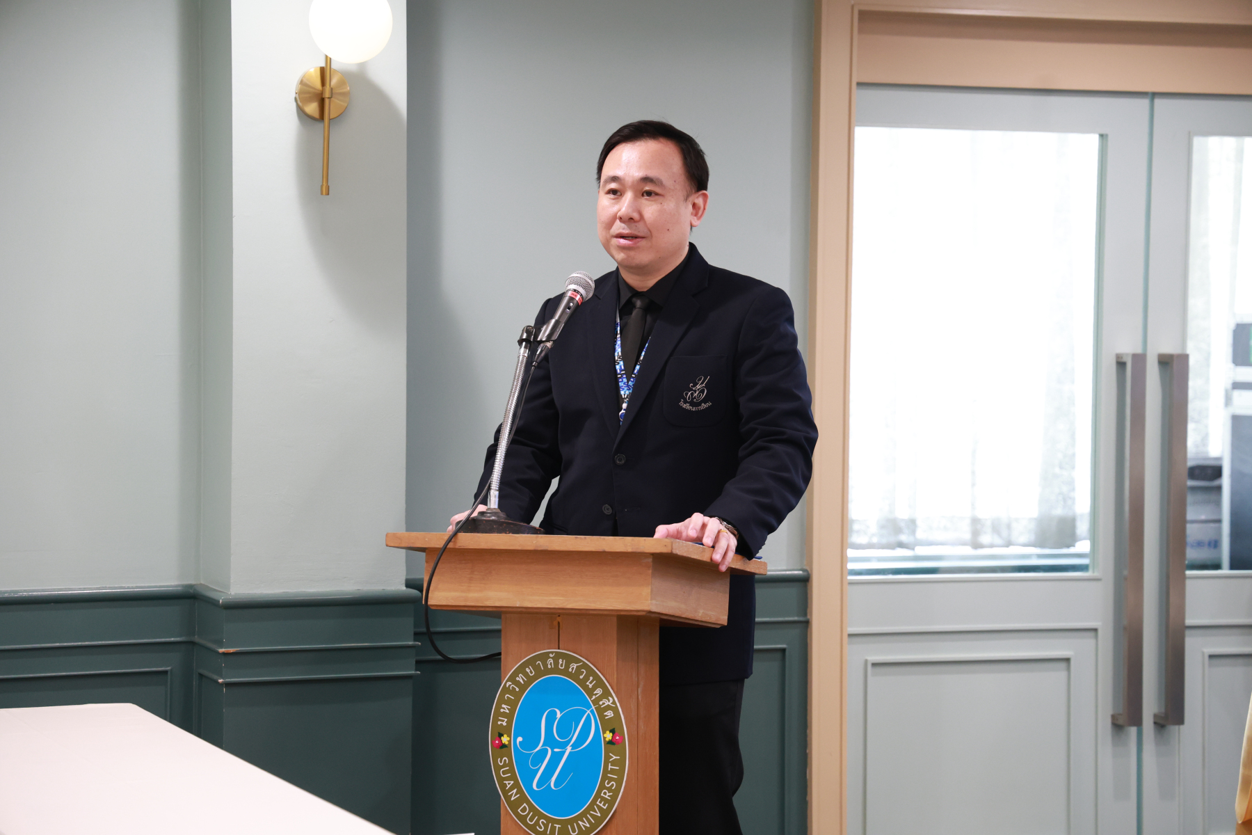 ผศ.ว่าที่ร้อยตรี ดร.ธนพัฒน์ แสงรุ่งเรือง คณบดีโรงเรียนการเรือน มหาวิทยาลัยสวนดุสิต กล่าวต้อนรับผู้เข้าร่วมโครงการ และเปิดการจัดการเรียนการสอนหลักสูตรการออกแบบอาหารสำหรับเด็ก (Eating Design for Kids) รุ่นที่ 2 ภายใต้โครงการผลิตบัณฑิตพันธุ์ใหม่และกำลังคนที่มีสมรรถนะ เพื่อตอบโจทย์ภาคการผลิตตามนโยบายการปฏิรูปการอุดมศึกษาไทย ปี พ.ศ.2568 หลักสูตรประเภทประกาศนียบัตร ภายในงานประกอบด้วยการอบรมเชิงปฏิบัติการ อาหารกลางวันกับการส่งเสริมพัฒนาการเด็ก โดยมี อาจารย์วรรณรัตน์ เปี๊ยนเปี่ยมสิน นักพัฒนาการเด็กเล็ก ผู้ช่วยผู้อำนวยการศูนย์เด็กเล็ก วิทยาเขตสิรินธรราชวิทยาลัย ในพระราชูปถัมภ์ จังหวัดนครปฐม และผศ.ดร.ภริมา วินิธาสถิตย์กุล รักษาการในตำแหน่งหัวหน้าศูนย์การศึกษาพิเศษ เป็นวิทยากรหัวข้อ อาหารกับพัฒนาการเด็กวัยเรียน และ ดร.พัสสนันท์ แย้มฉ่ำไพร ผู้จัดการโครงการอาหารกลางวัน 1 (ครัวสวนดุสิต) และคุณนงลักษณ์ บุญทองสุข หัวหน้าแผนกผลิตอาหารโครงการอาหารกลางวัน 1 (ครัวสวนดุสิต) เป็นวิทยากรหัวข้อ การจัดบริการอาหารกลางวันสำหรับนักเรียนโรงเรียนสาธิตละอออุทิศ ณ ห้องประชุมกาหลา โรงแรมสวนดุสิต เพลส เมื่อวันที่ 20 ธันวาคม 2568