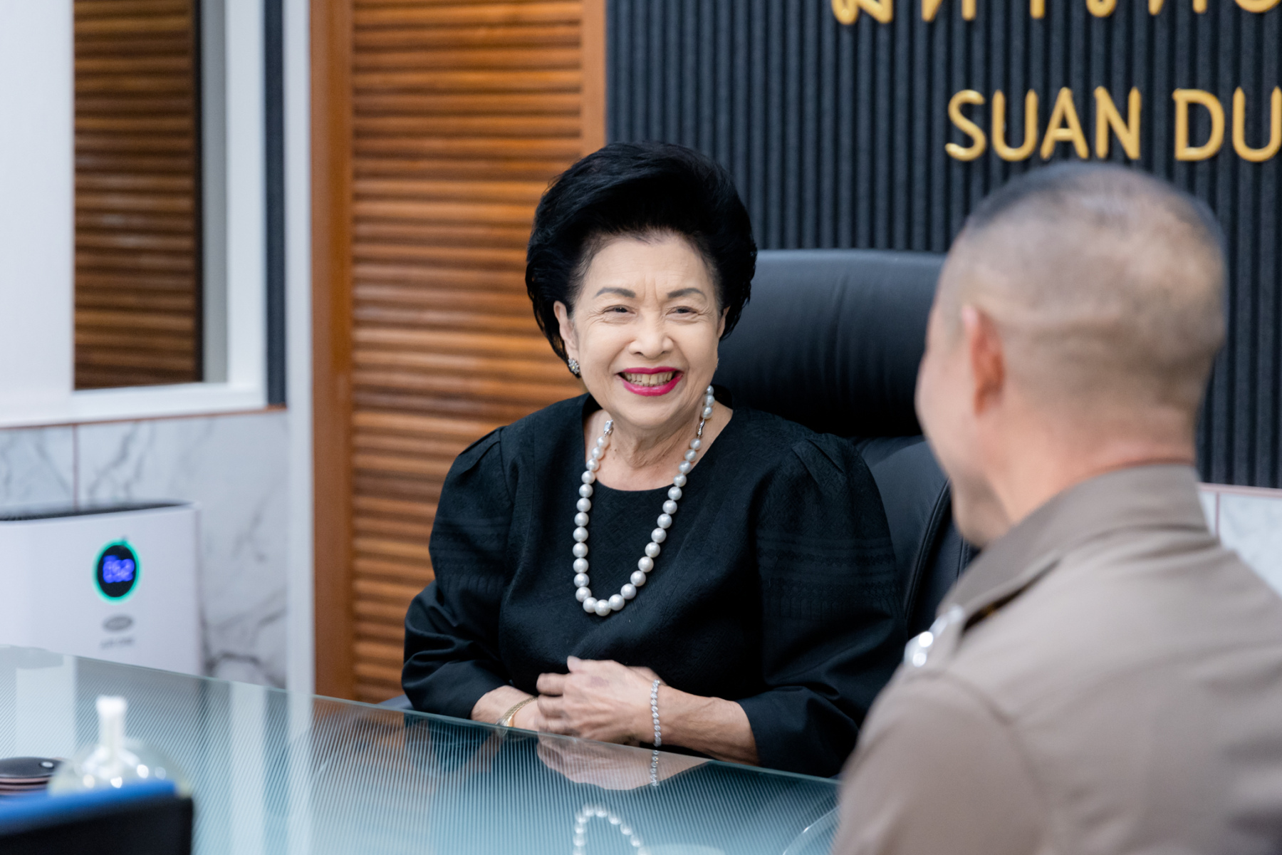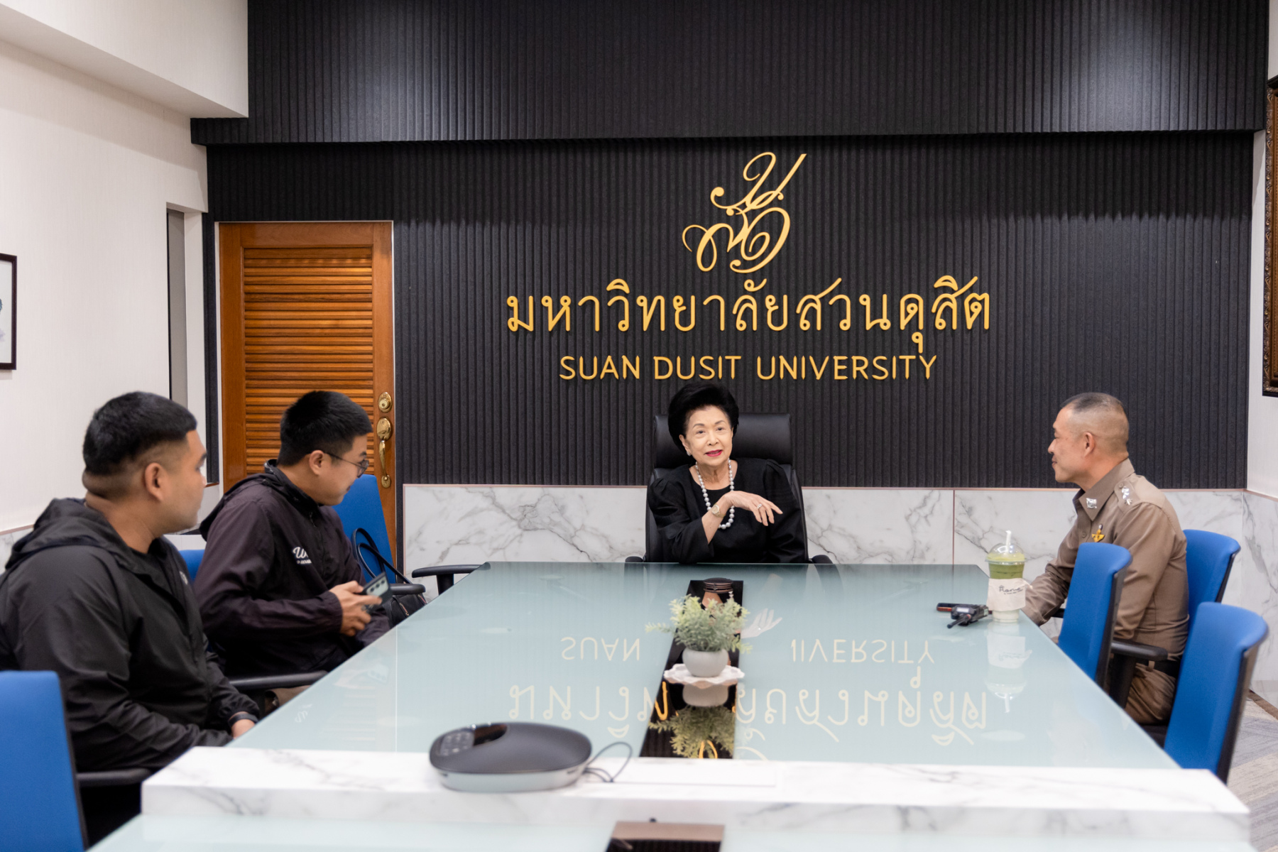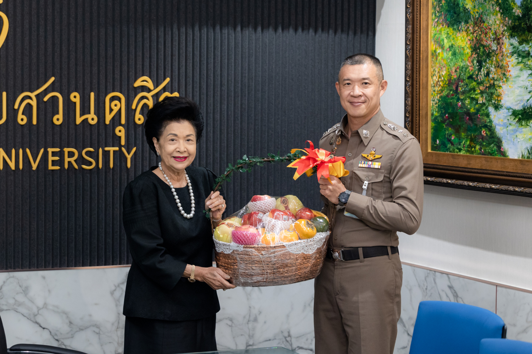 รองศาสตราจารย์พัชรี สวนแก้ว รองอธิการบดีฝ่ายกิจการนักศึกษา ให้การต้อนรับและร่วมแสดงความยินดีกับ พ.ต.อ.คงศักดิ์ ศรีโหร ผกก.สน.สามเสน (สามเสน 1) เนื่องในโอกาสเข้ารับตำแหน่ง พร้อมทั้งพูดคุยแลกเปลี่ยนสร้างความสัมพันธ์อันดีระหว่าง มหาวิทยาลัยสวนดุสิต กับ สน.สามเสน ในวันที่ ๑๙ ธันวาคม ๒๕๖๘ ณ Café by Home