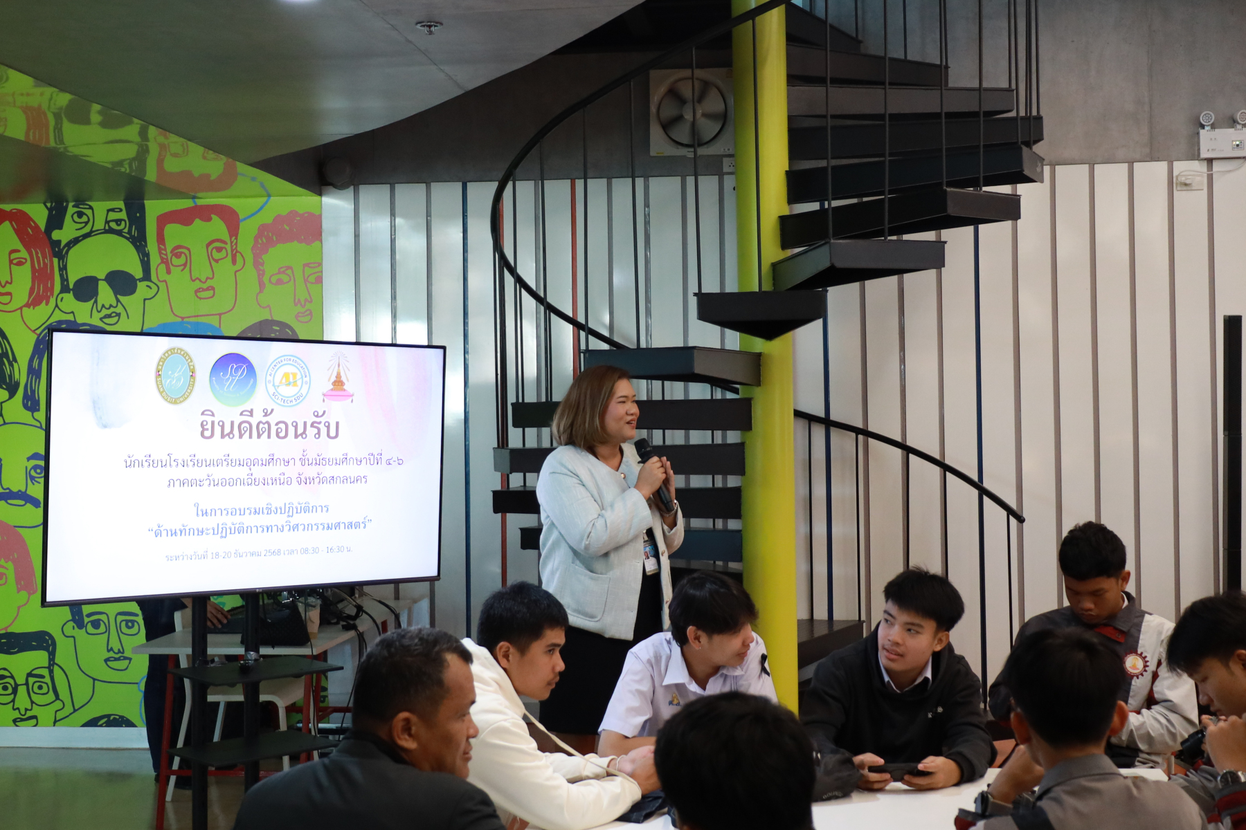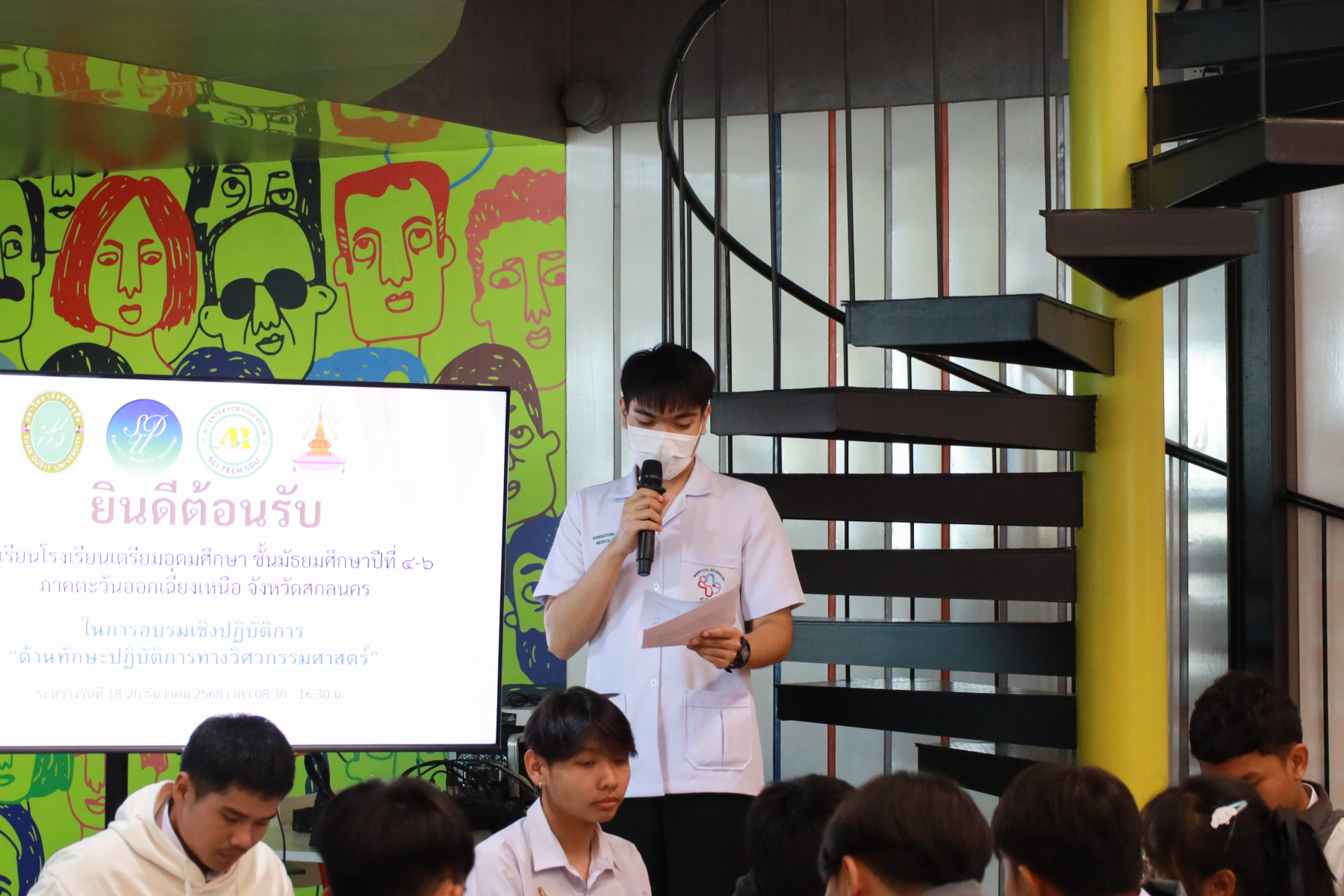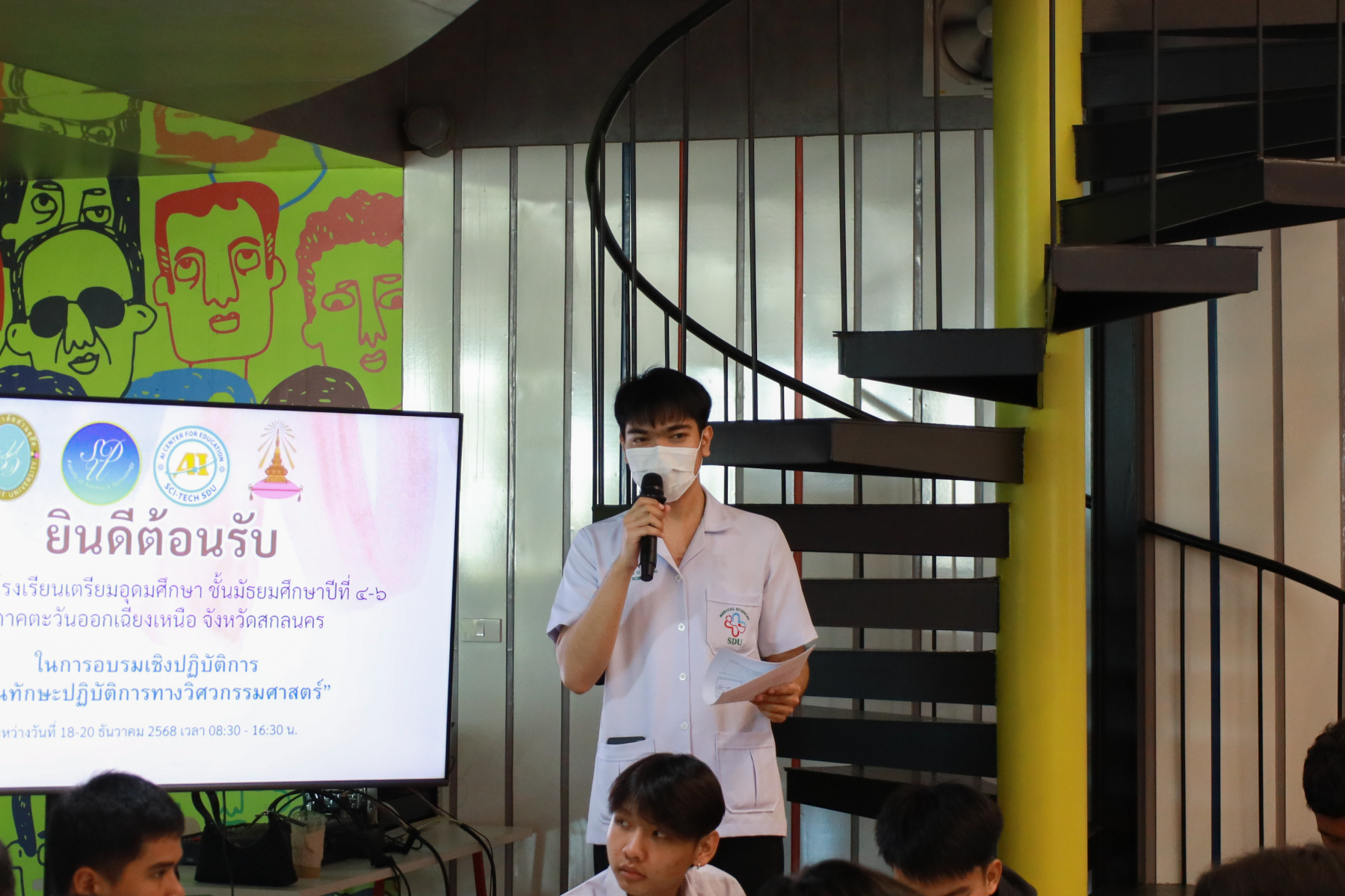 ผศ.ดร.ฐิตินาถ สุคนเขตร์ คณบดีคณะวิทยาศาสตร์และเทคโนโลยี มหาวิทยาลัยสวนดุสิต กล่าวเปิดการอบรมเชิงปฏิบัติการด้านวิทยาศาสตร์ การแพทย์ อุตสาหกรรมชีวภาพ และปัญญาประดิษฐ์ สำหรับนักเรียนระดับชั้นมัธยมศึกษาปีที่ 4-6 โรงเรียนเตรียมอุดมศึกษา ภาคตะวันออกเฉียงเหนือ จ.สกลนคร ซึ่งผู้เข้าอบรมได้เข้าเยี่ยมชม และศึกษาเครื่องมือปฏิบัติการวิทยาศาสตร์ชั้นสูง ของศูนย์เครื่องมือฯ และศึกษาเครื่องมือปฏิบัติการ ทางการพยาบาล คณะพยาบาลศาสตร์ ภายในงานประกอบด้วยการบรรยายอบรมเชิงปฏิบัติการอุตสาหกรรมชีวภาพ Makeup Setting Spray และ Wolffia hydrogel เทคนิคการทดสอบความไวของเชื้อต่อยาด้วยวิธี Disk agar diffusion method หรือ disk method และการย้อมสีแบบแกรมของแบคทีเรีย และฟังบรรยายทบทวน หัวข้อ BASIC CODING BY PLATFORM CiRA CORE  FOR AI MODEL (ClASSIFICATION) พร้อมรับชมตัวอย่างระบบการผลิตอัตโนมัติในอุตสาหกรรม การประยุกต์ใช้งานในด้านเกษตร การแพทย์ และอุตสาหกรรมทั้งในและต่างประเทศ และการอบรมเชิงปฏิบัติการ การทำโครงงานด้านวิทยาศาสตร์ การแพทย์ อุตสาหกรรมชีวภาพ และปัญญาประดิษฐ์ ระหว่างวันที่ 18 – 19 ธันวาคม 2568 ณ ศูนย์วิทยาศาสตร์ มหาวิทยาลัยสวนดุสิต ถ.สิรินธร