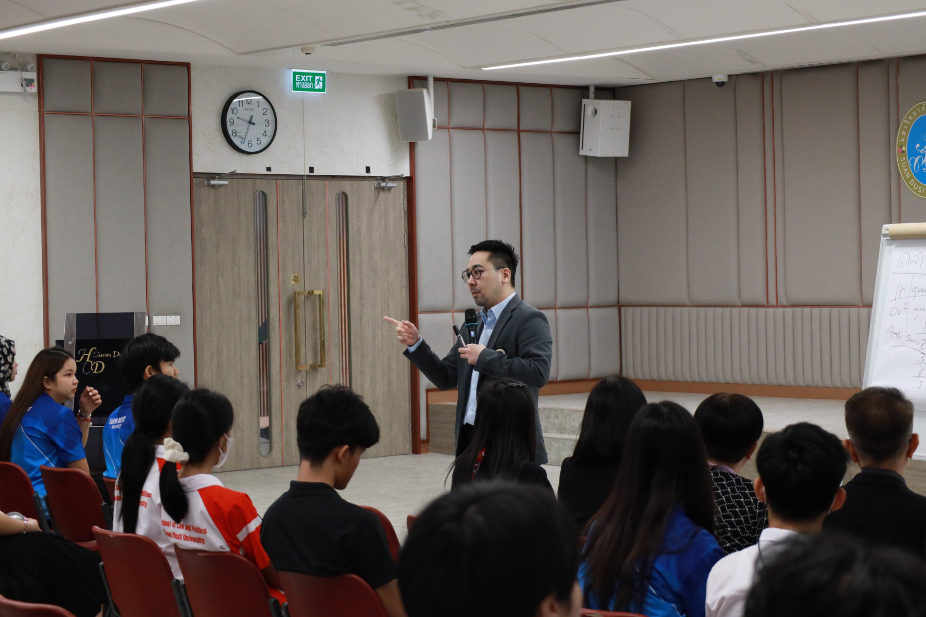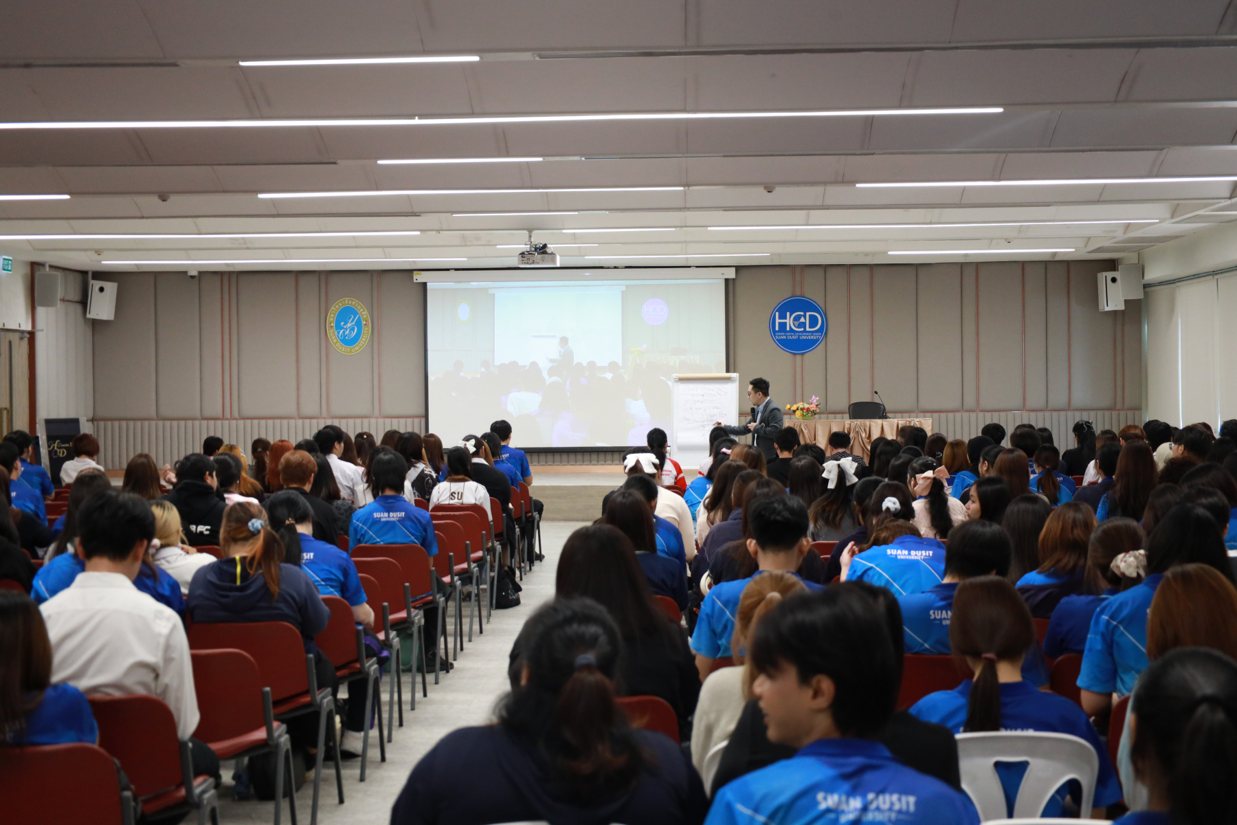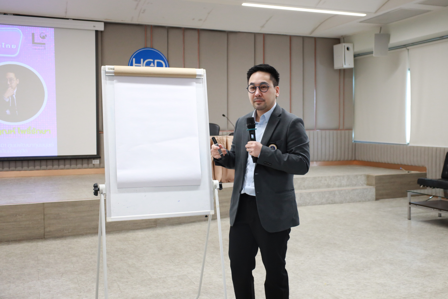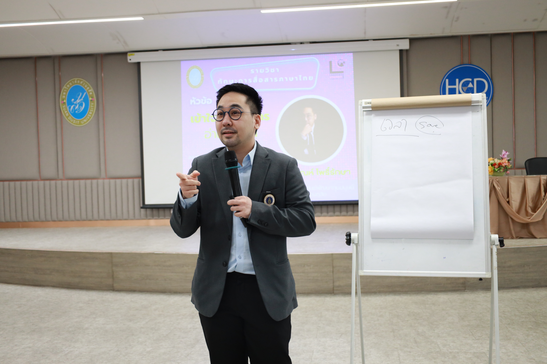 หลักสูตรศิลปศาสตรบัณฑิต สาขาวิชาภาษาและการสื่อสาร คณะมนุษยศาสตร์และสังคมศาสตร์ จัดโครงการ “พลังภาษาไทย” การพัฒนานักศึกษาเพื่อส่งเสริมทักษะการสื่อสารภาษาไทย เป็นส่วนหนึ่งของกิจกรรมการเรียนการสอนรายวิชาทักษะการสื่อสารภาษาไทย วิทยากรโดย ดร.ตฤณห์ โพธิ์รักษา บรรยายในหัวข้อ “เข้าใจการสื่อสาร อ่านคนเป็น” ณ ห้องประชุม 301 อาคาร ดร.ศิโรจน์ ผลพันธิน วันจันทร์ที่ 22 ธันวาคม 2568